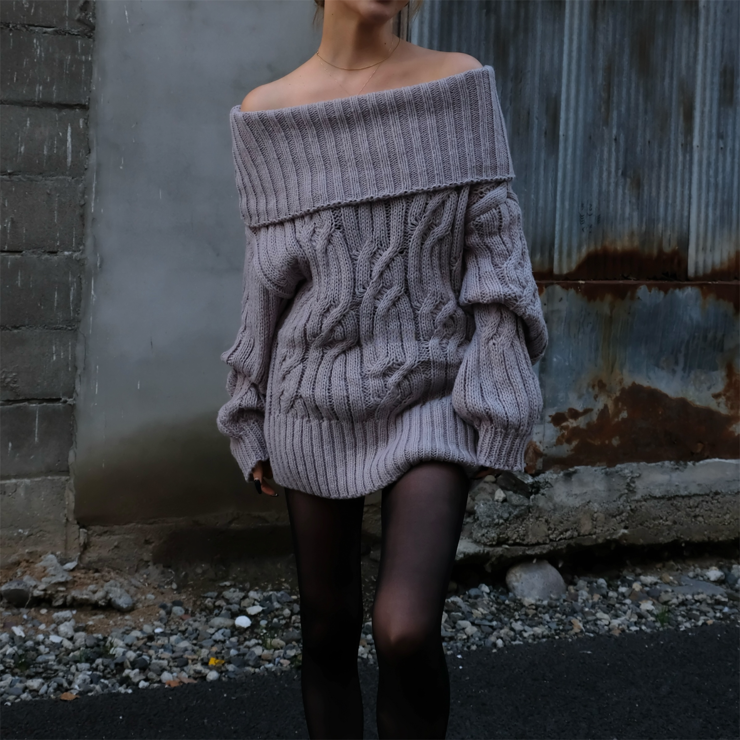 OFF SHOULDER CABLE KNIT