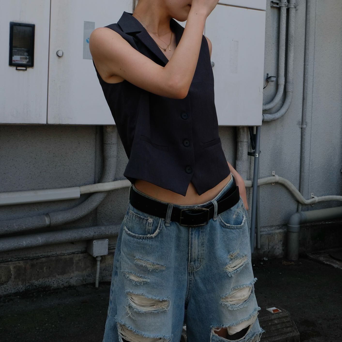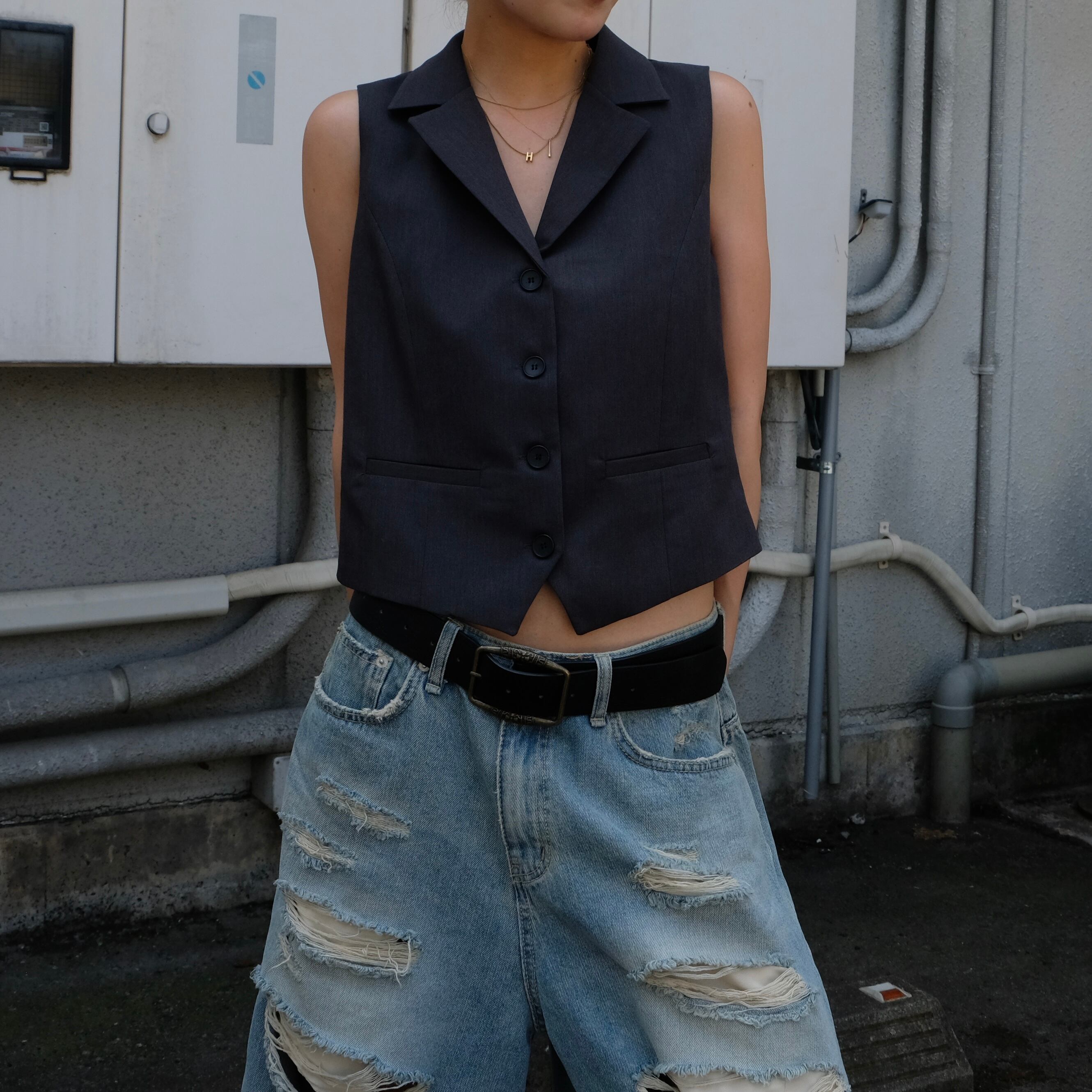マニッシュなムードを軽やかに纏える、テーラードデザインのショートベスト。