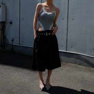 リブ素材の程よいフィット感にレースの縁取りが生み出す立体感が加わり、スタイリングに奥行きをプラス。