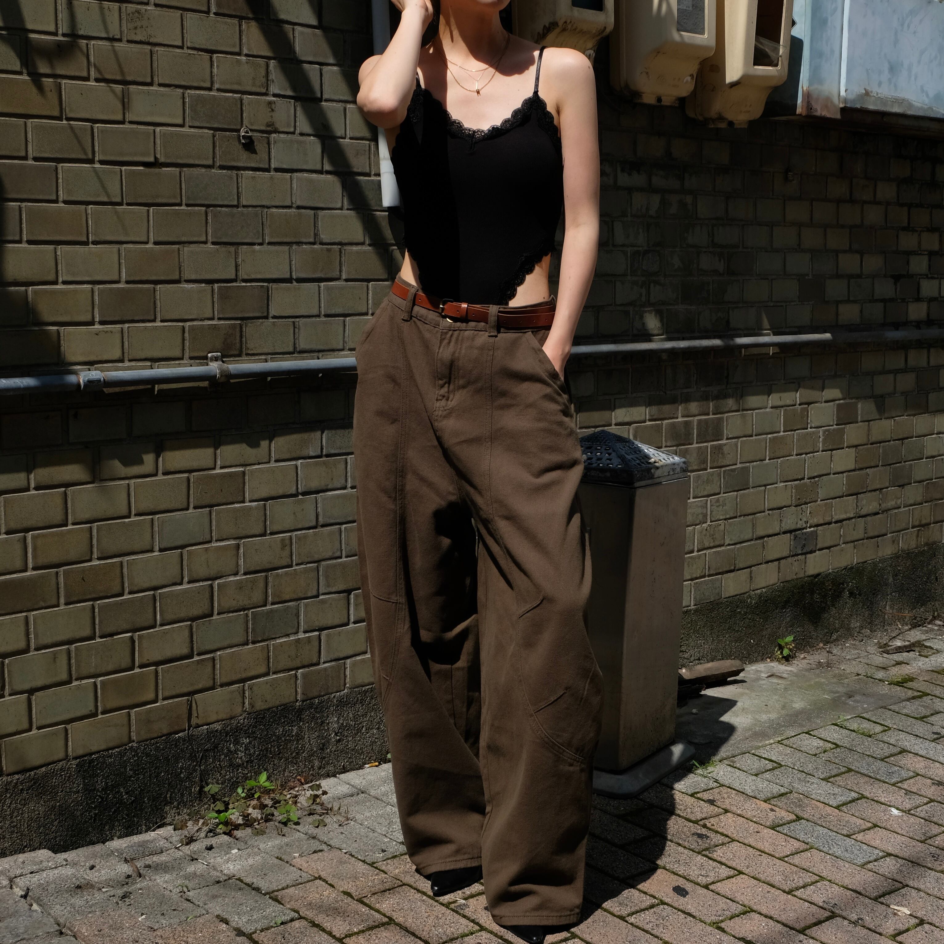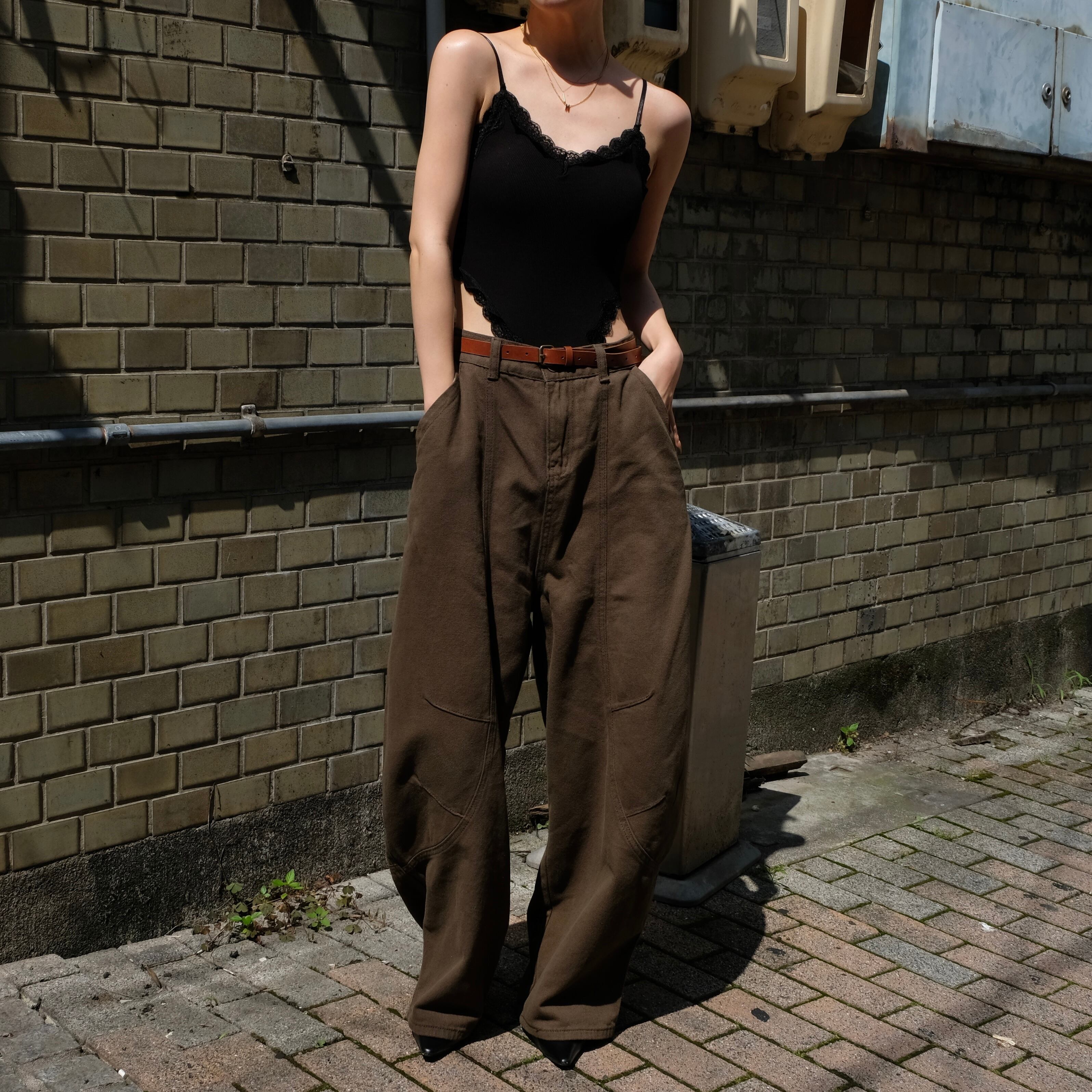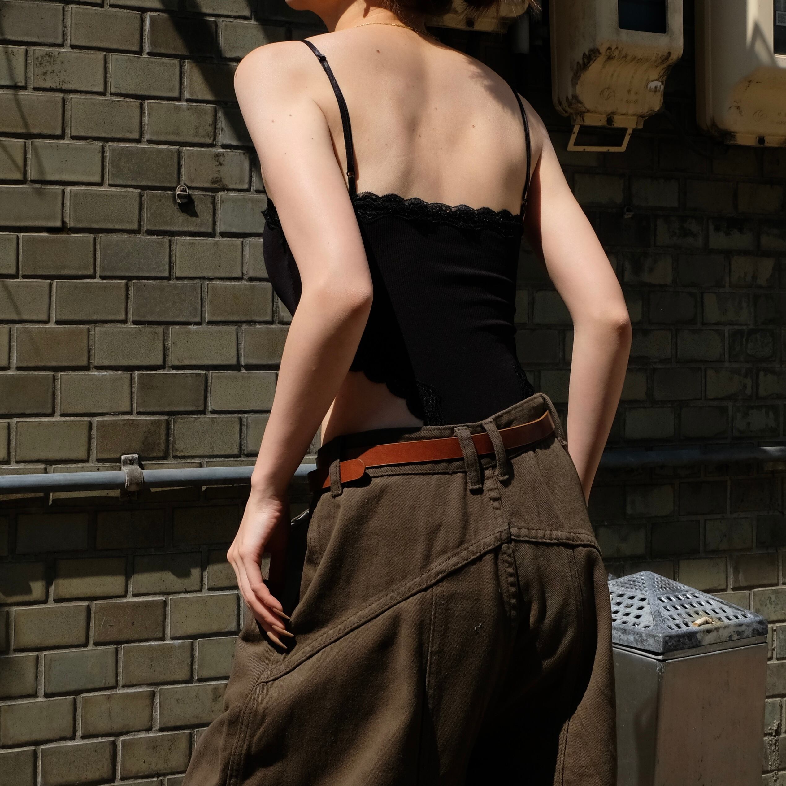 リブ素材の程よいフィット感にレースの縁取りが生み出す立体感が加わり、スタイリングに奥行きをプラス。