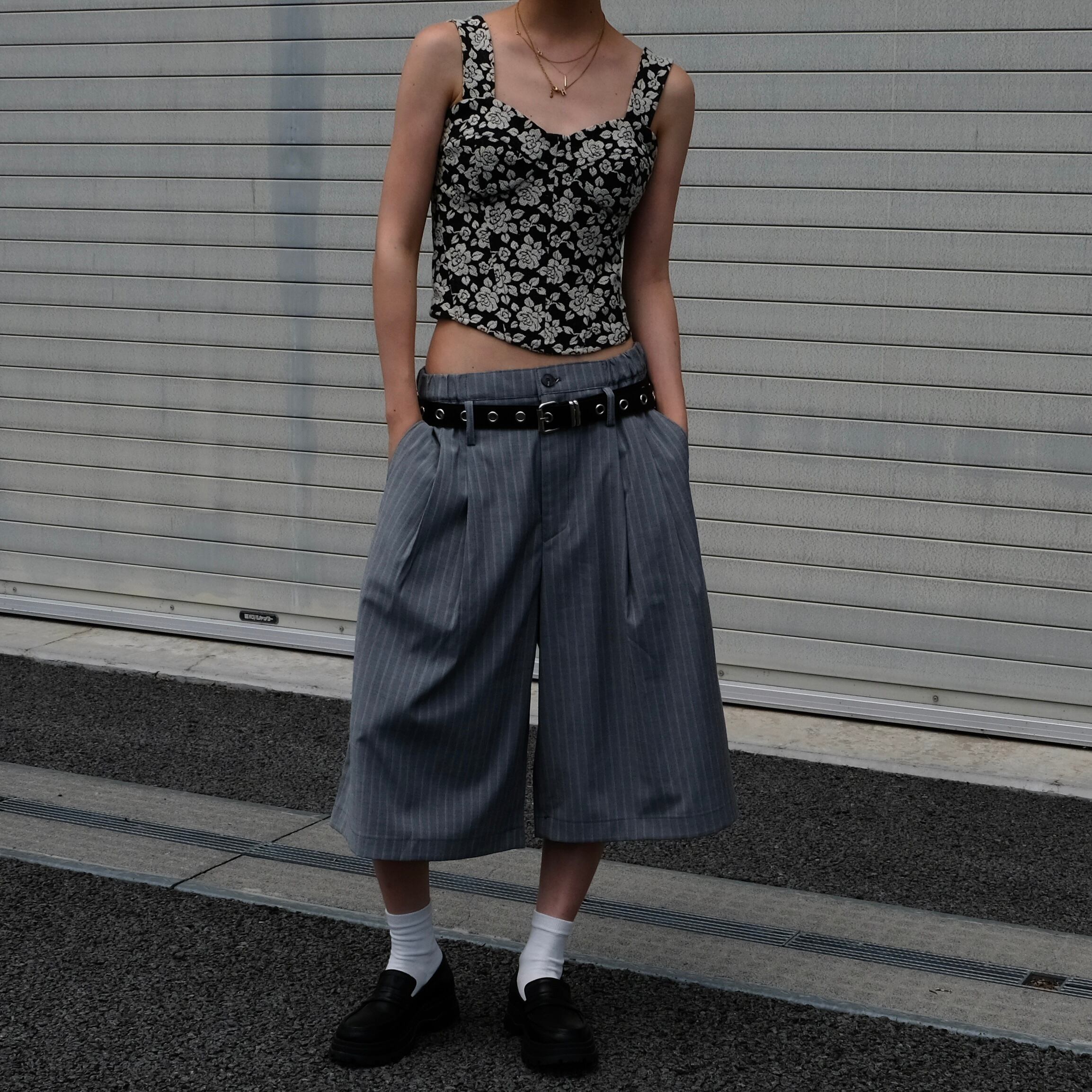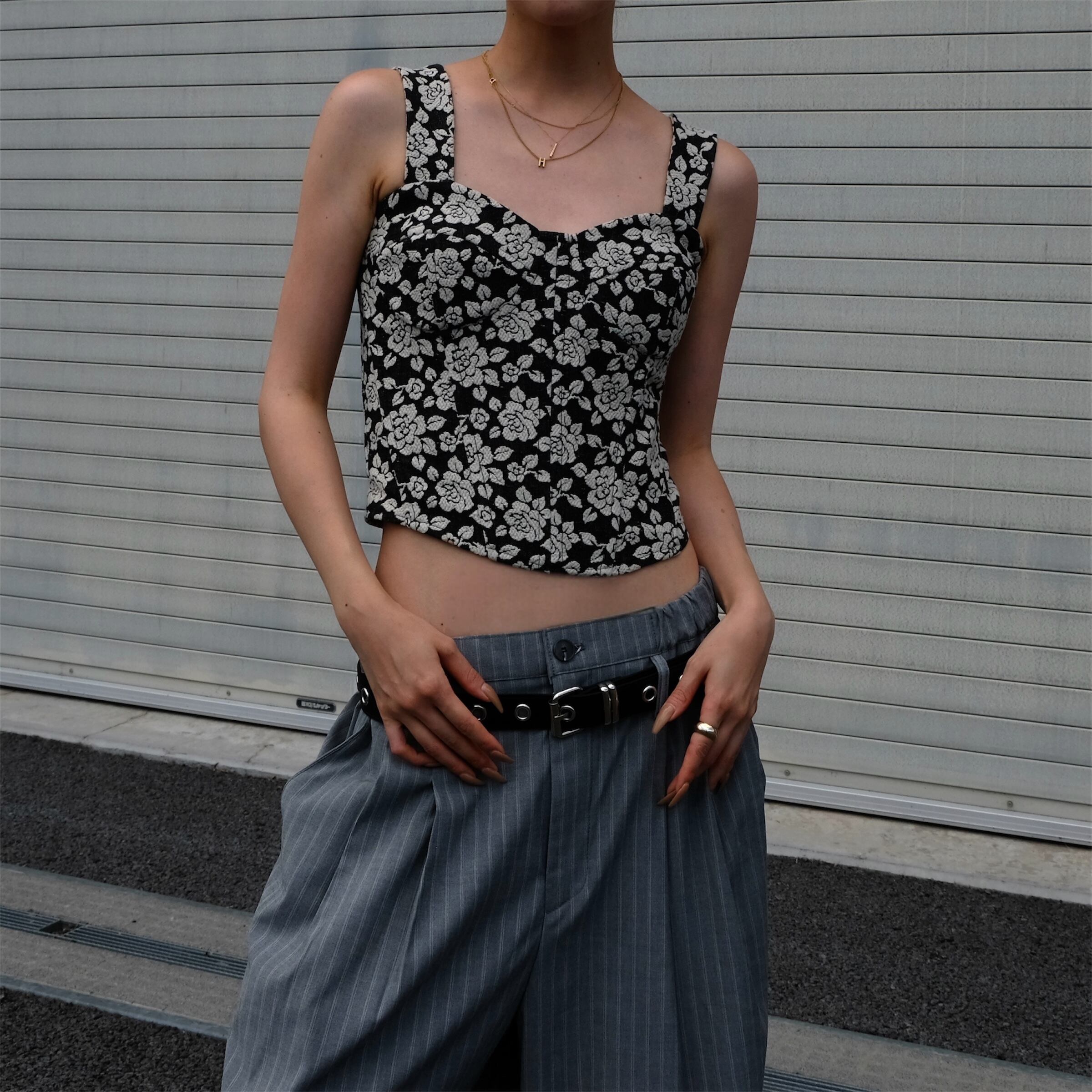 クラシカルな花柄と構築的なシルエットが魅力の、カップ付きジャカードトップス。