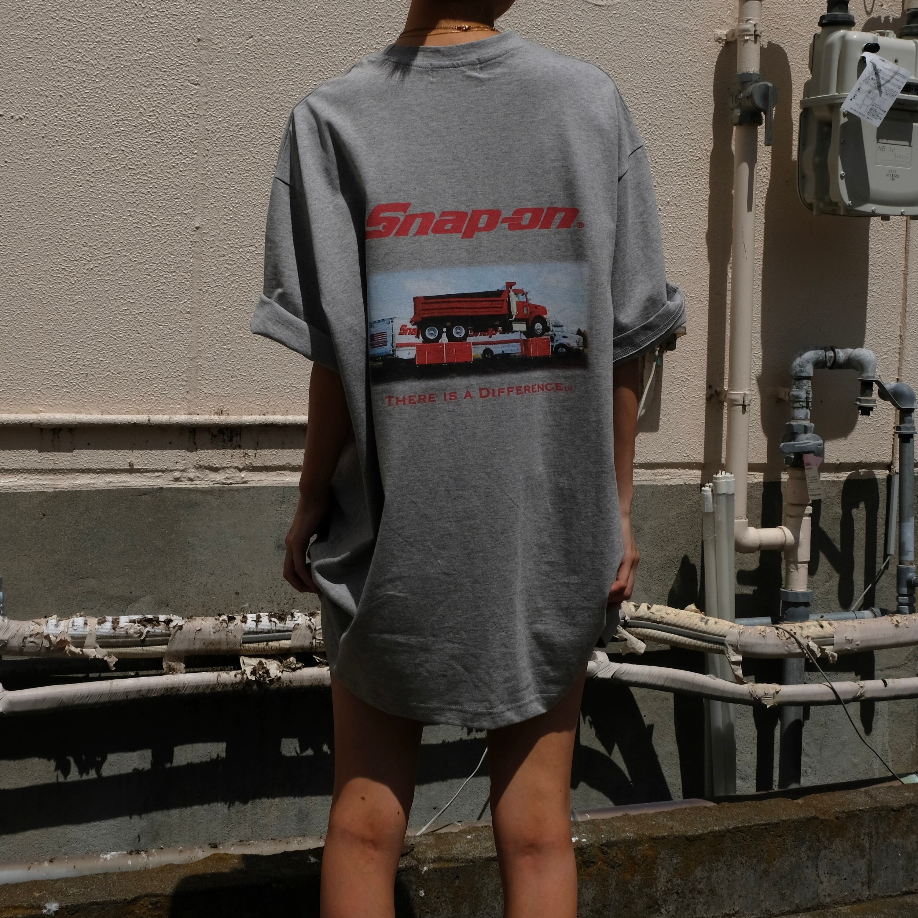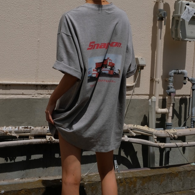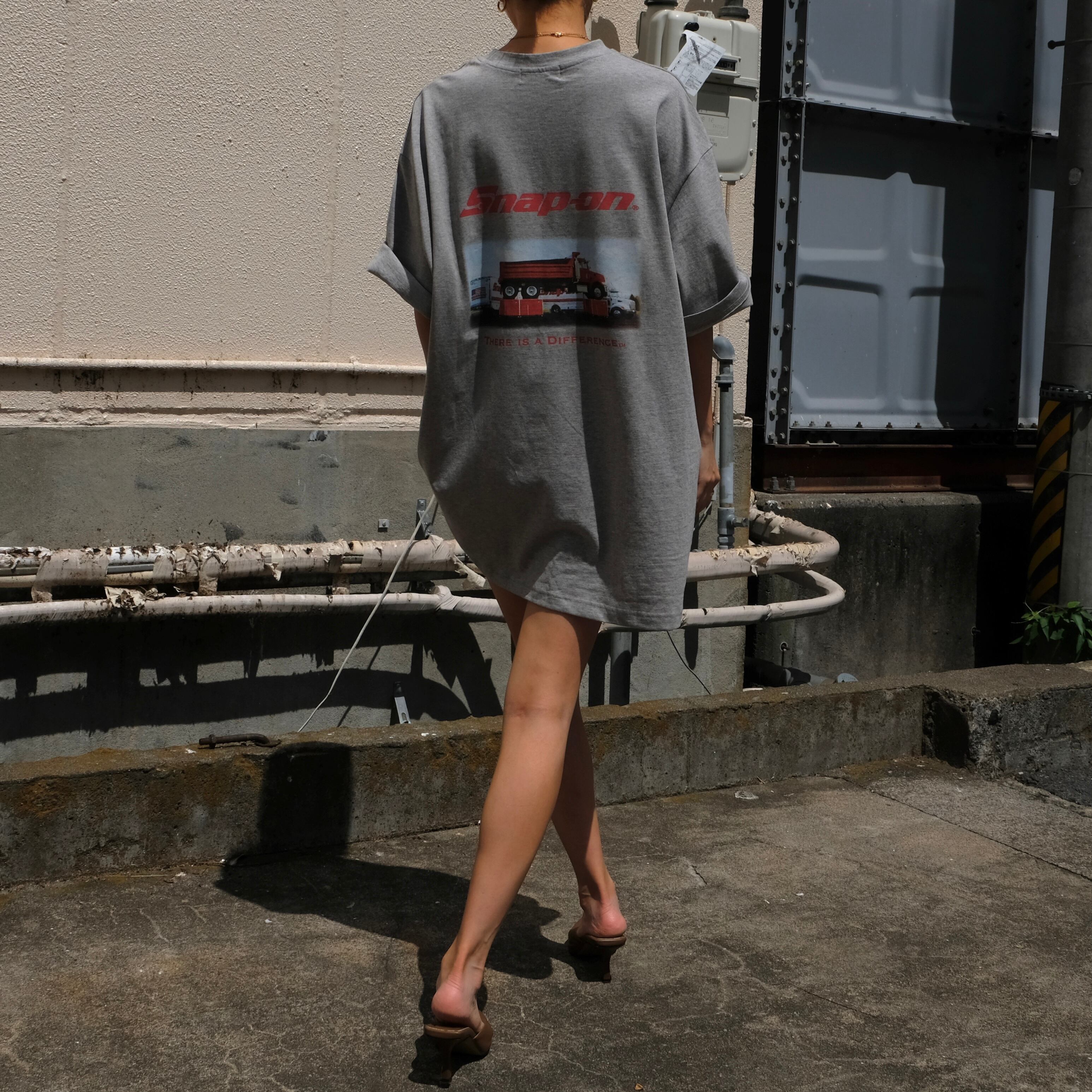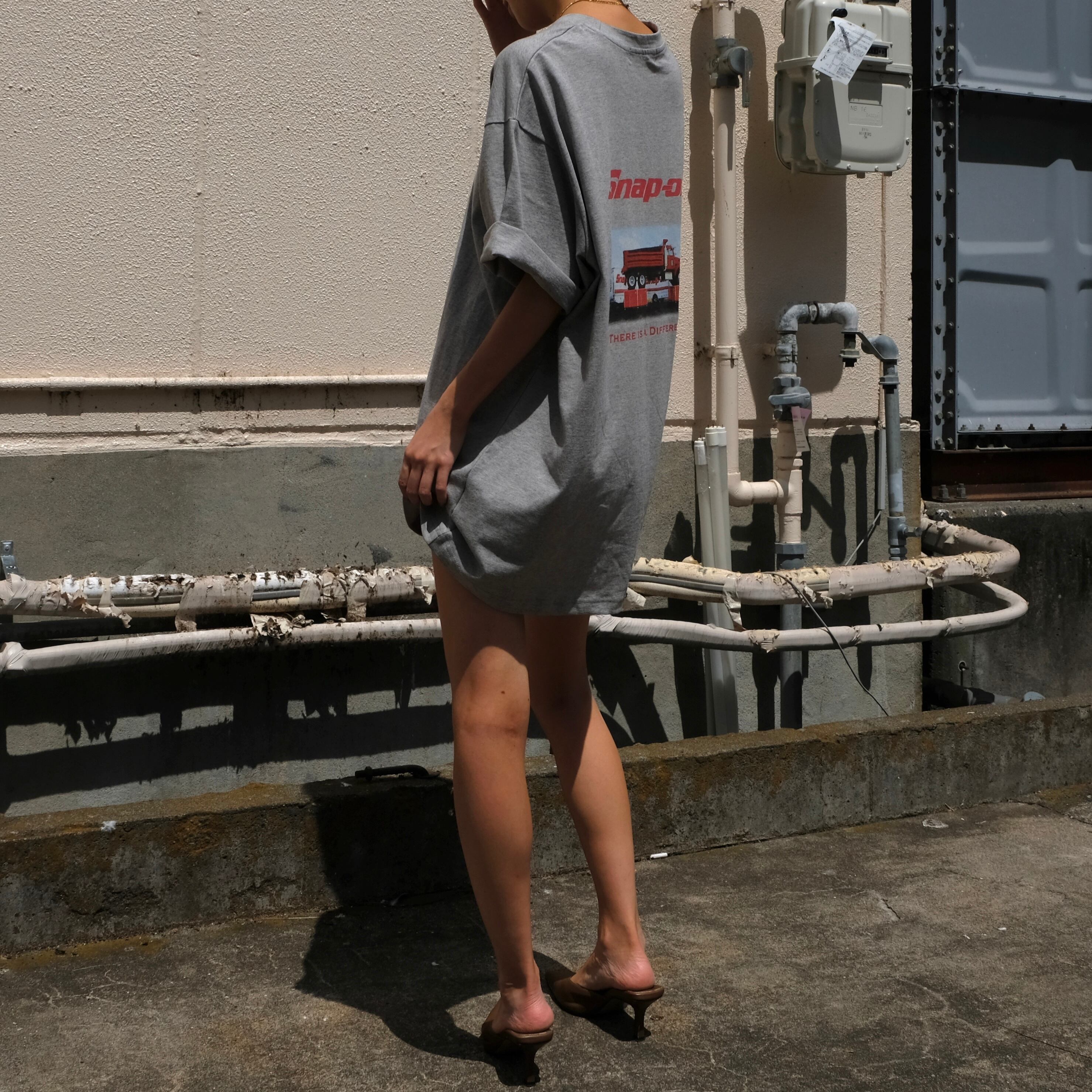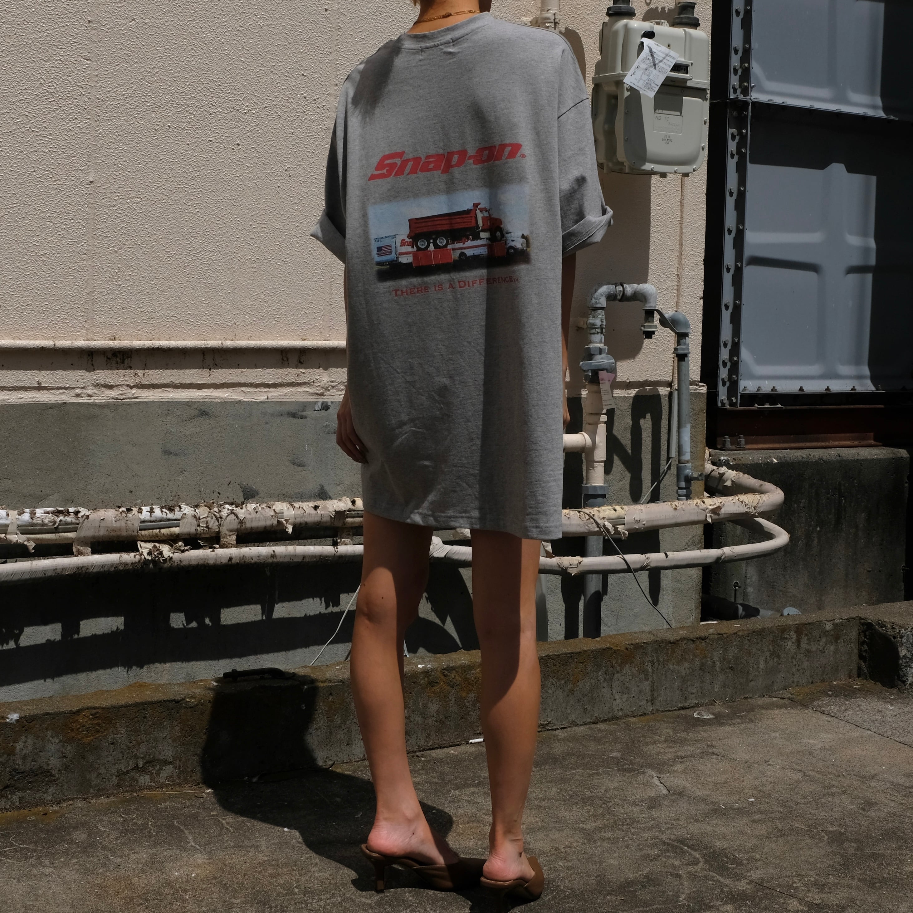 大胆にプリントされたトラックのグラフィックが目を引くバックプリントTシャツ。