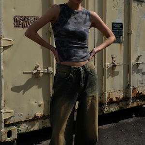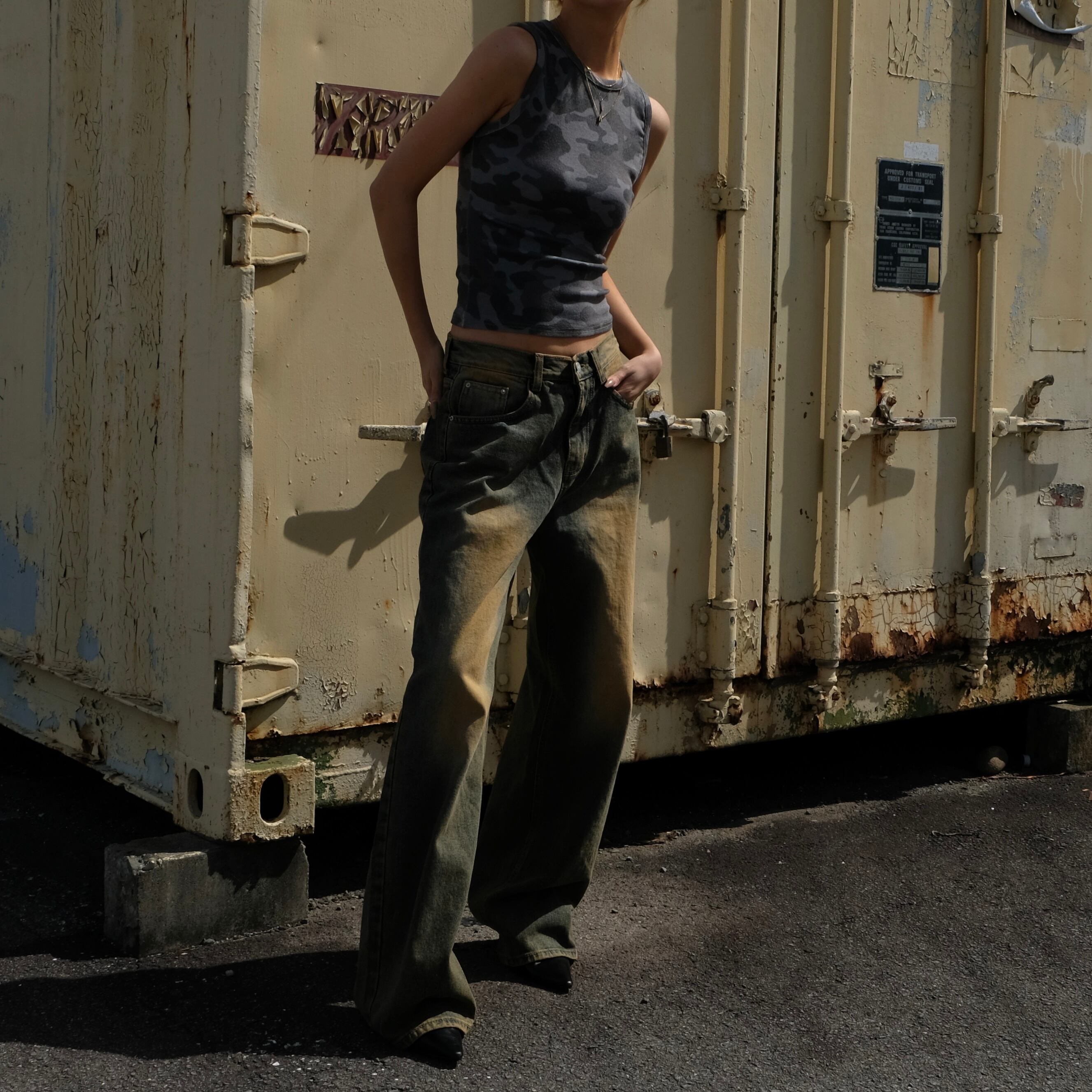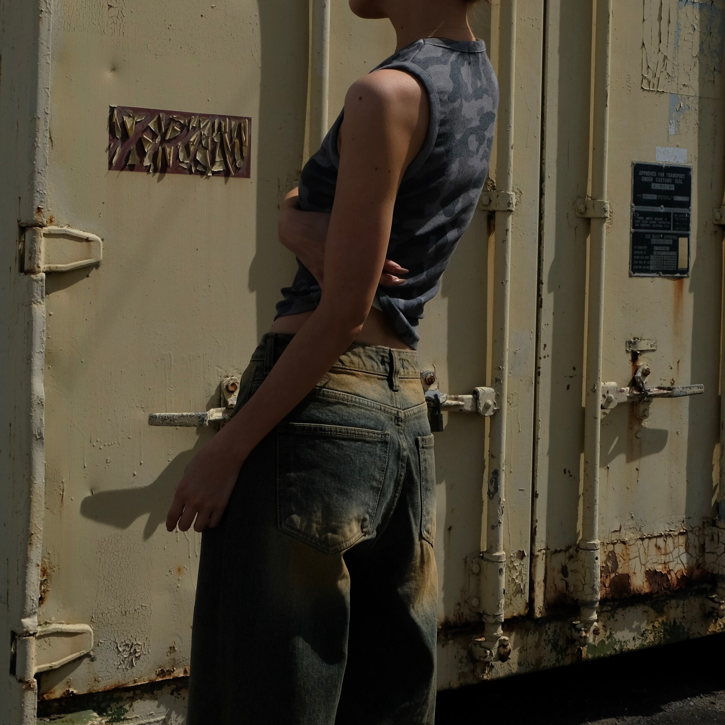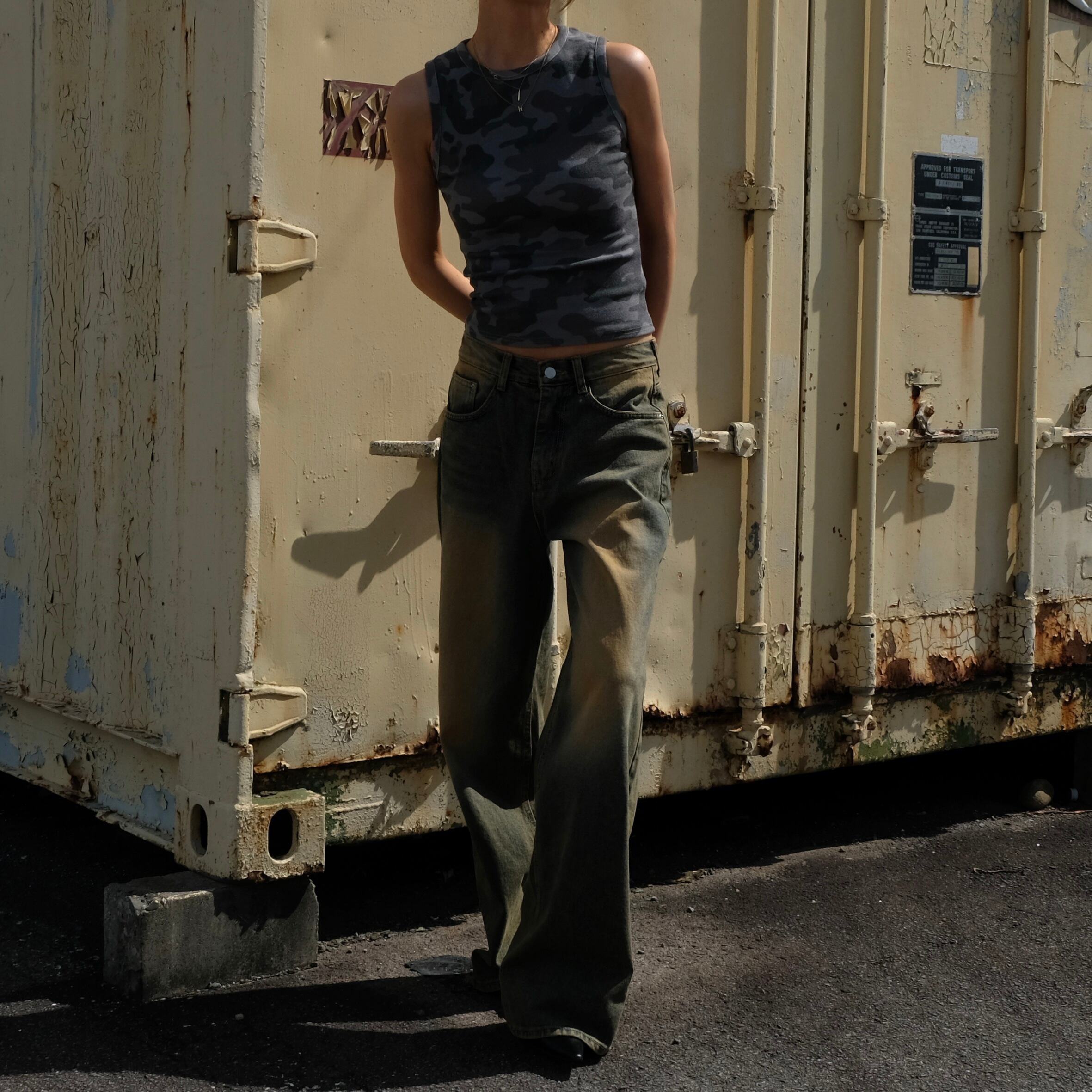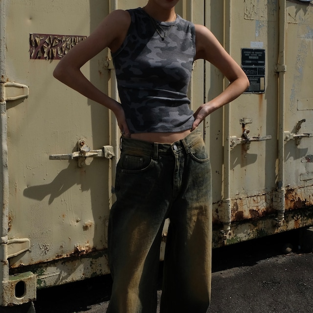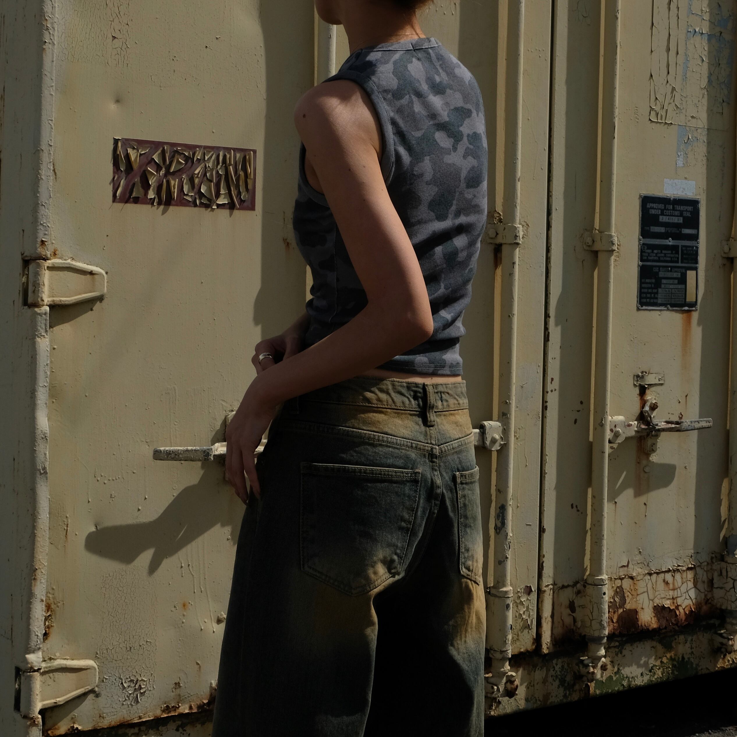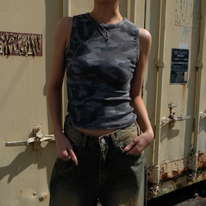 大胆すぎない、都会的なカモフラ柄で差をつけるタンクトップ。
