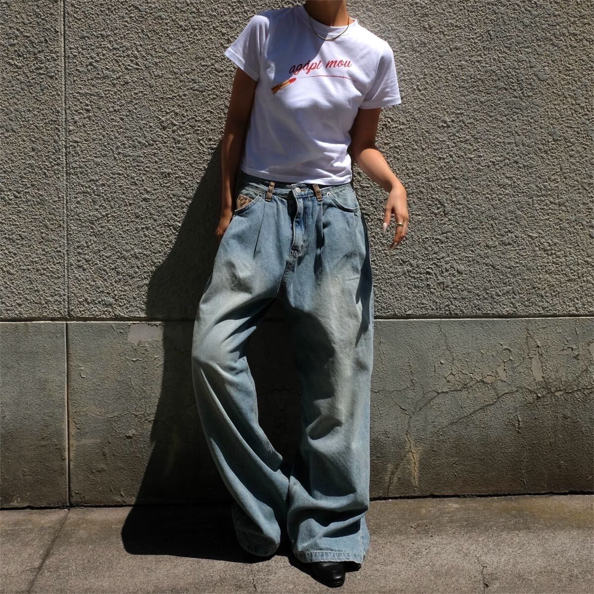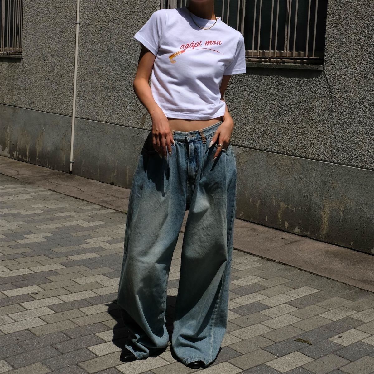 リップスティックで描いたようなメッセージが目を引くプリントTシャツ。