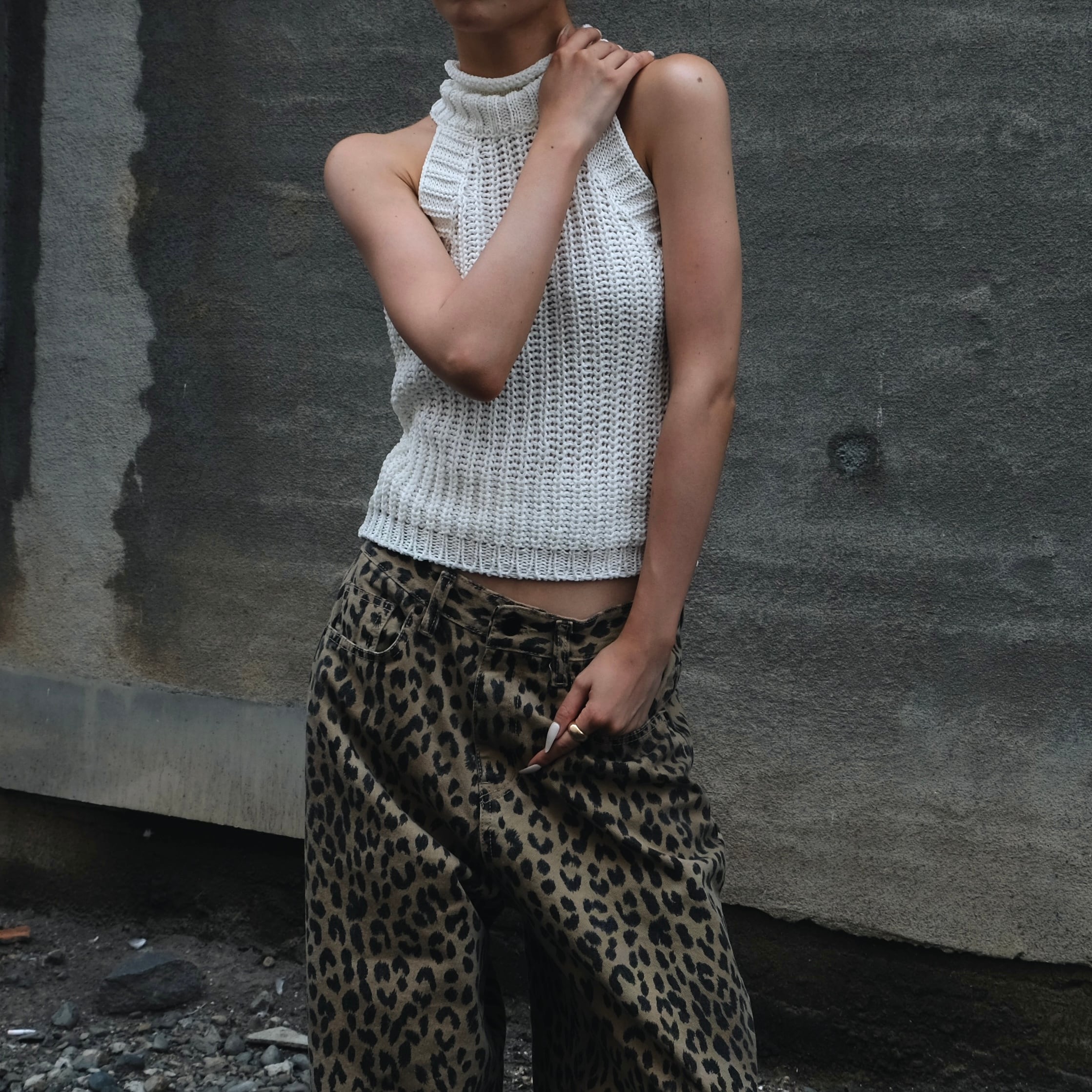 SLEEVELESS FUNNEL KNIT / WHT