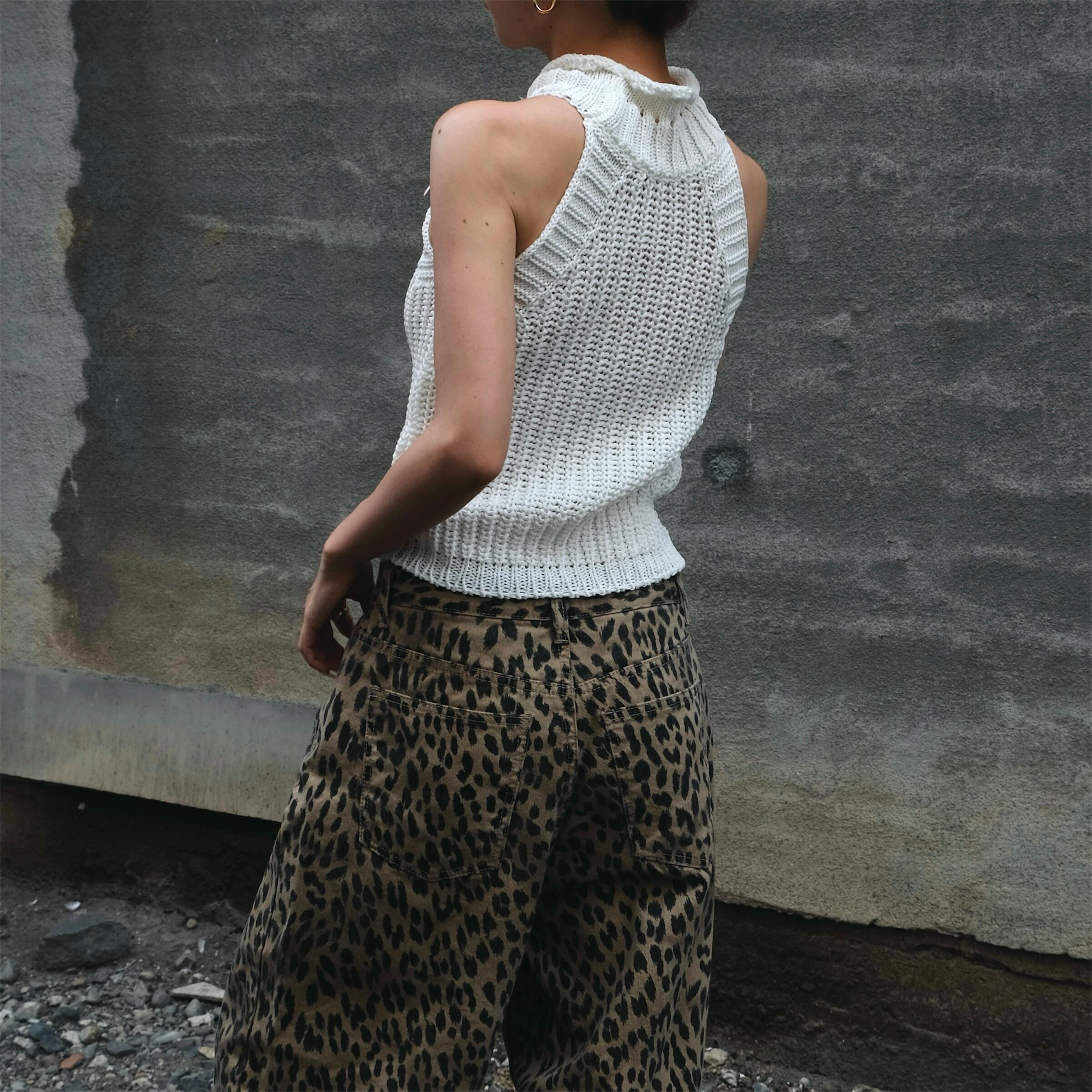 立体感のある編み地が目を惹く、ノースリーブのサマーニットトップス。