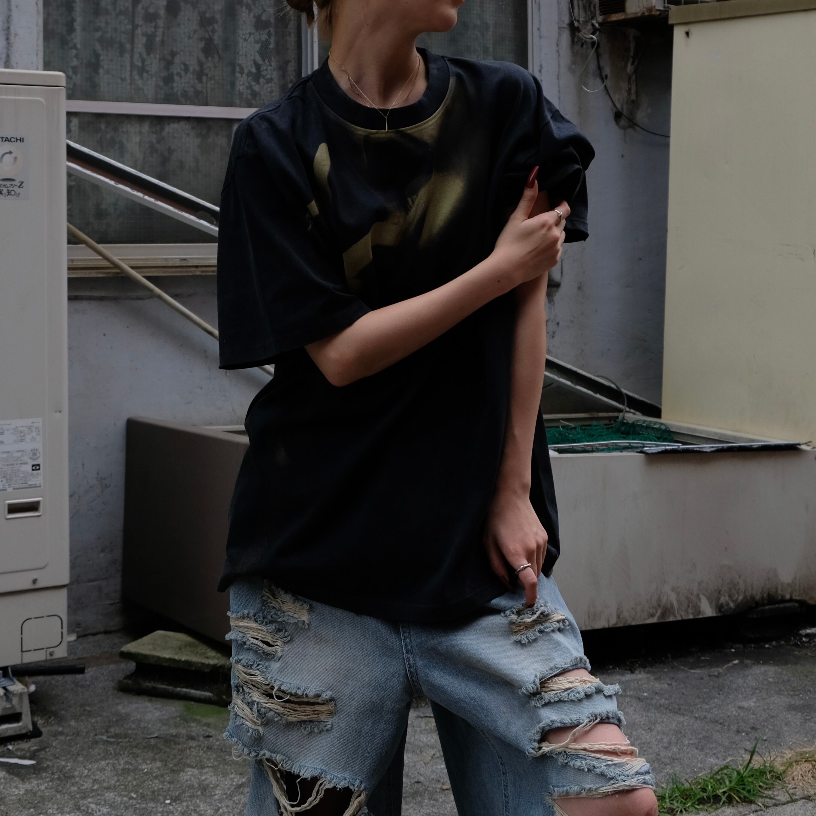 フェード感のあるブラックボディに、にじむような発色のプリントが映え、ラフに着ても雰囲気が出ます。