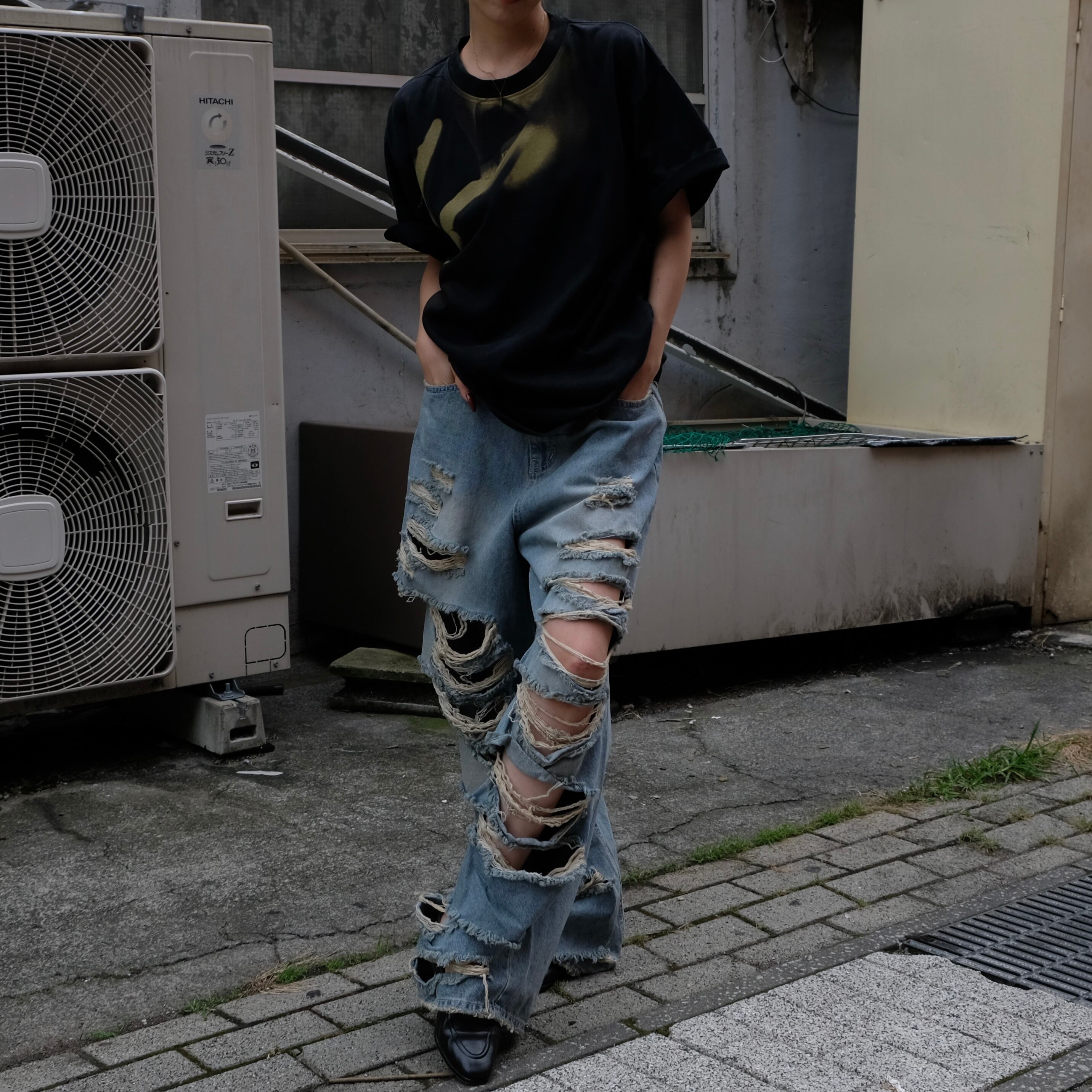 胸元にスプレーで描いたようなリップのプリントが特徴的なオーバーサイズTシャツ。