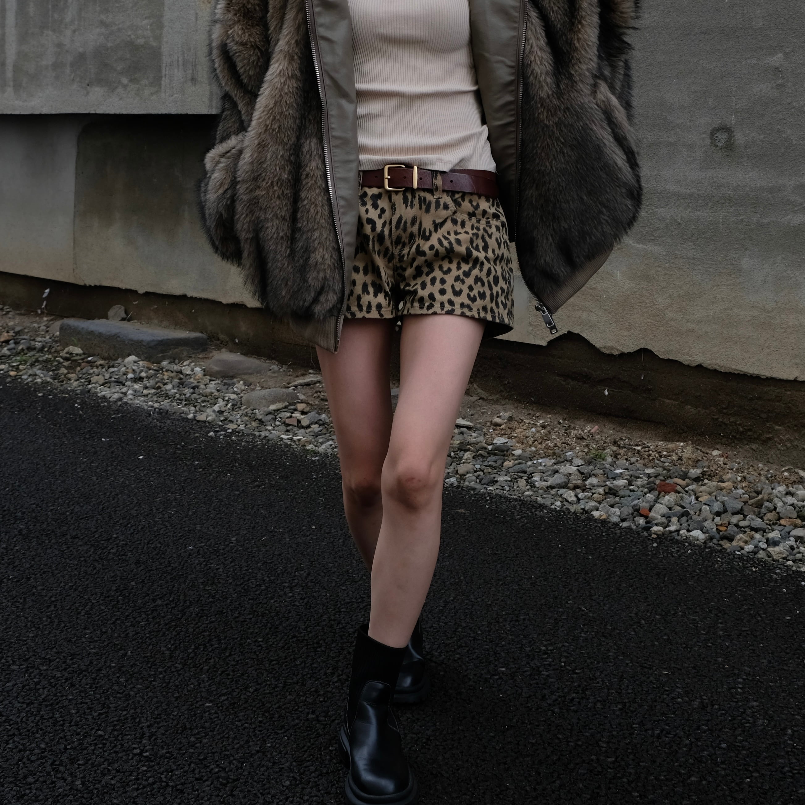 インパクトのあるレオパード柄を全面にあしらったショートパンツ。