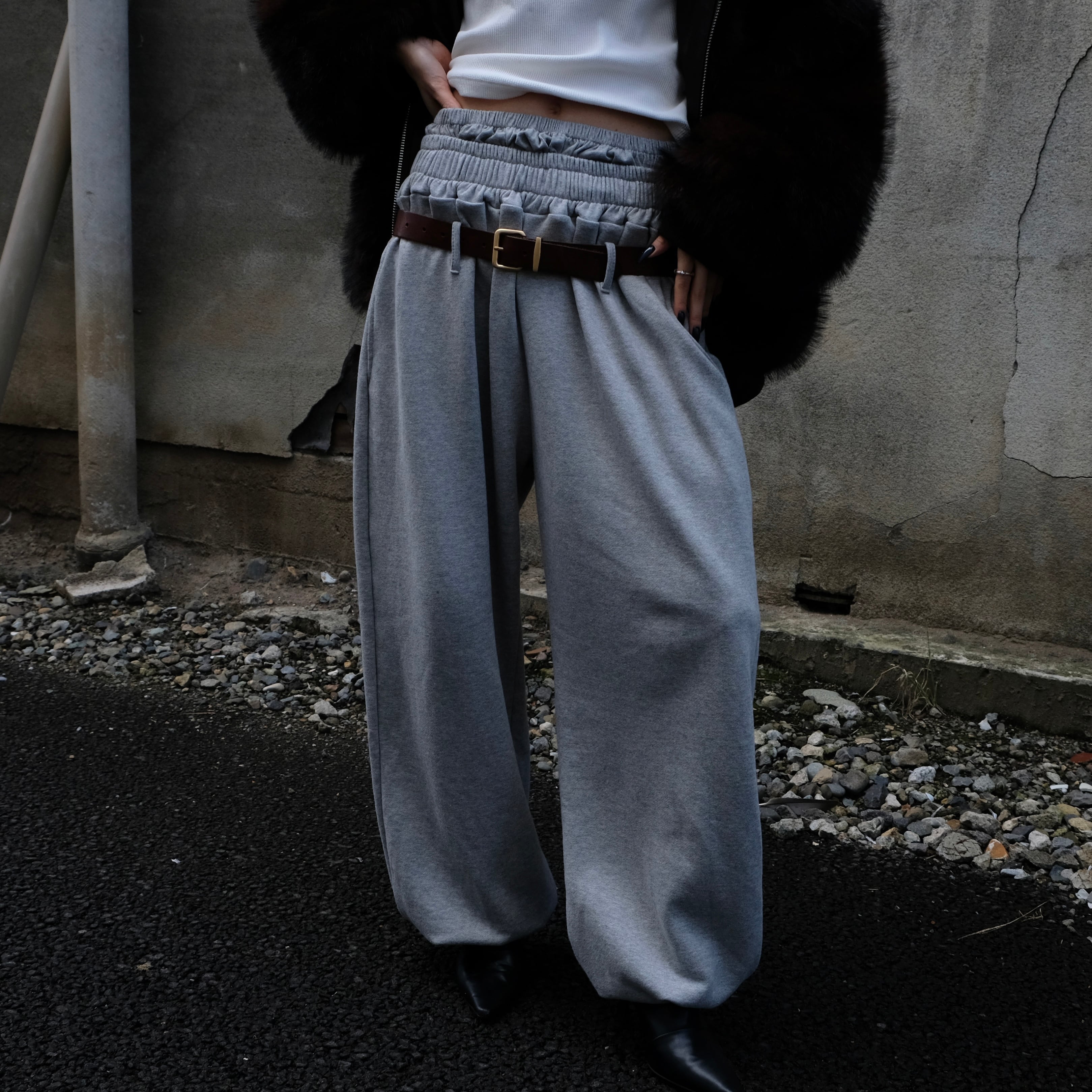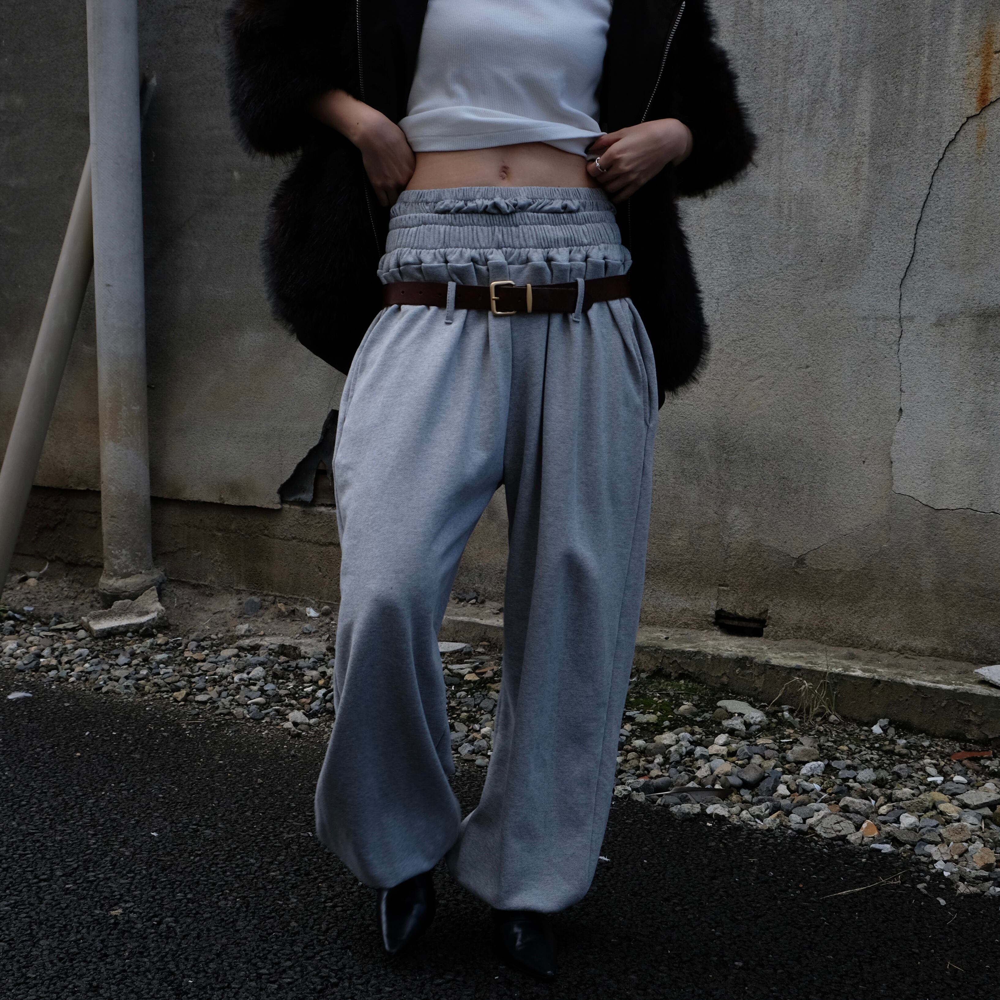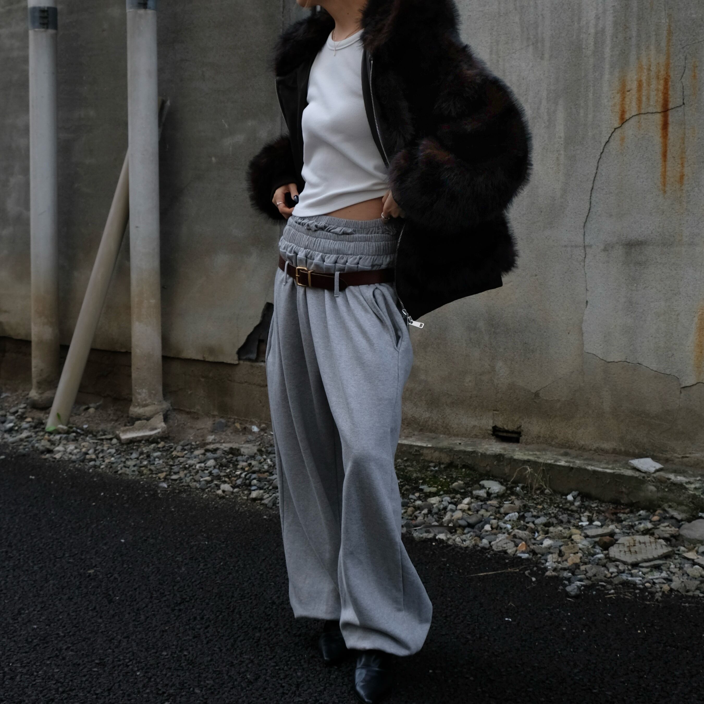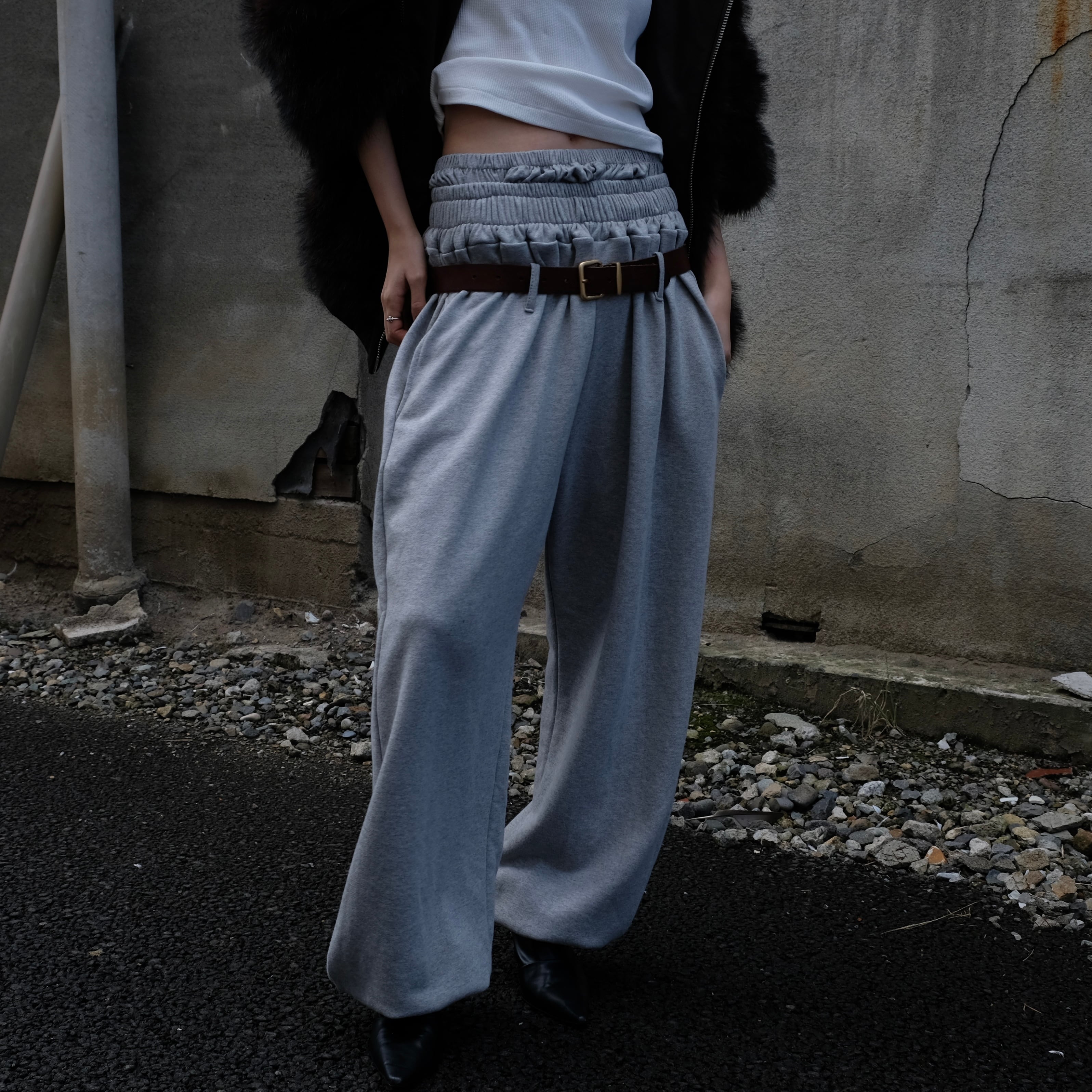 レイヤード風のデザインがスタイリングに映えるスウェットパンツ。