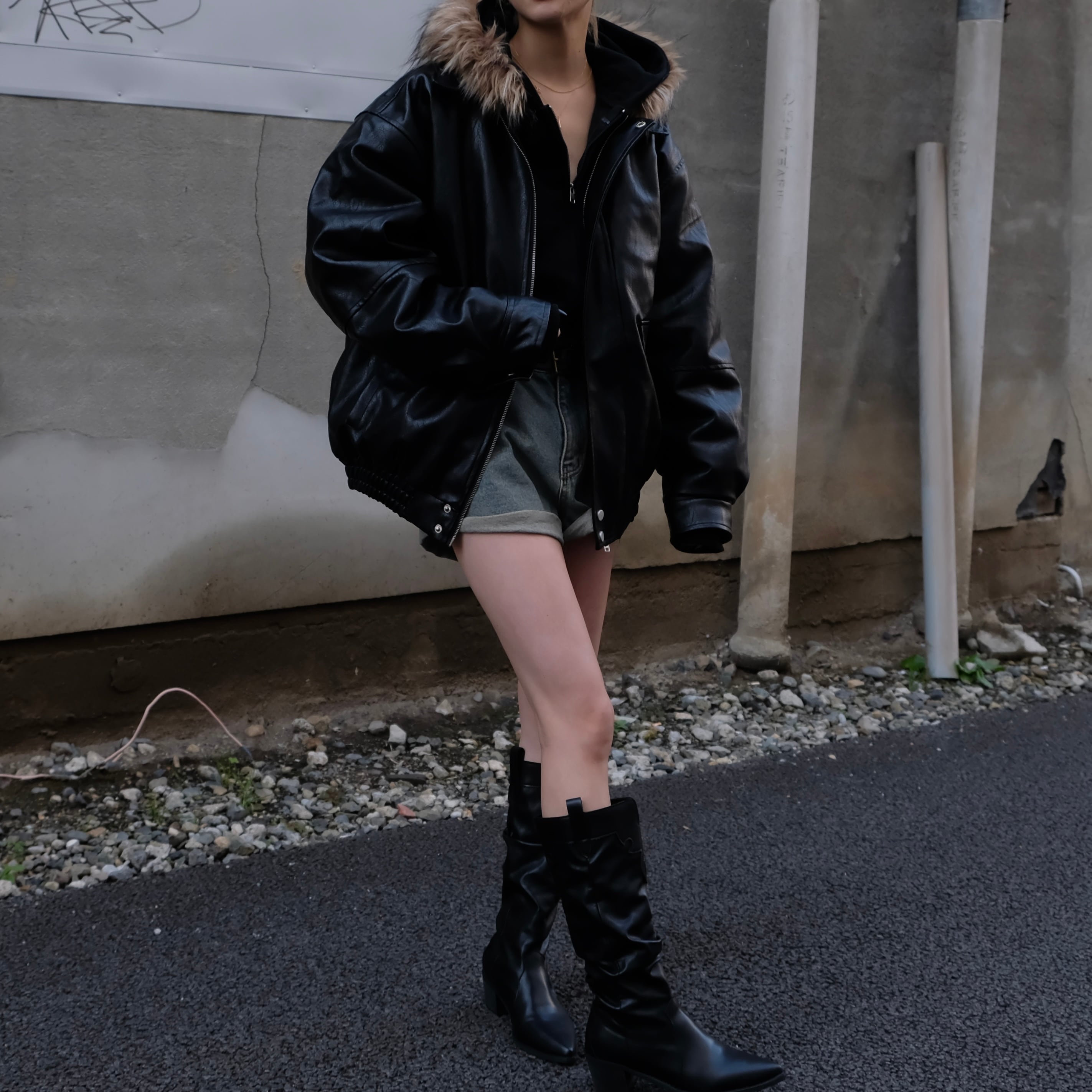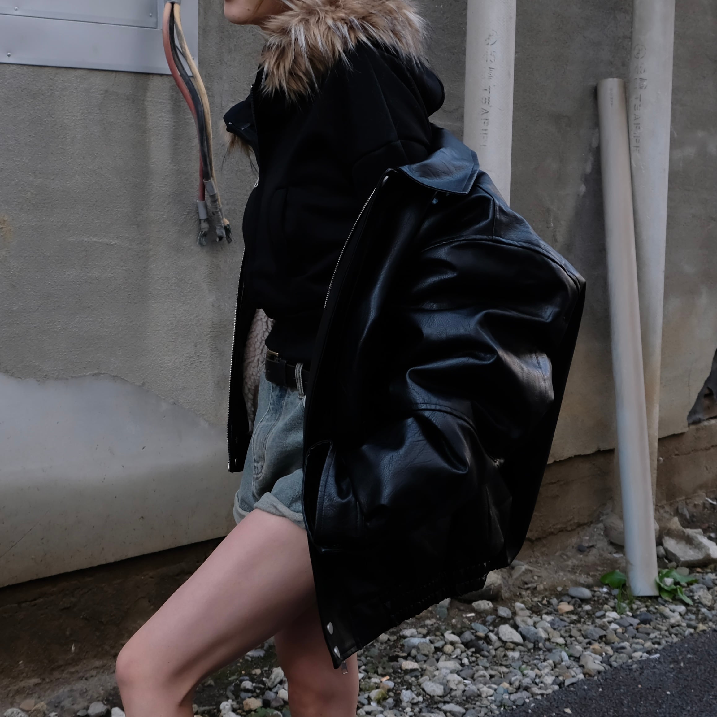 クラシックなムードにモードなエッセンスを融合させたレザージャケット。