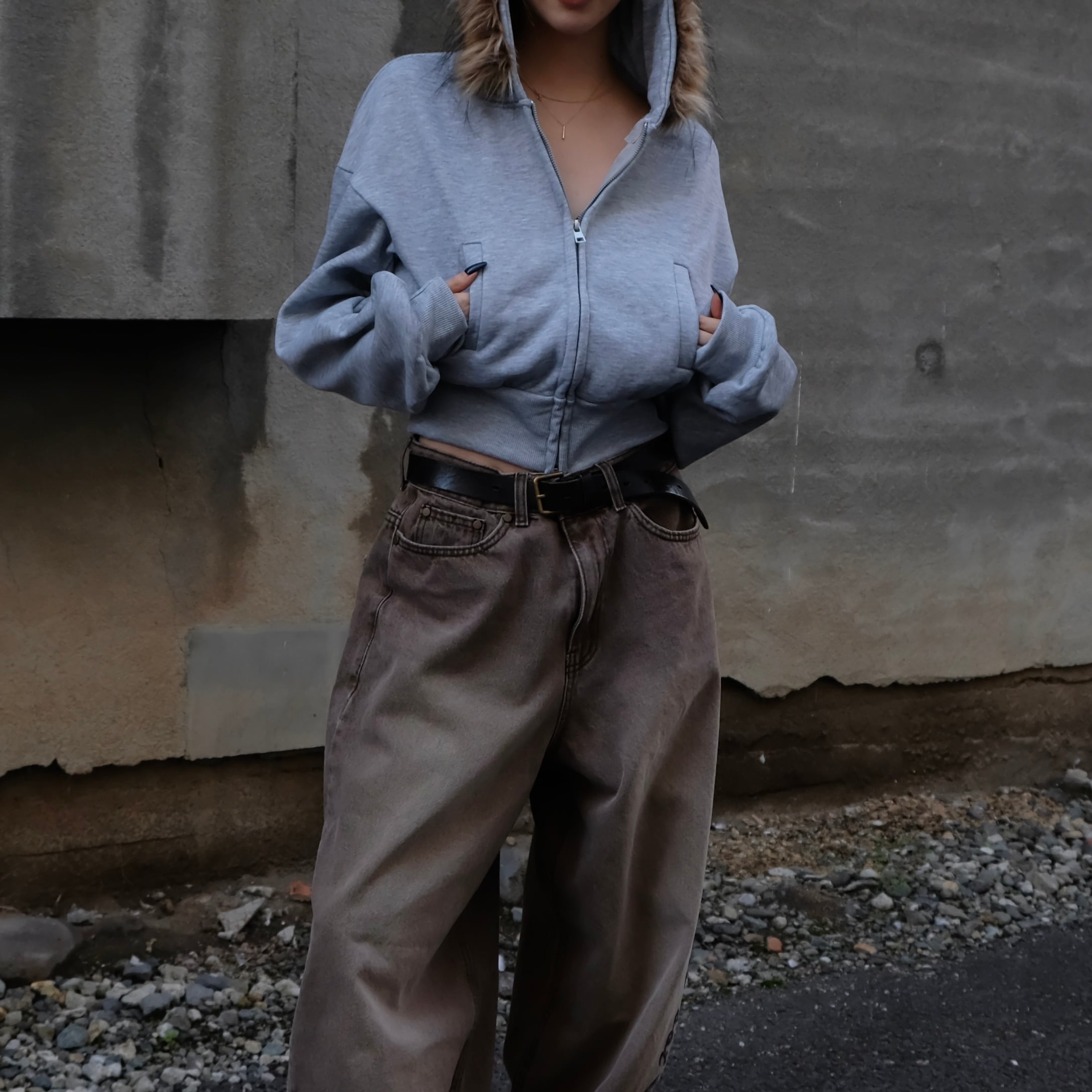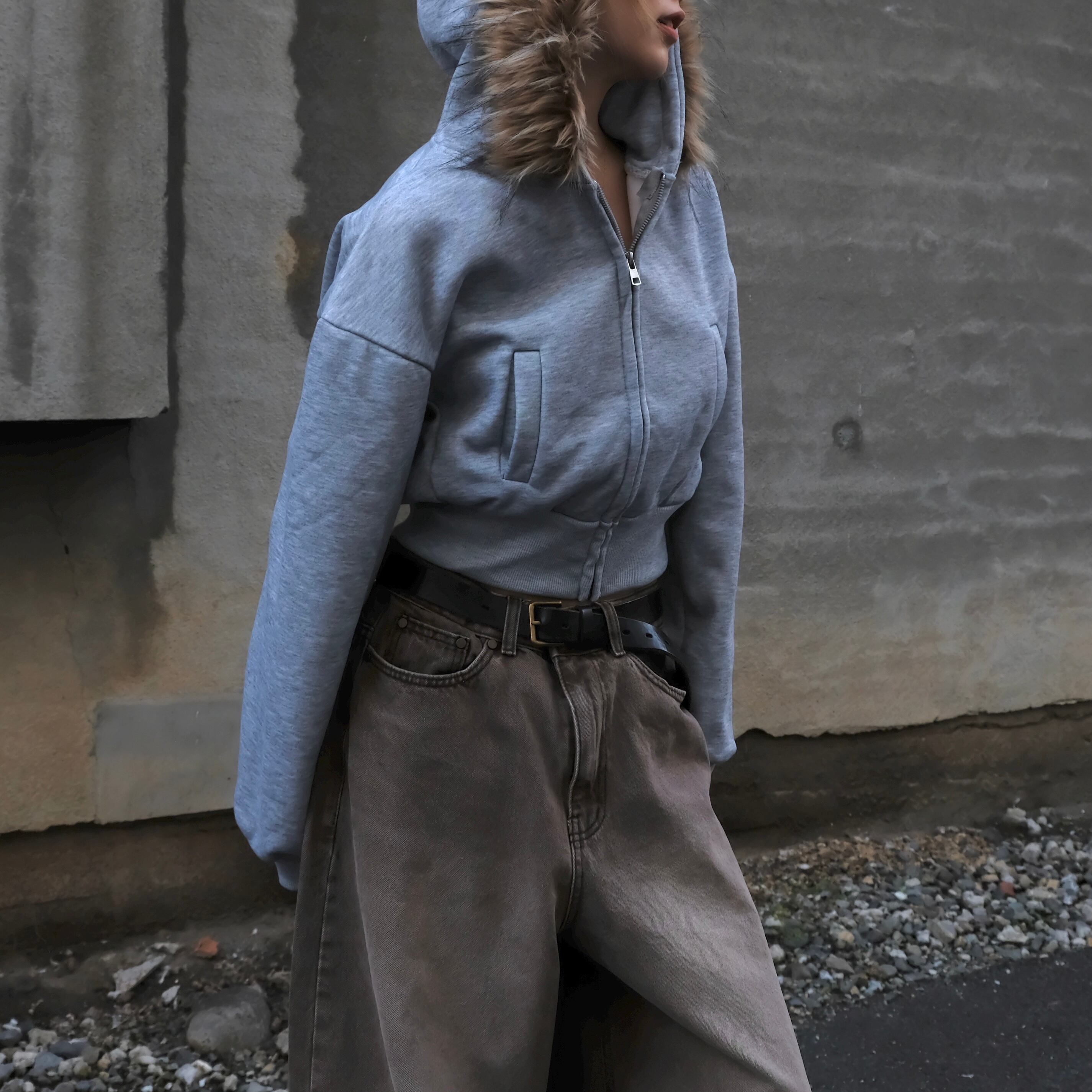 ふんわりとしたぬくもりを感じるジップアップフーディー。