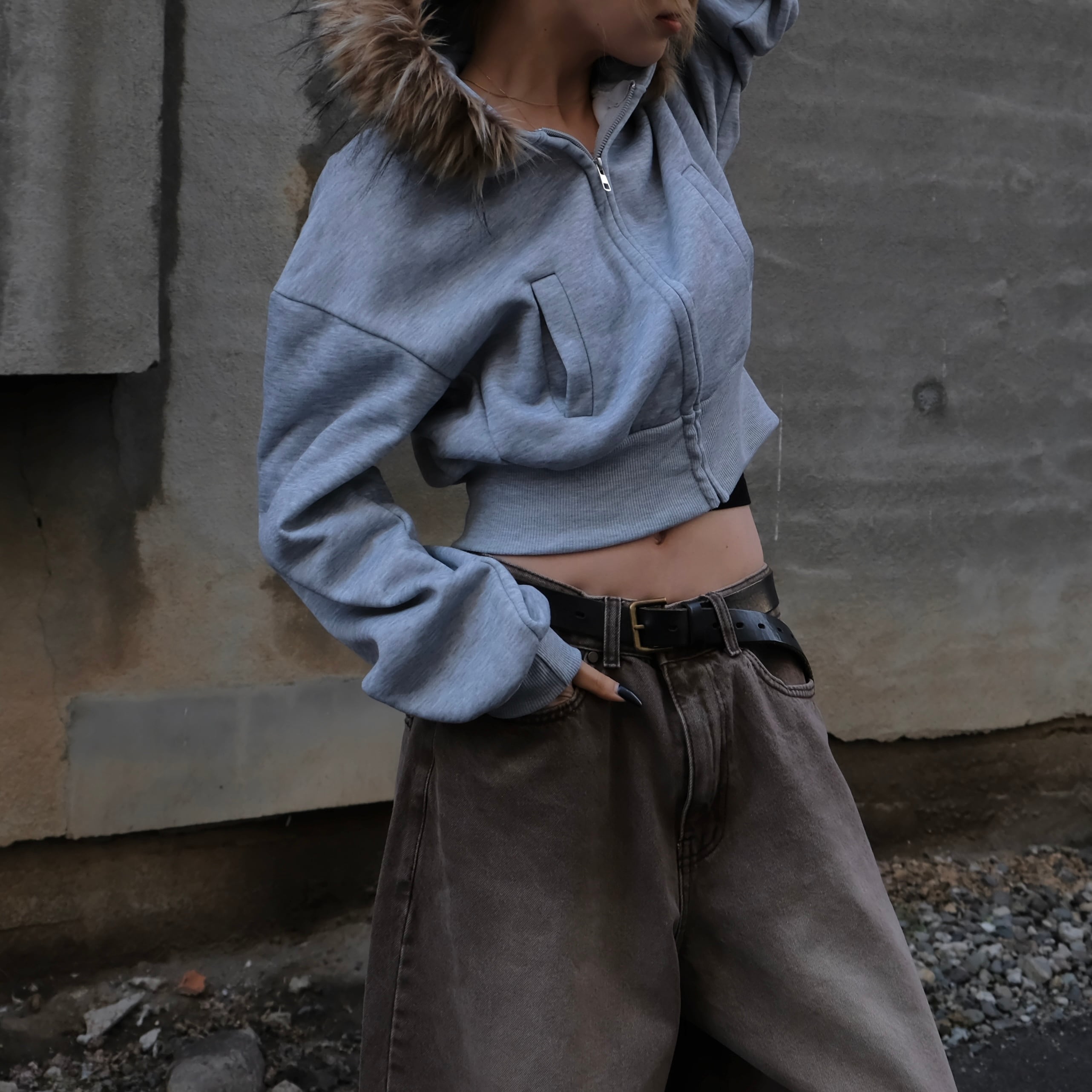 コンパクトなシルエットとクロップド丈がバランスよく、カジュアルスタイルをすっきり引き締めてくれる一枚です。