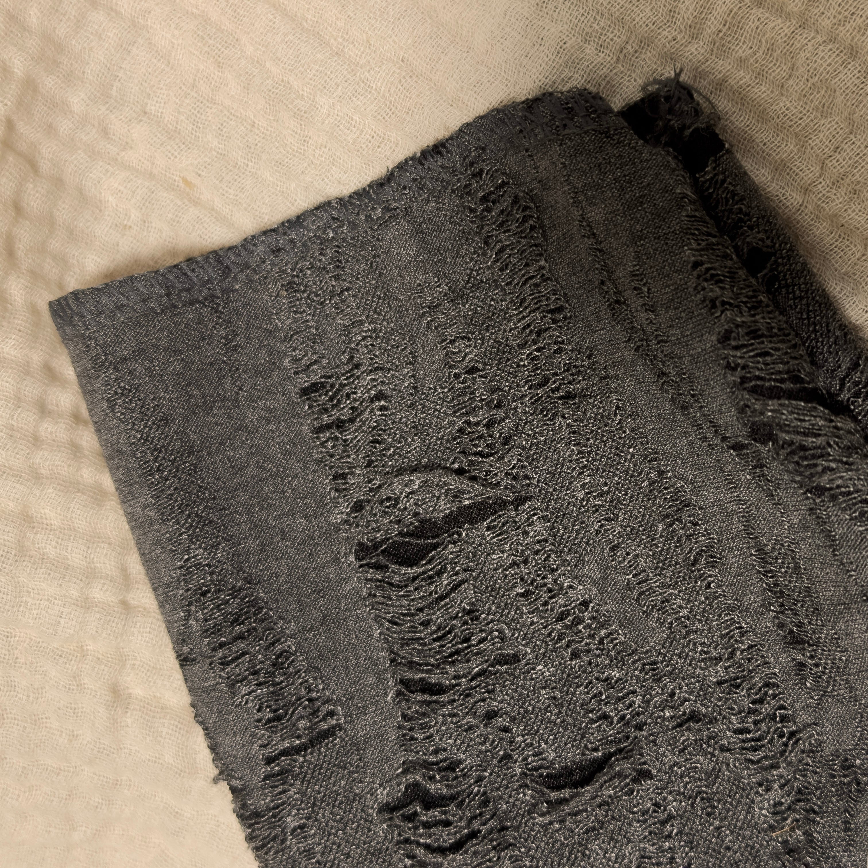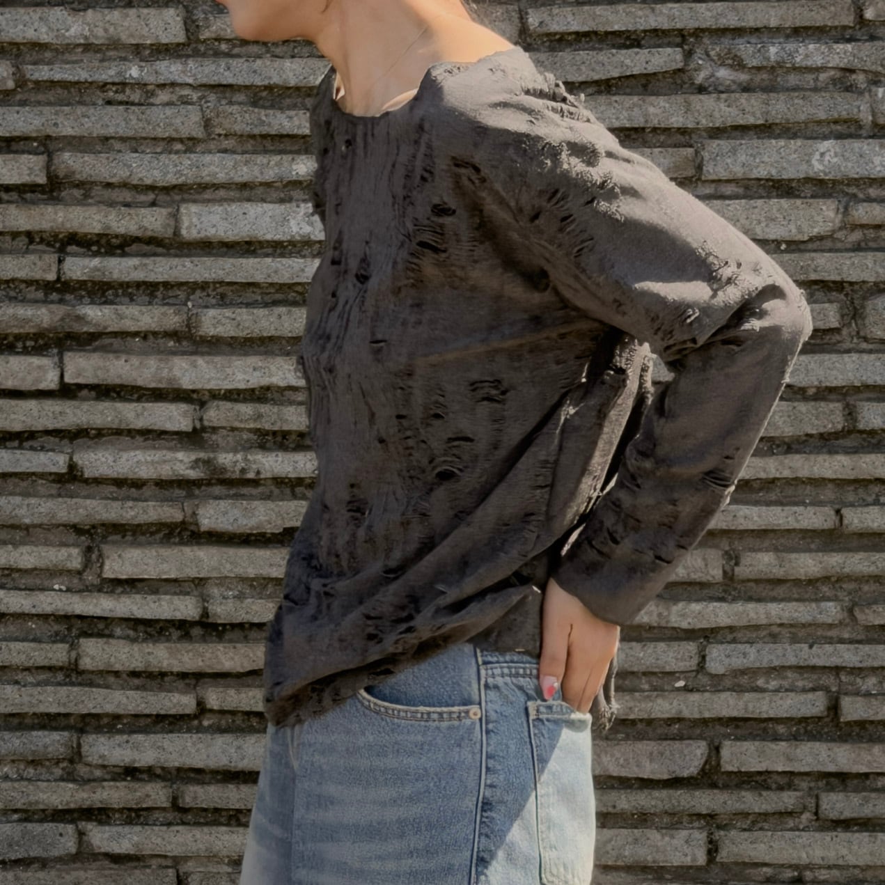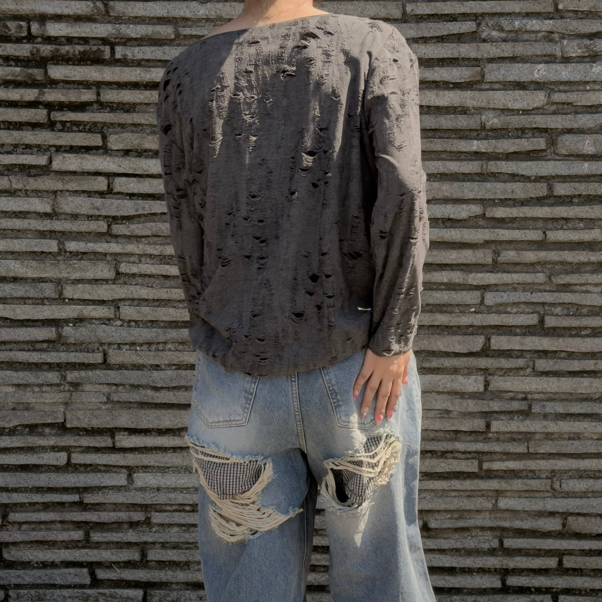 全面に入ったクラッシュ加工が、薄手の編地に映える一着。