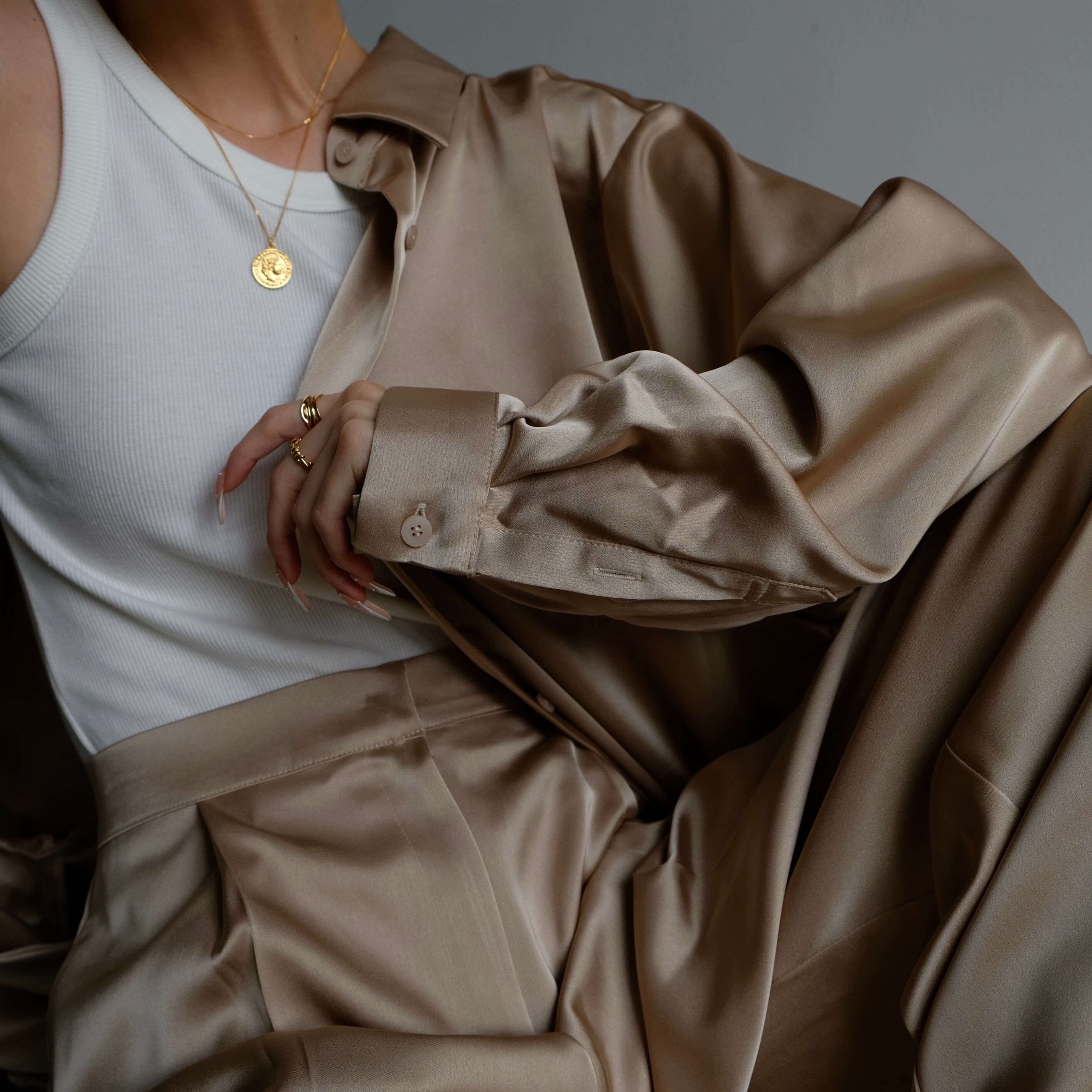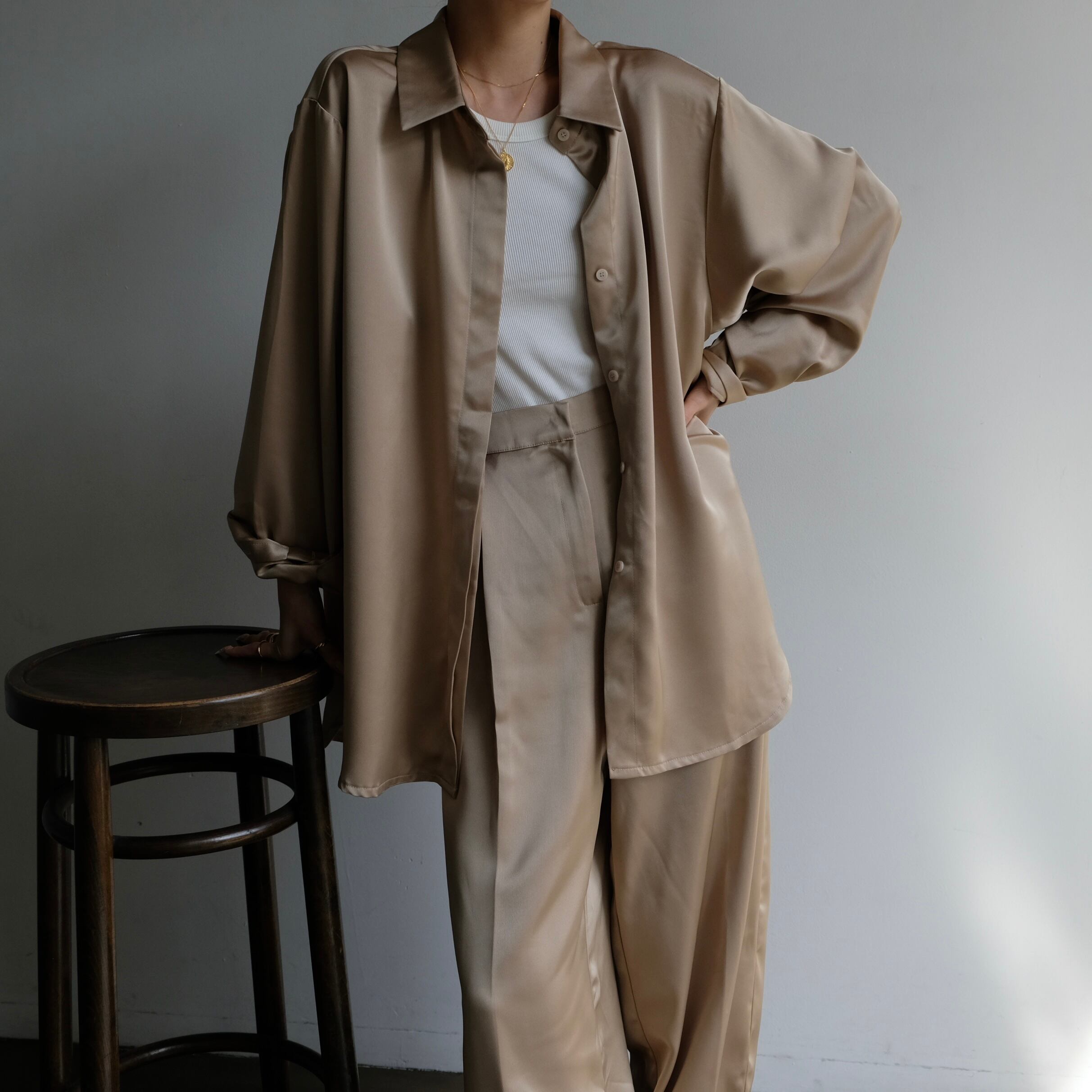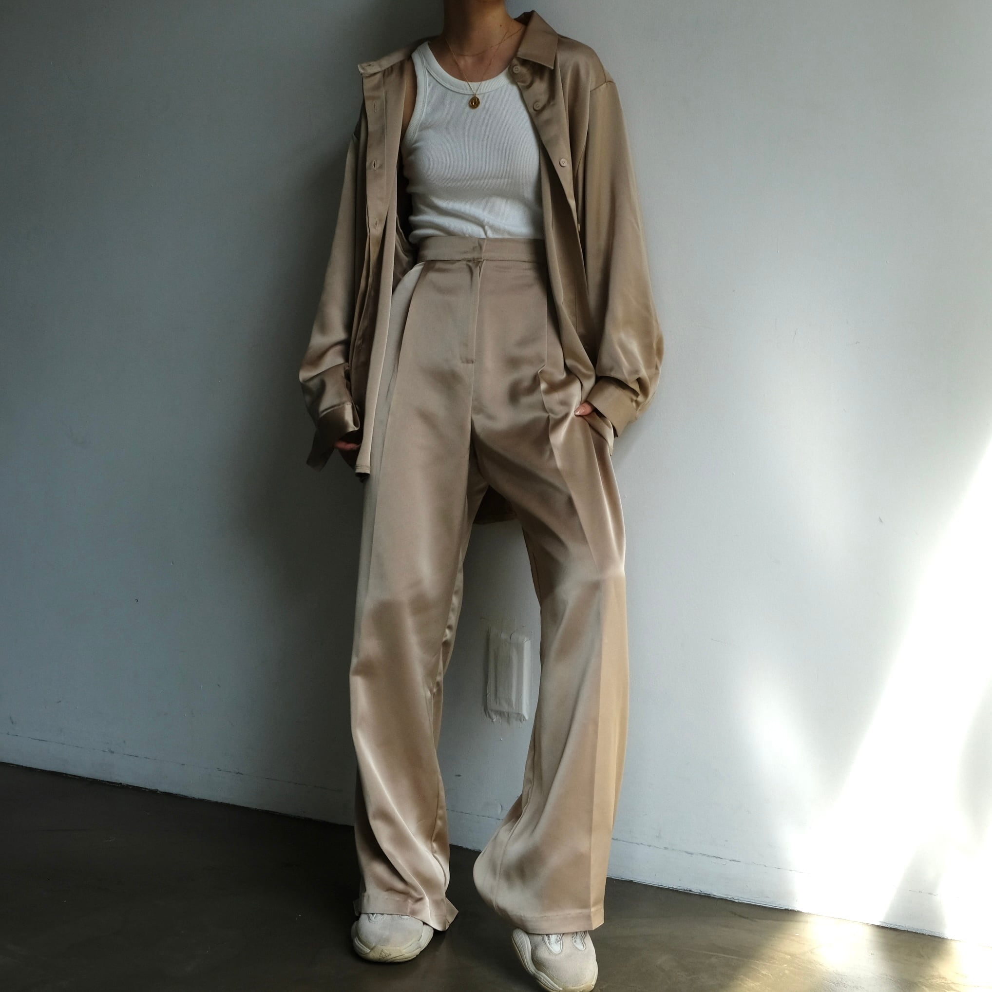 同じシリーズの「SMOOTH SATIN PANTS」とセットアップでの着用もおすすめです。