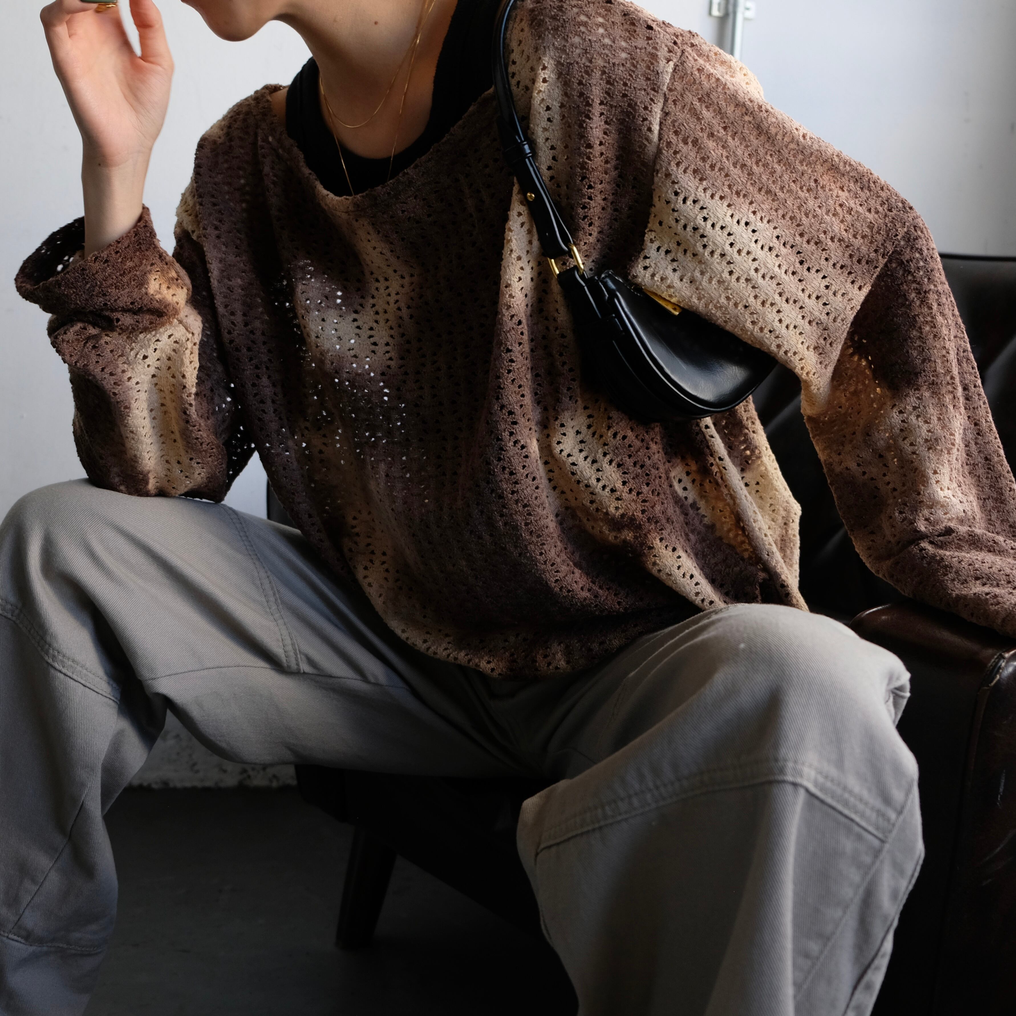程よい肌見せが叶いますが、肌寒い時期はタートルネック等とレイヤードして着用いただくのがおすすめです。