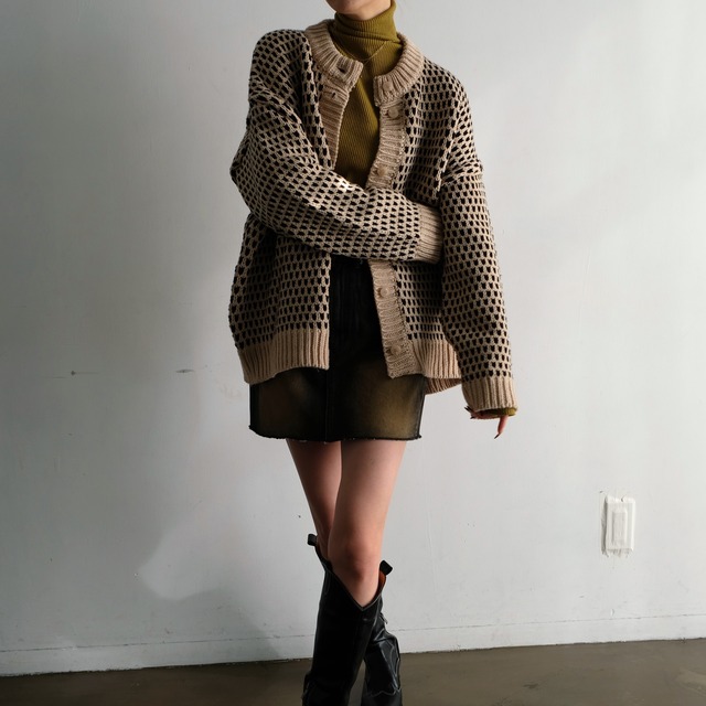程よいボリューム感と格子柄のようなデザインが、一枚羽織るだけで様になり雰囲気が漂います。