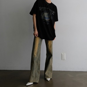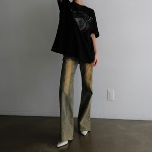 デザイン性があり、ワイドすぎず程よいフレアが美脚効果抜群のデニムボトム。