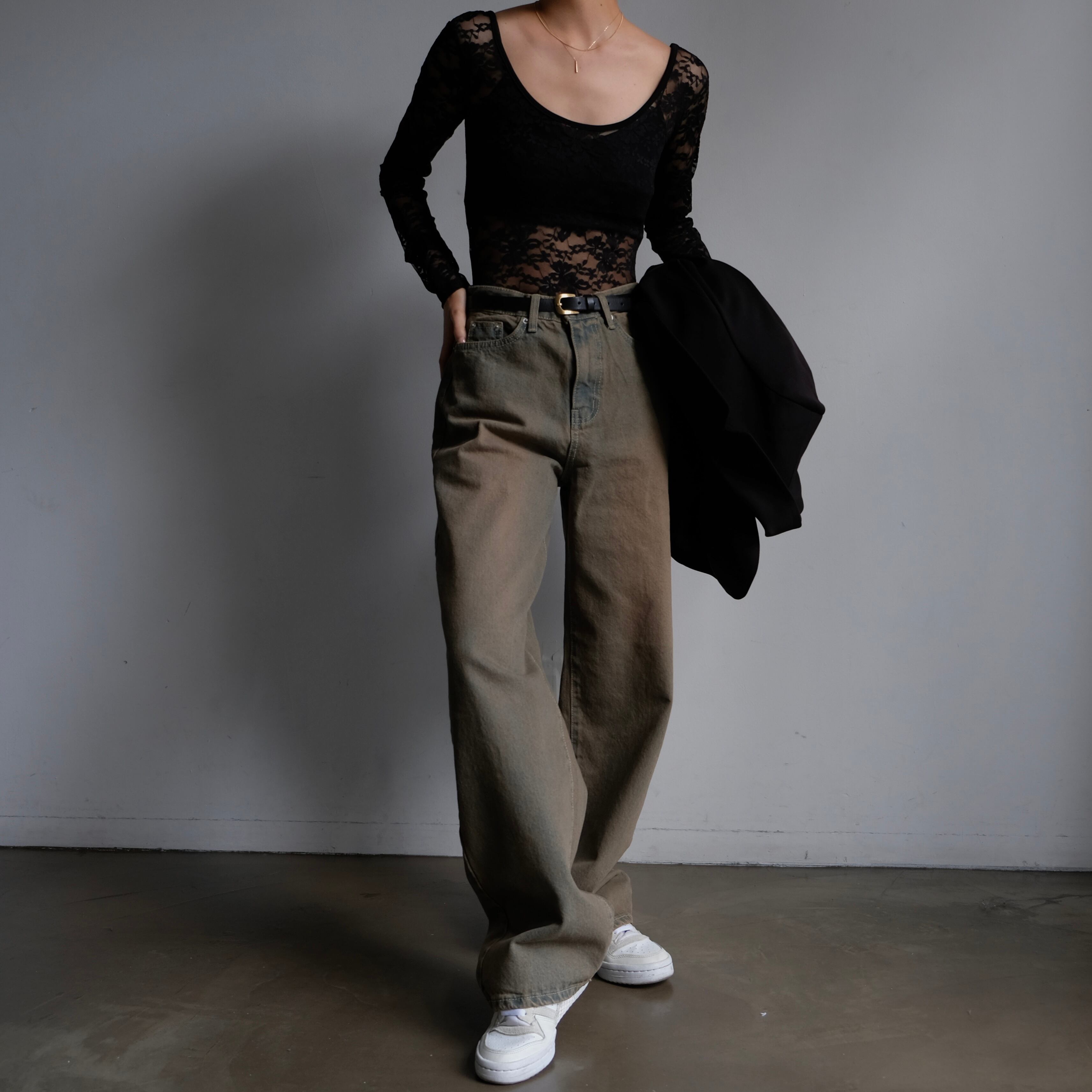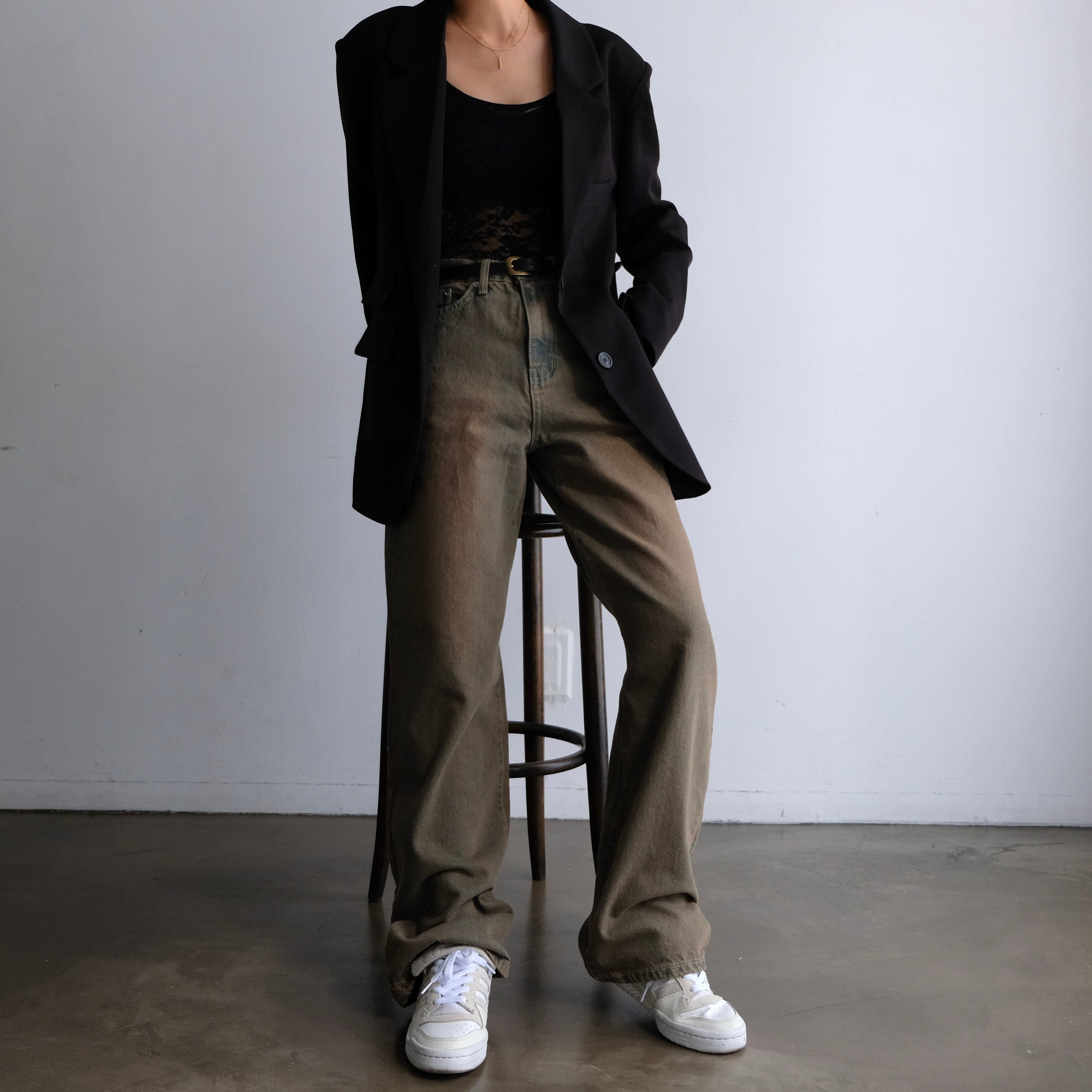 ヴィンテージらしいくすみカラーとムラのあるデザインが特徴的なアッシュデニム。