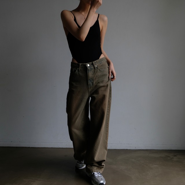 背中は大きく開いていますがボディスーツなので安定感があり、股部分はボタン仕様で着脱も楽に行えます。