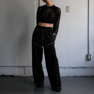珍しいステッチデザインが目を惹くワイドスウェットパンツ。
