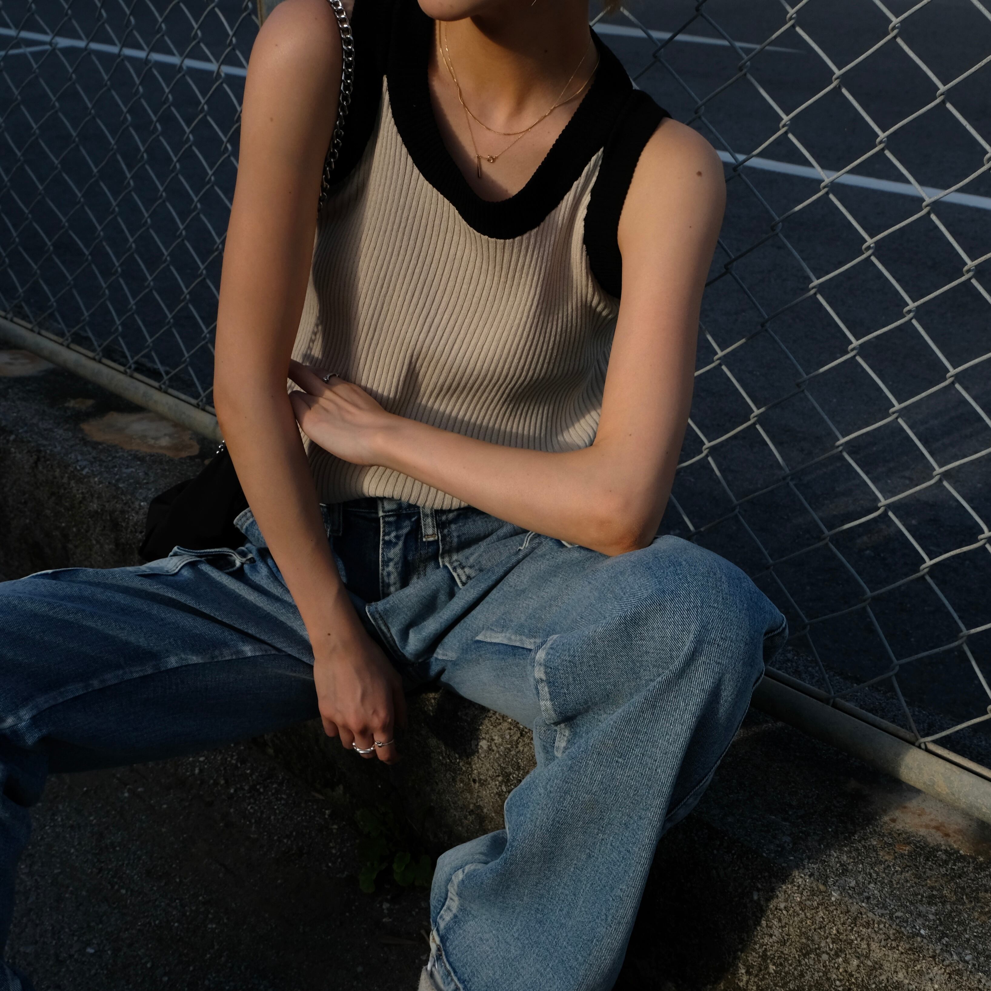 伸縮性がありリブ素材の柔らかな生地を使用しているので、ストレスフリーな着心地を感じられます。