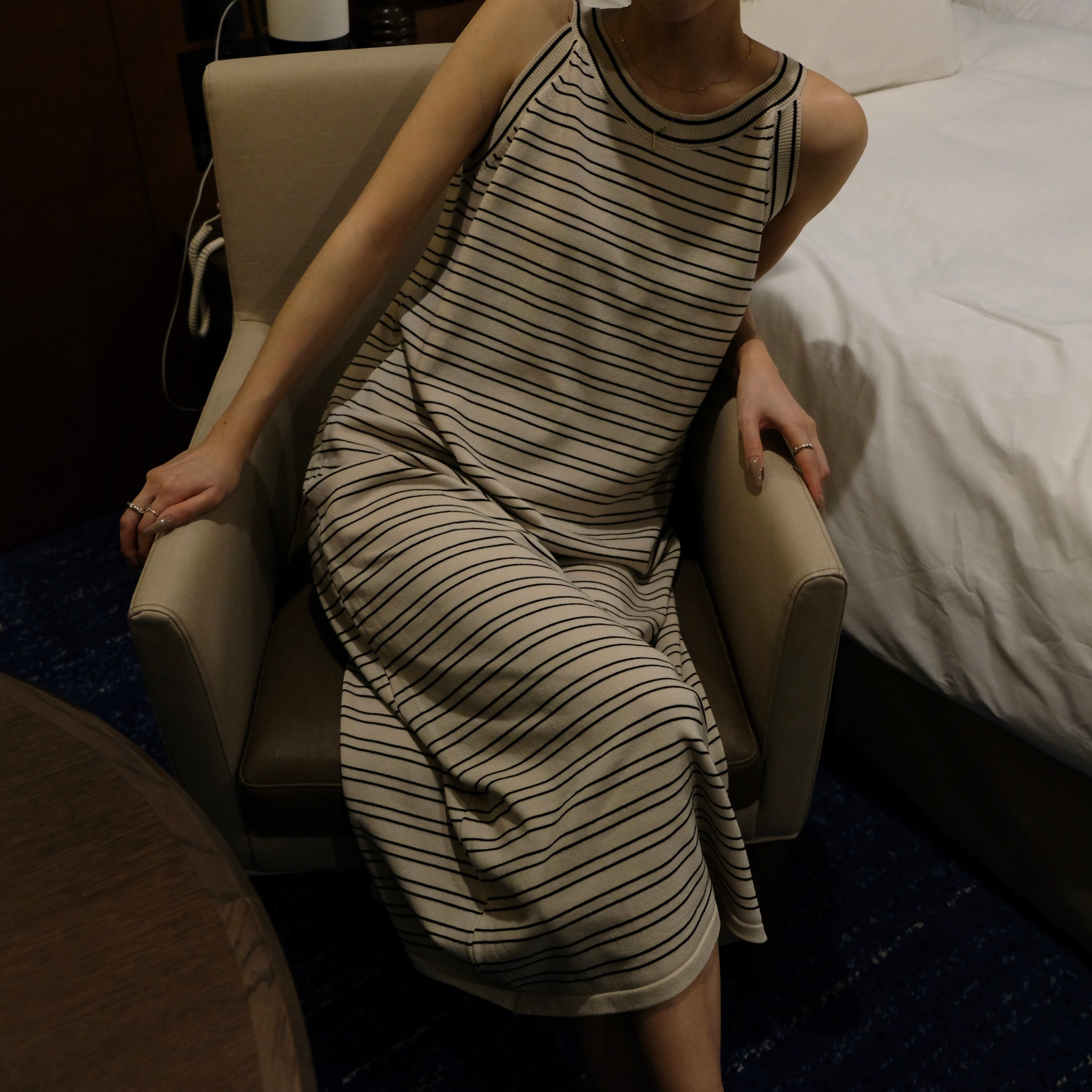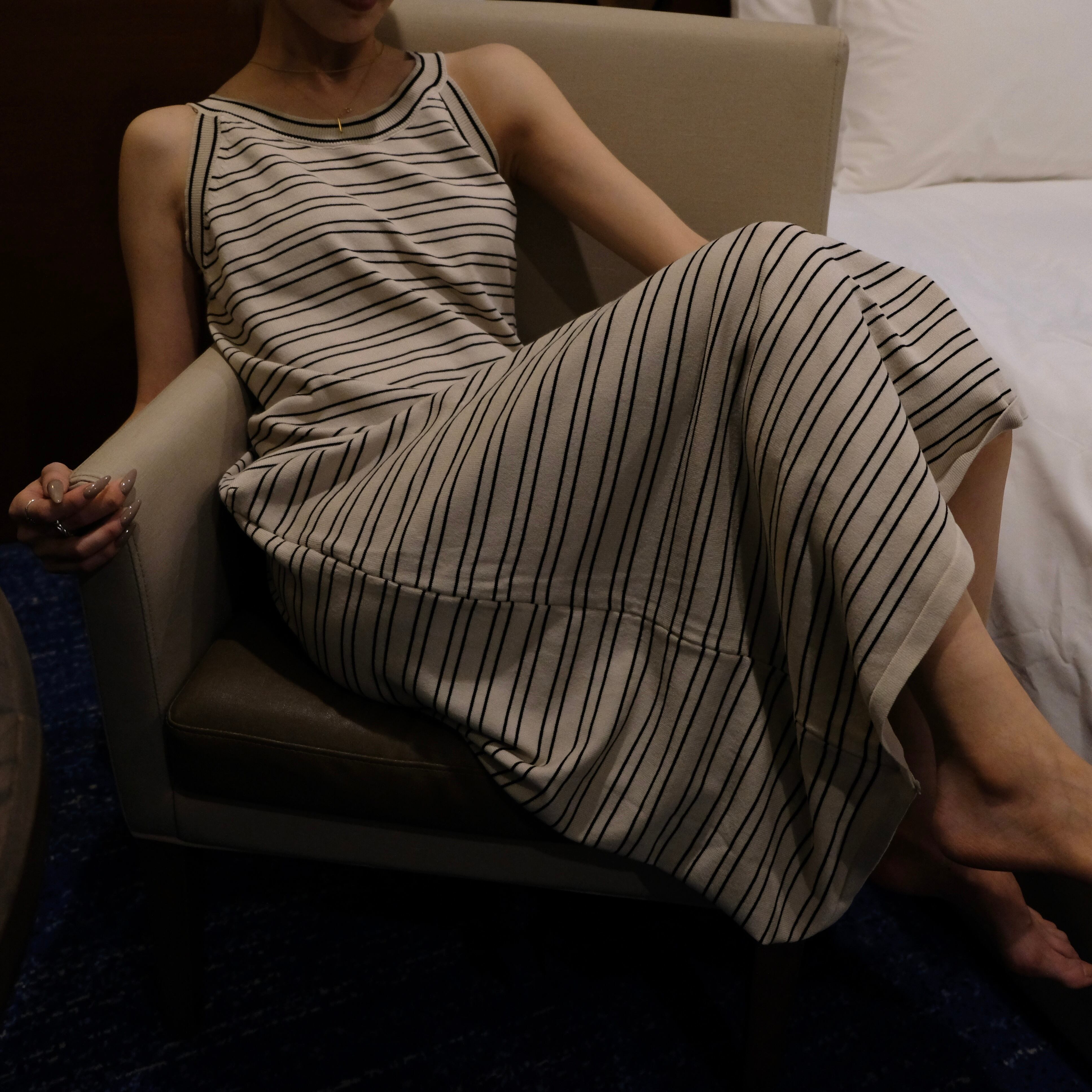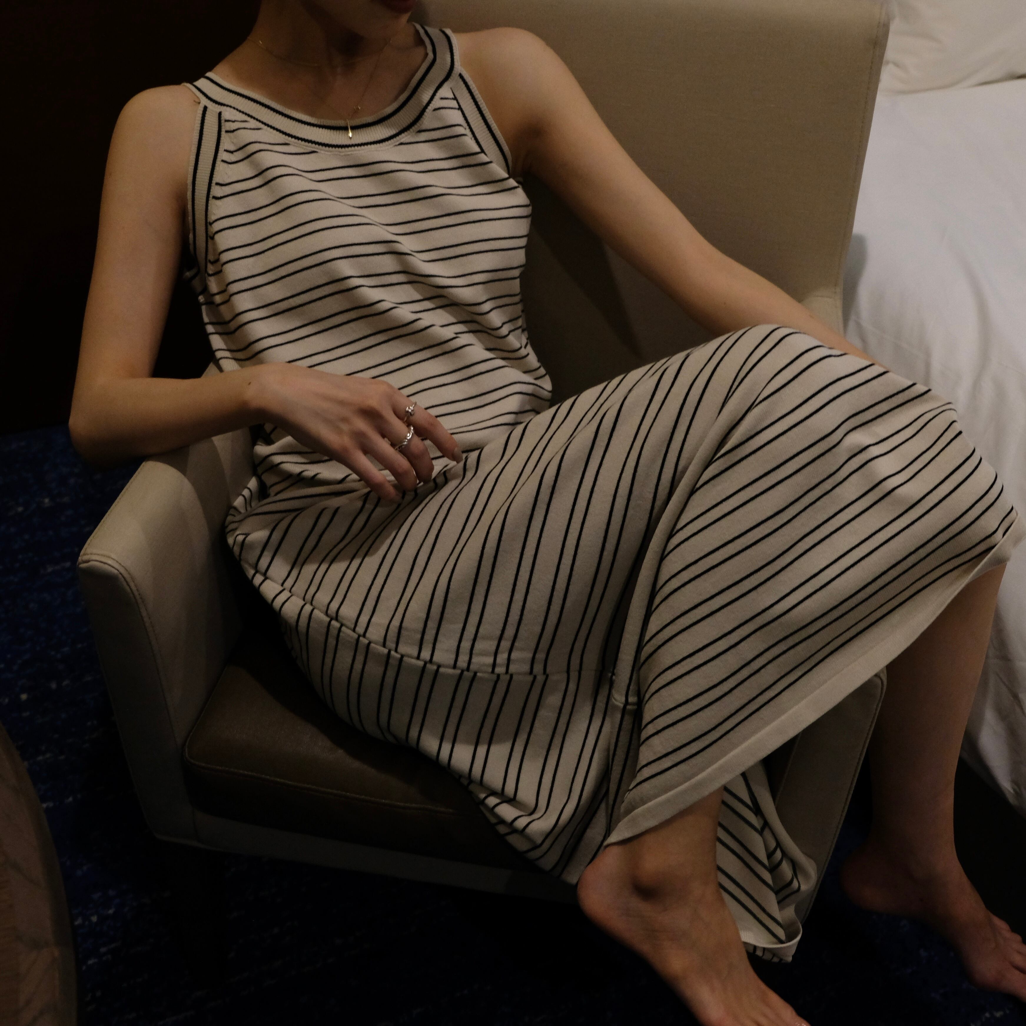 1枚で上品さとカジュアルムードを漂わせるニットワンピース。