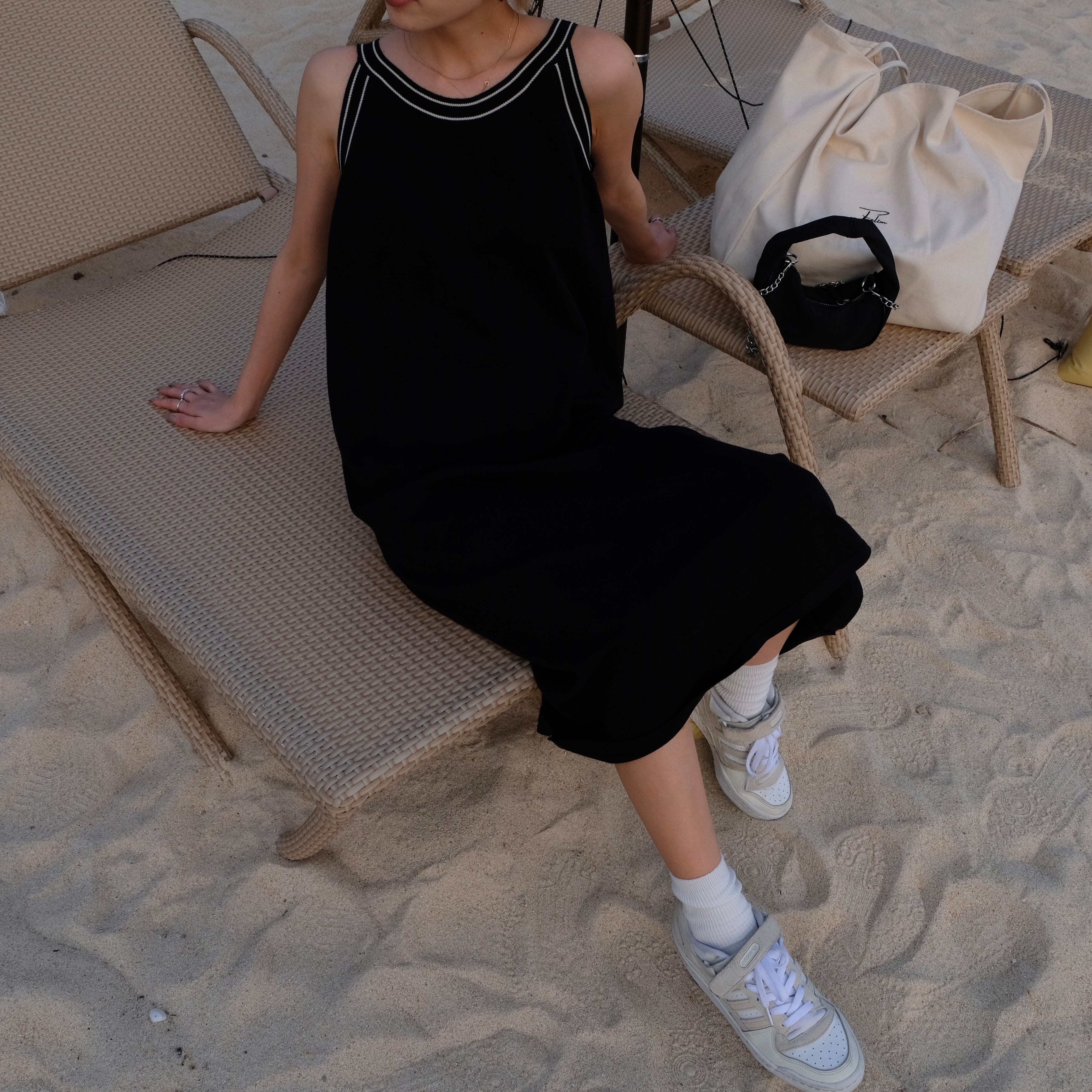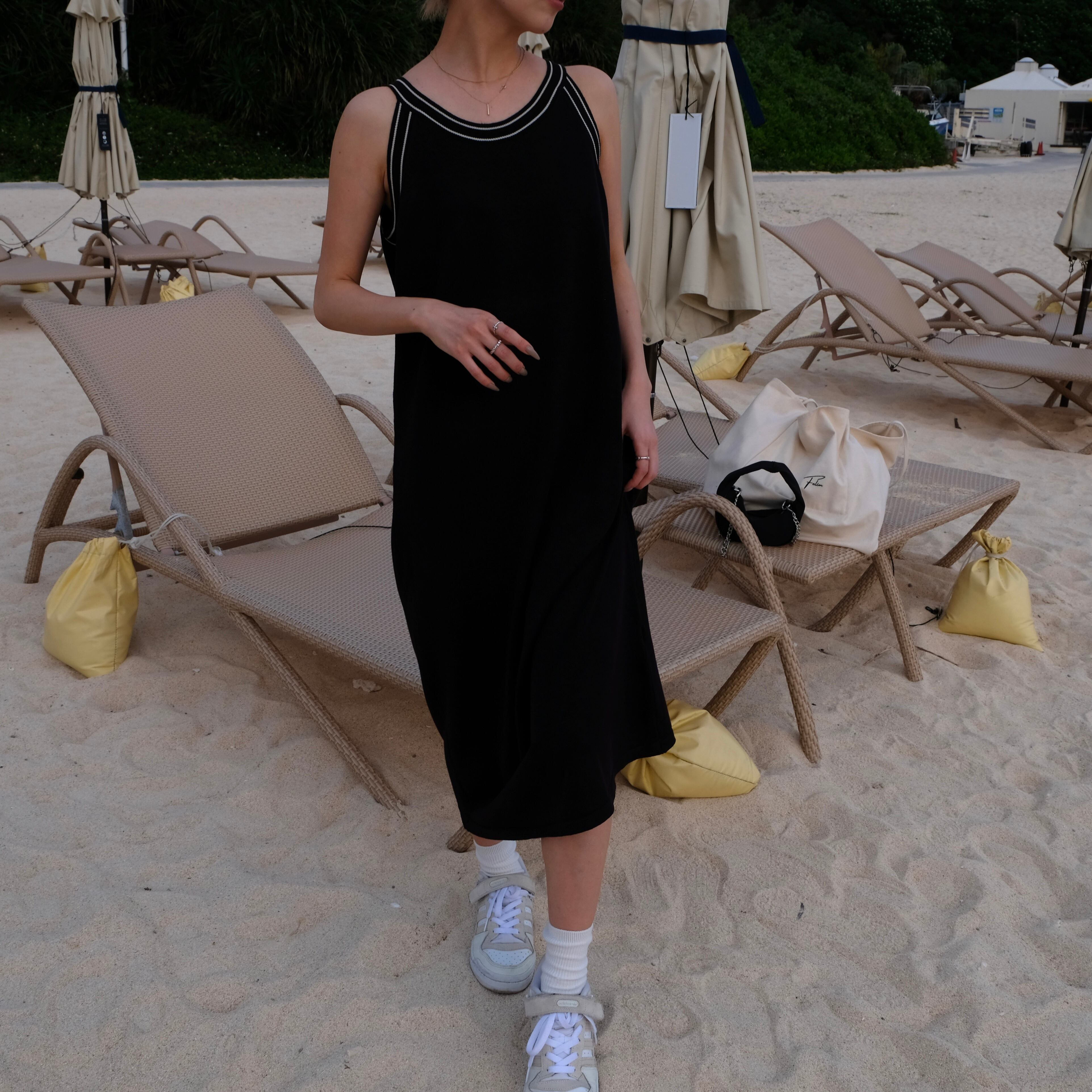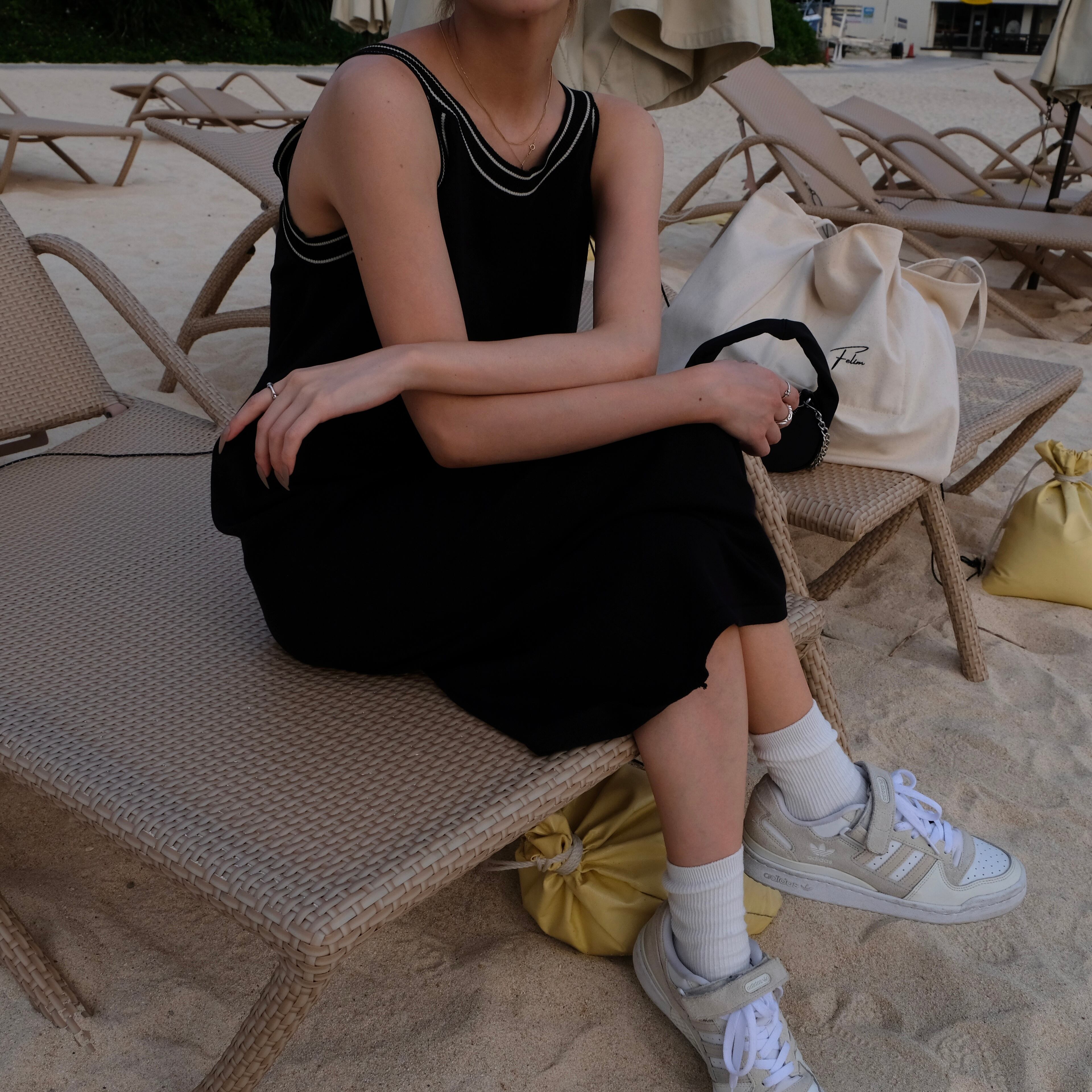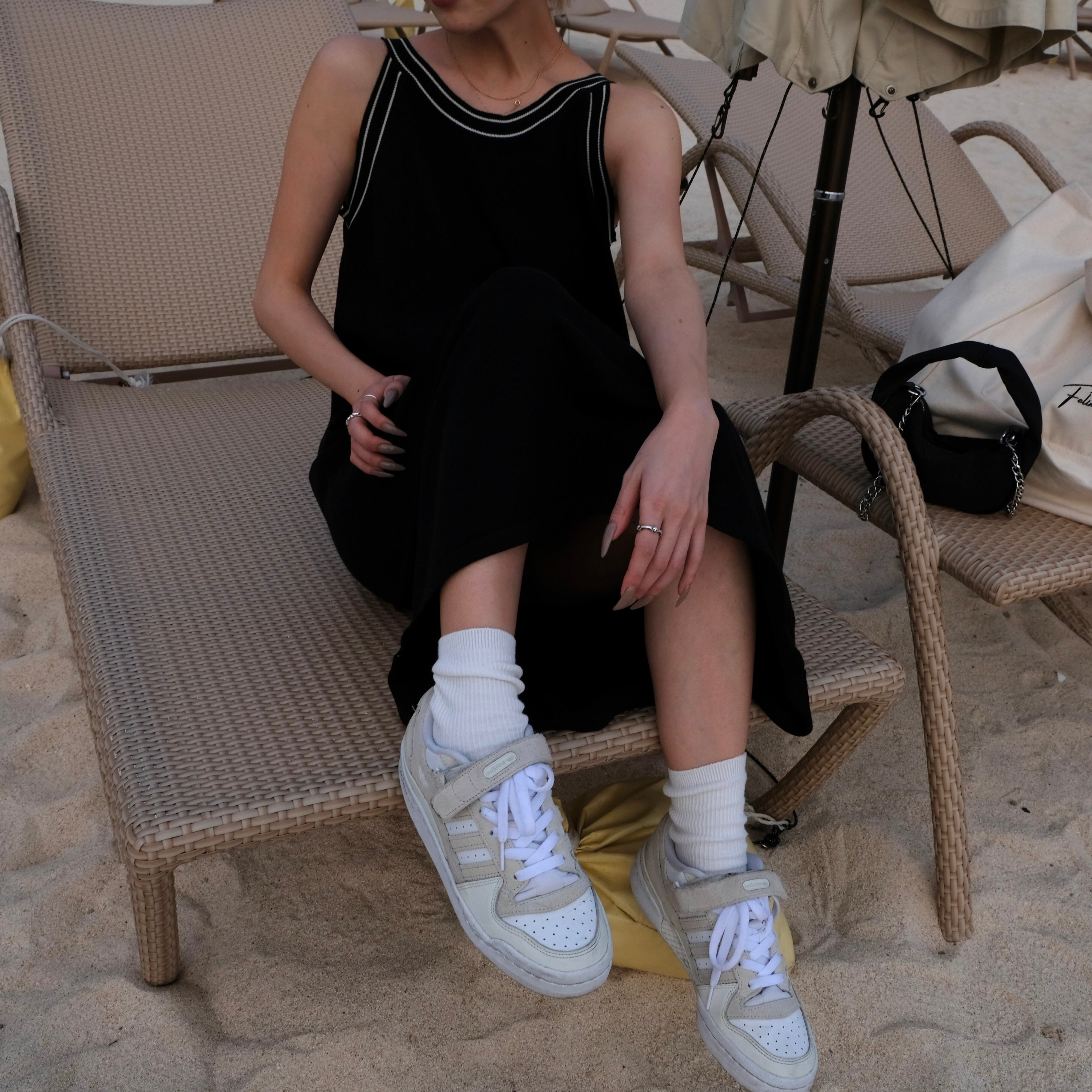 サンダル合わせの他にも、あえてスニーカー合わせでスポーティーさを加えるのもおすすめです。