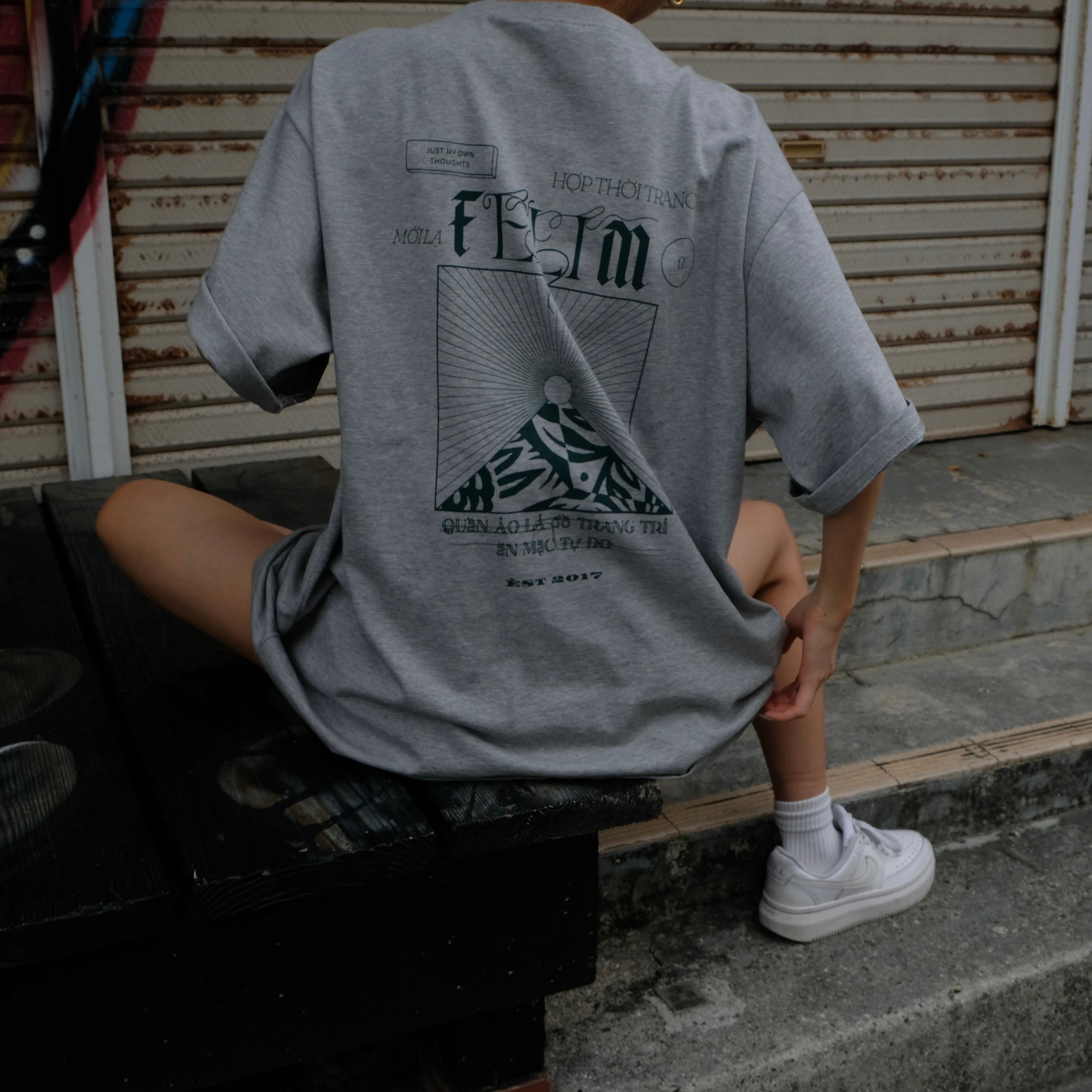古着のようなカラーリングにベトナム語を用いたインパクトのあるプリントを採用し、インアウトどちらで着用いただいても映える位置にプリントを設定しました。