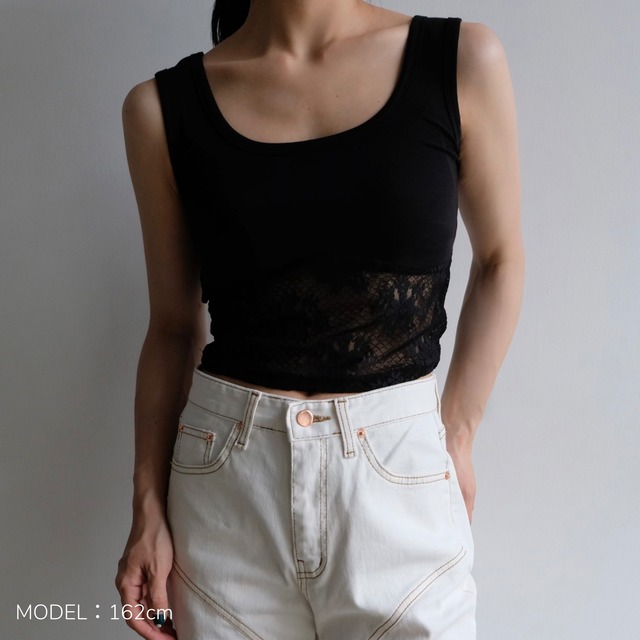 コンパクトでレースを使用したレディムード漂うタンクトップ。