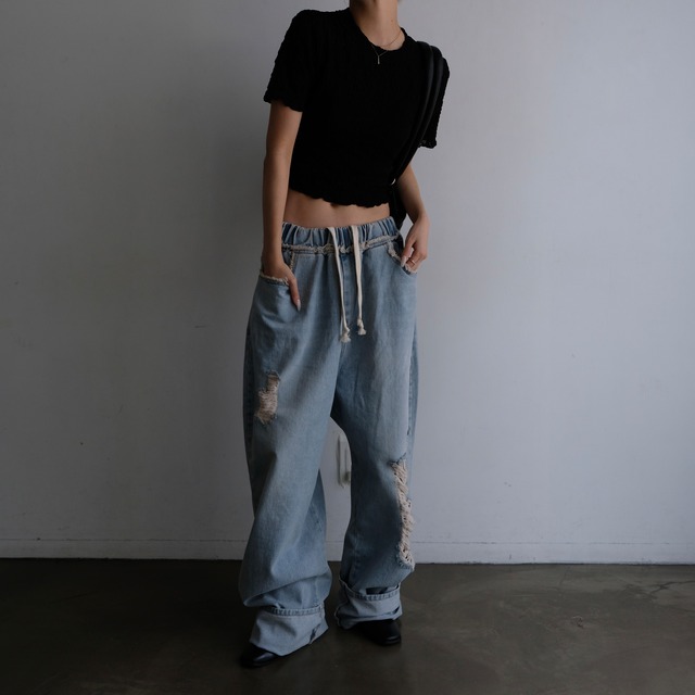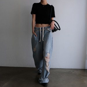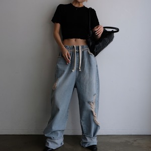 スウェット感覚で着用いただけるラフでルーズなデニムボトムが登場。