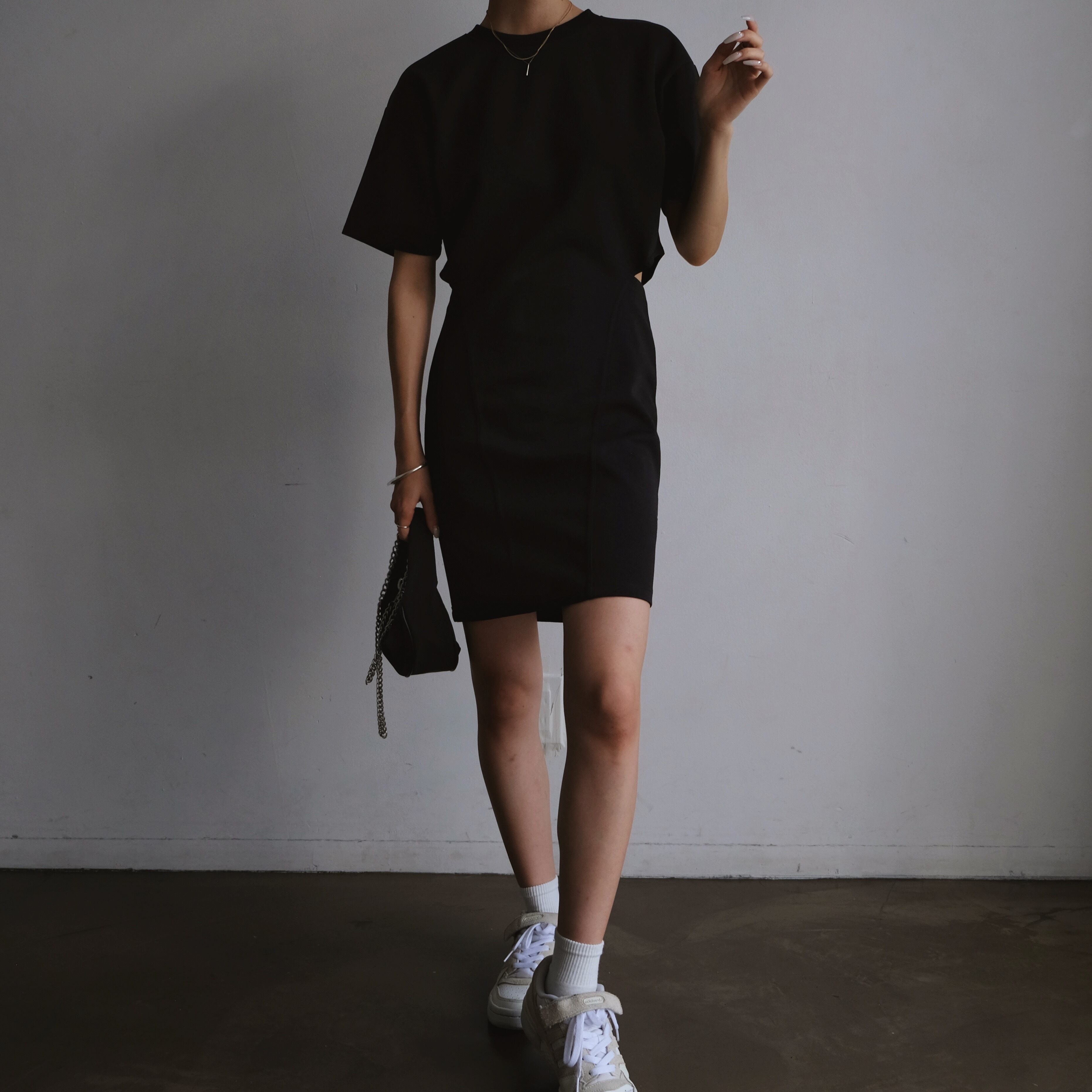 個性溢れるウエストカットで、トレンドファッションに溶け込むワンピース。