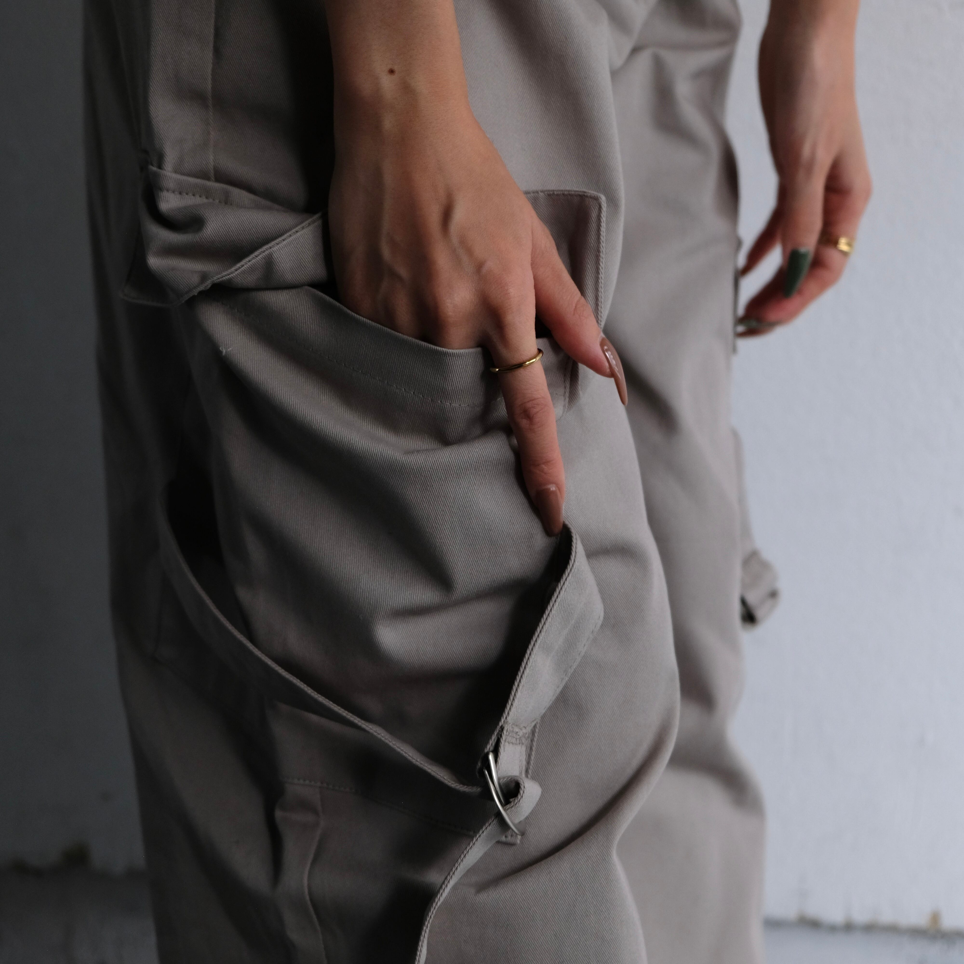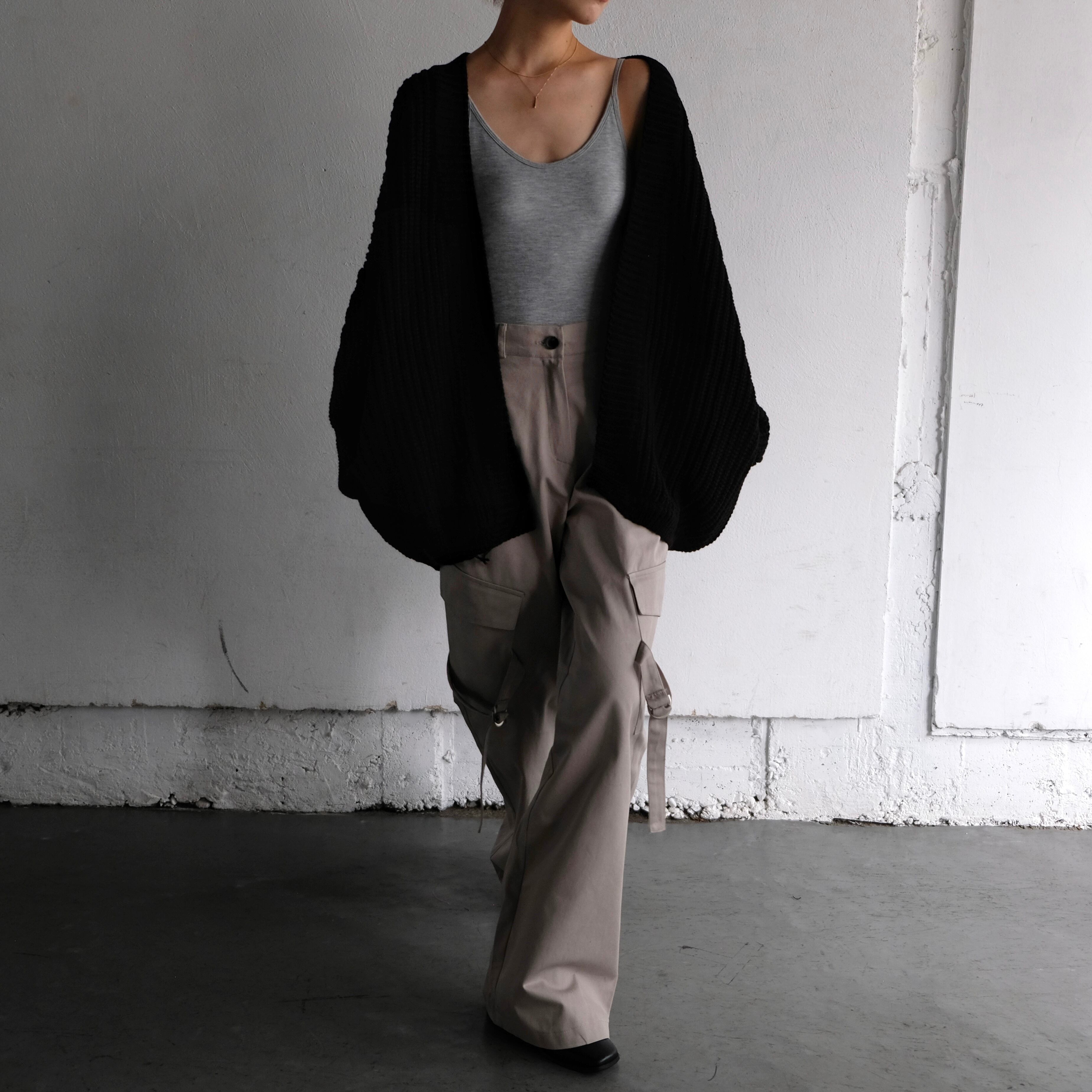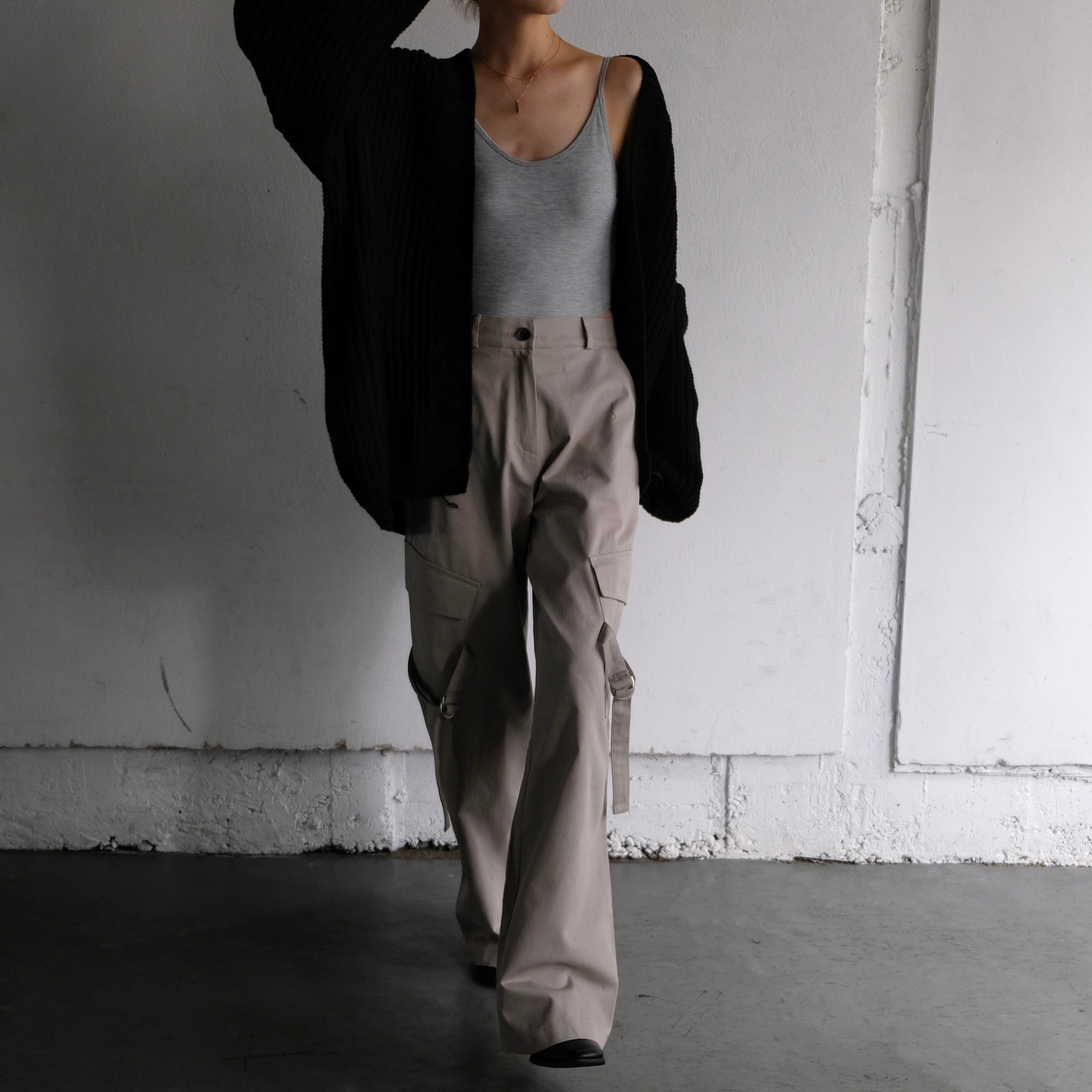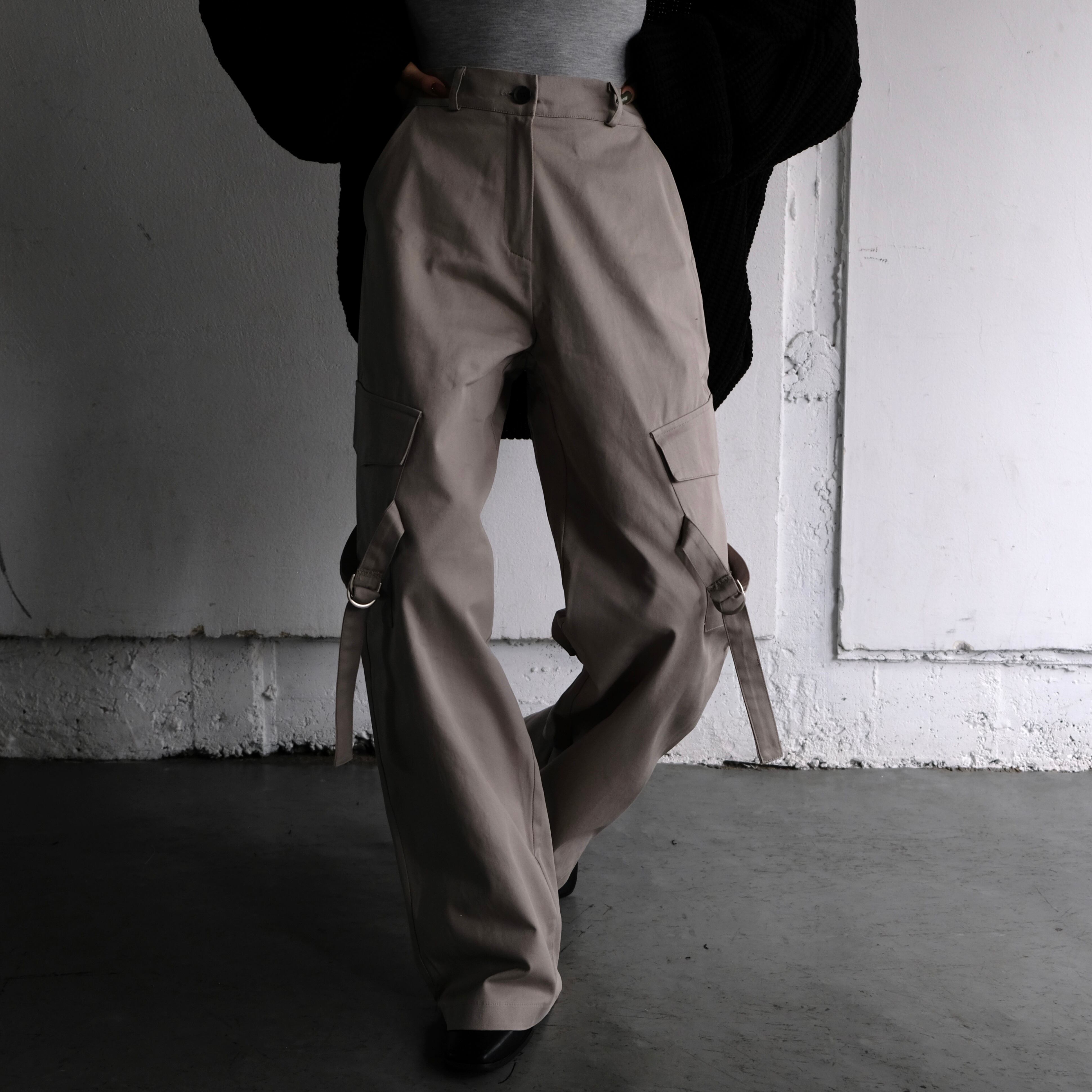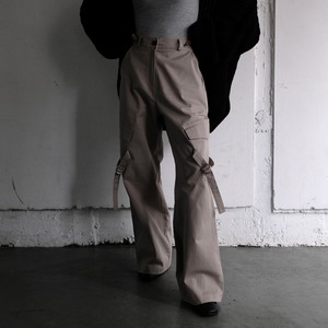 しっかり締めるとベルボトムのようなシルエットになり綺麗めな印象に、垂らすように緩く締めるとワイドシルエットでカジュアルストリートな雰囲気に仕上がります。