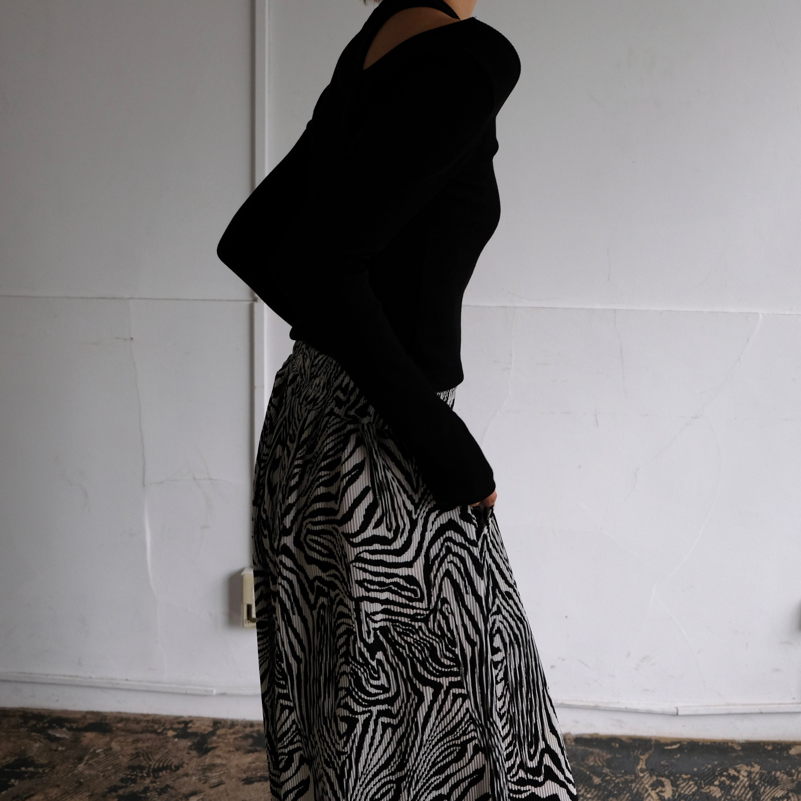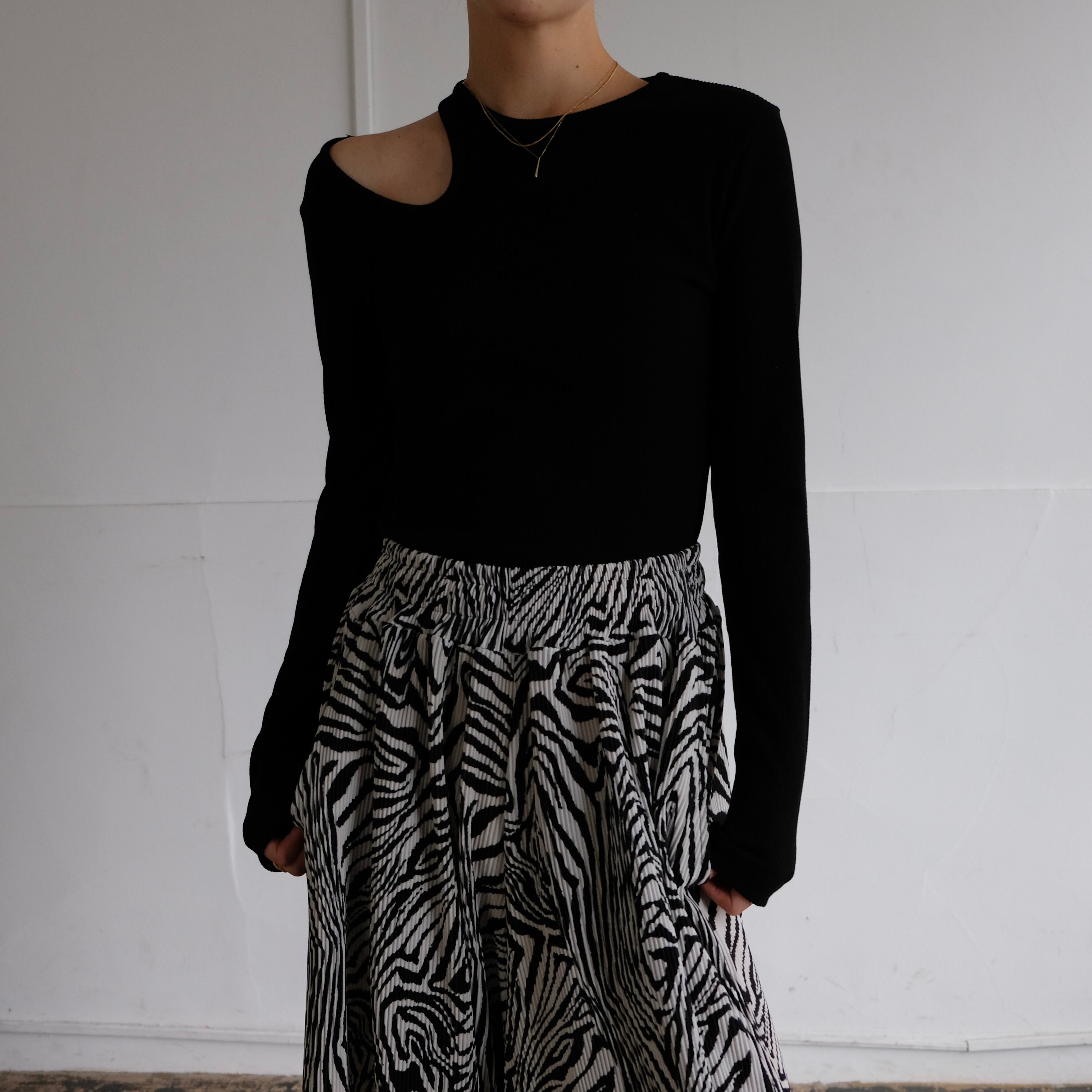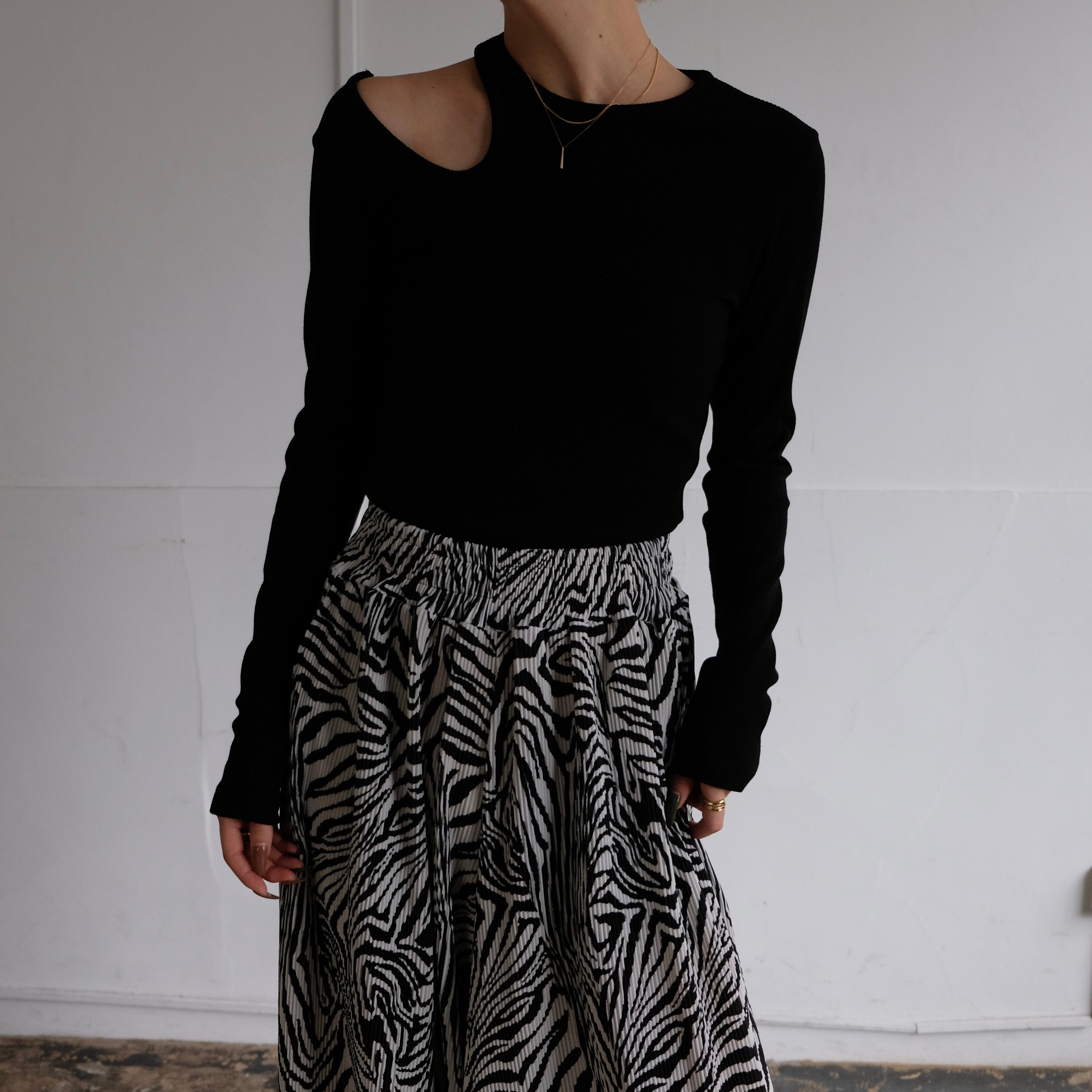 リブ素材で伸縮性たっぷりのデザイントップス。