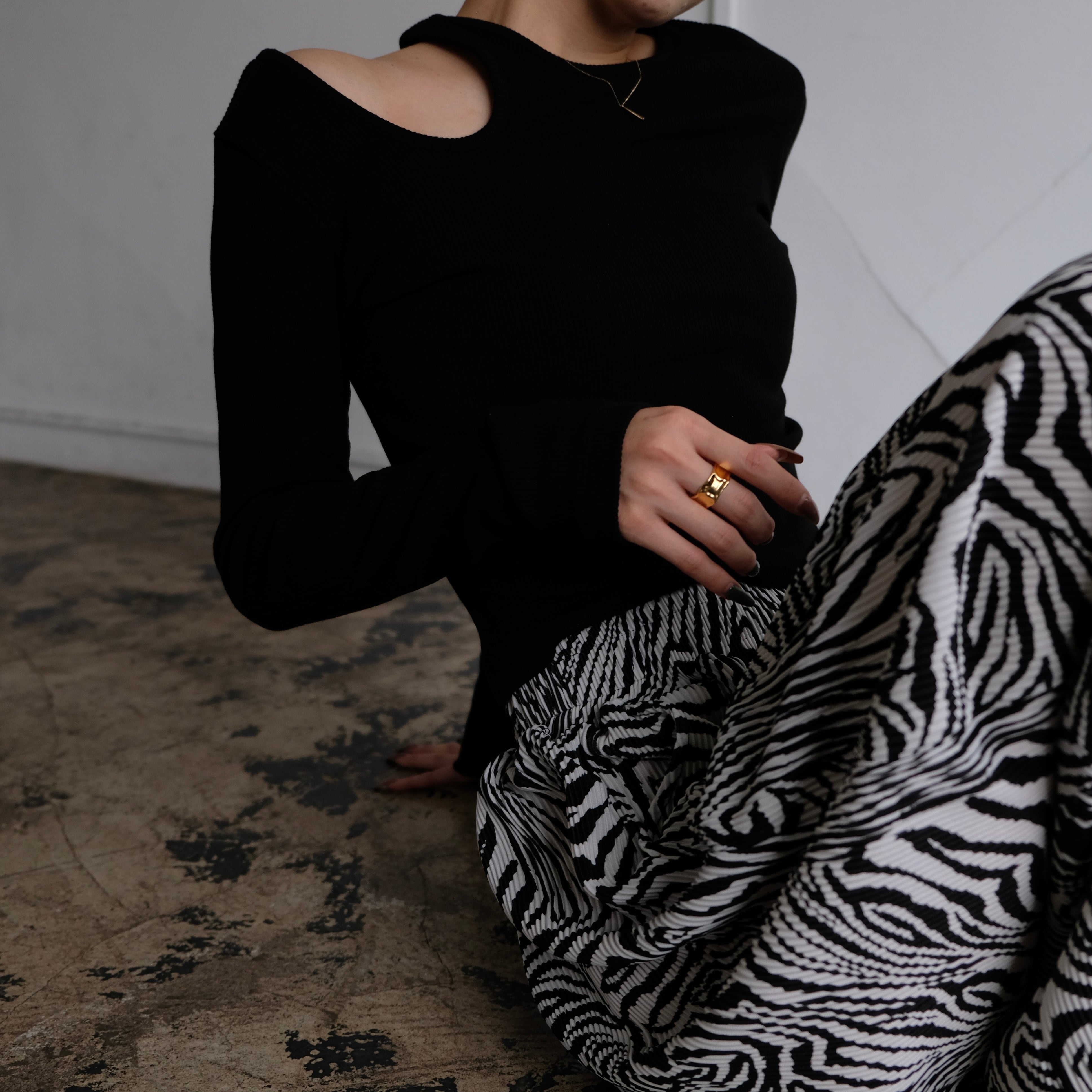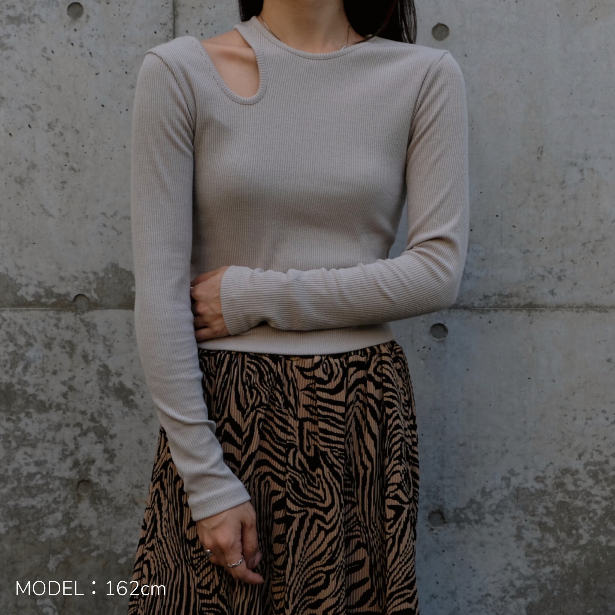 肩の部分がU型にカットされており、ナチュラルな肌見せと抜けが出るので1枚でも抜群の雰囲気が出ます。