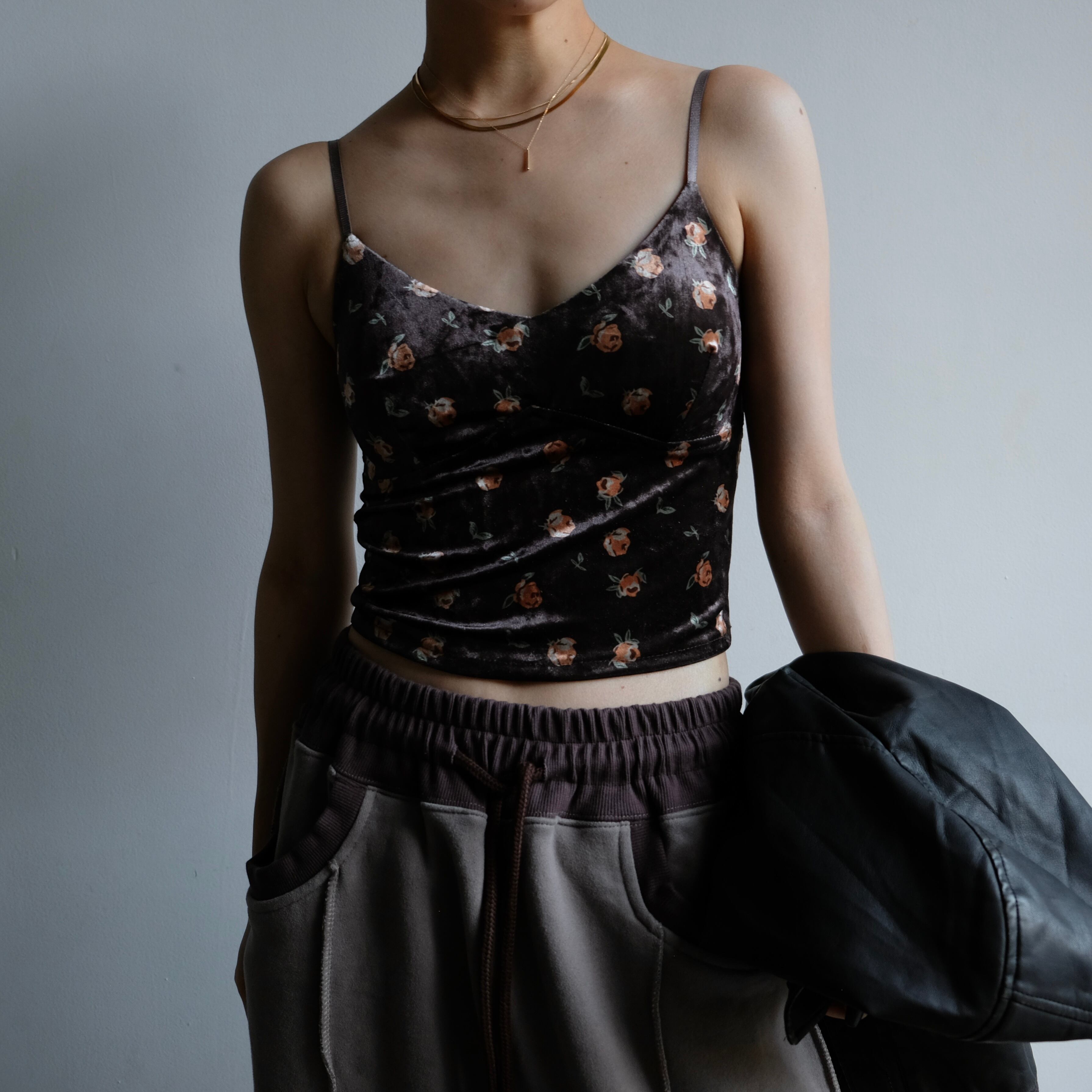 柔らかい肌触りで秋らしいベロア素材のパッドインキャミ。