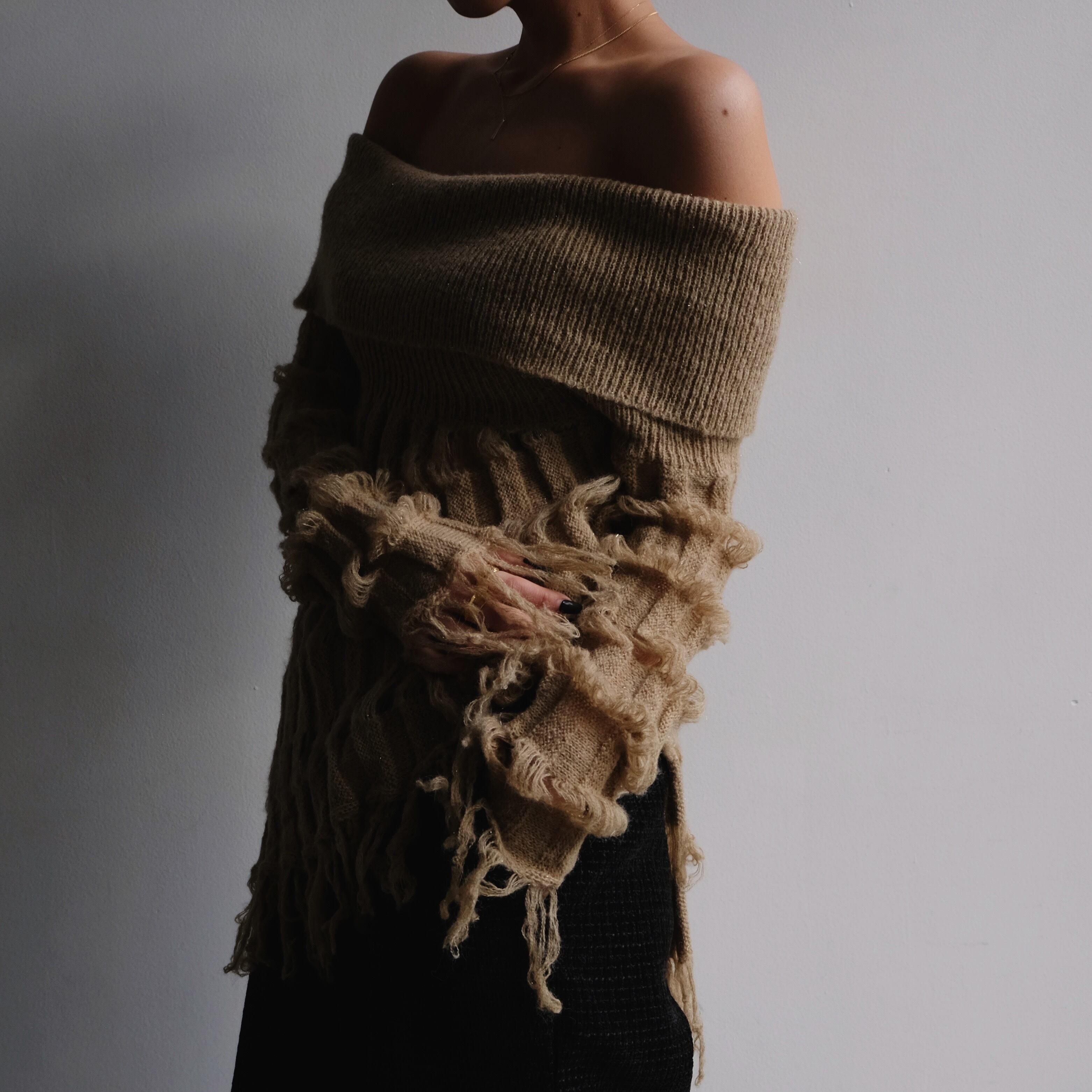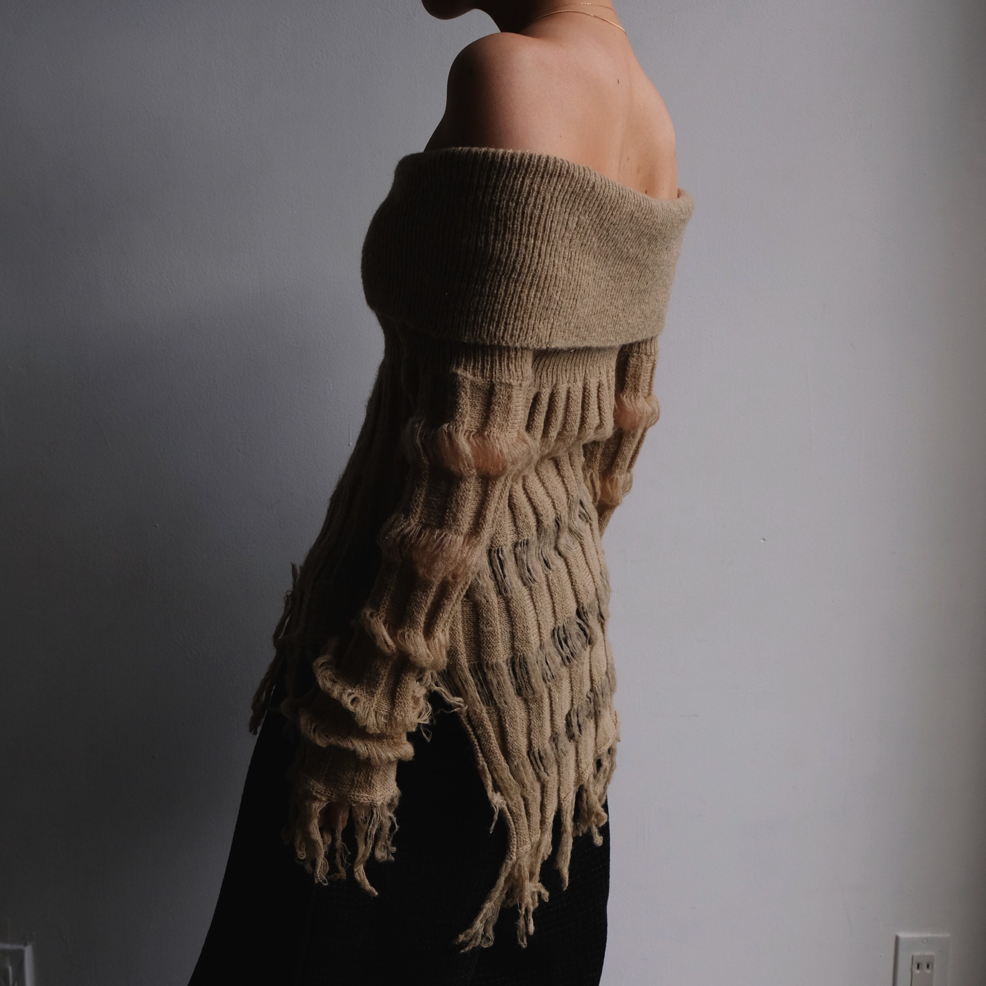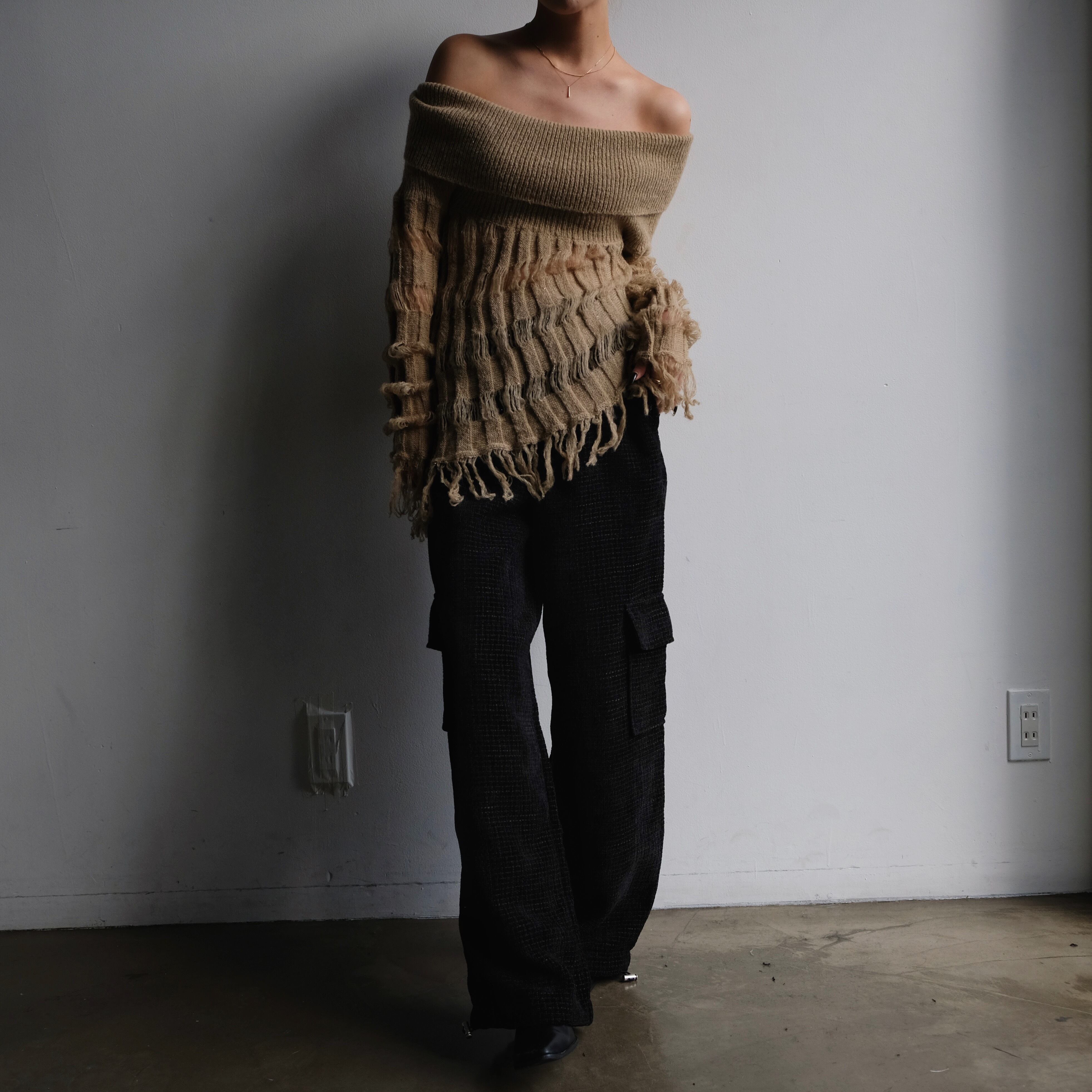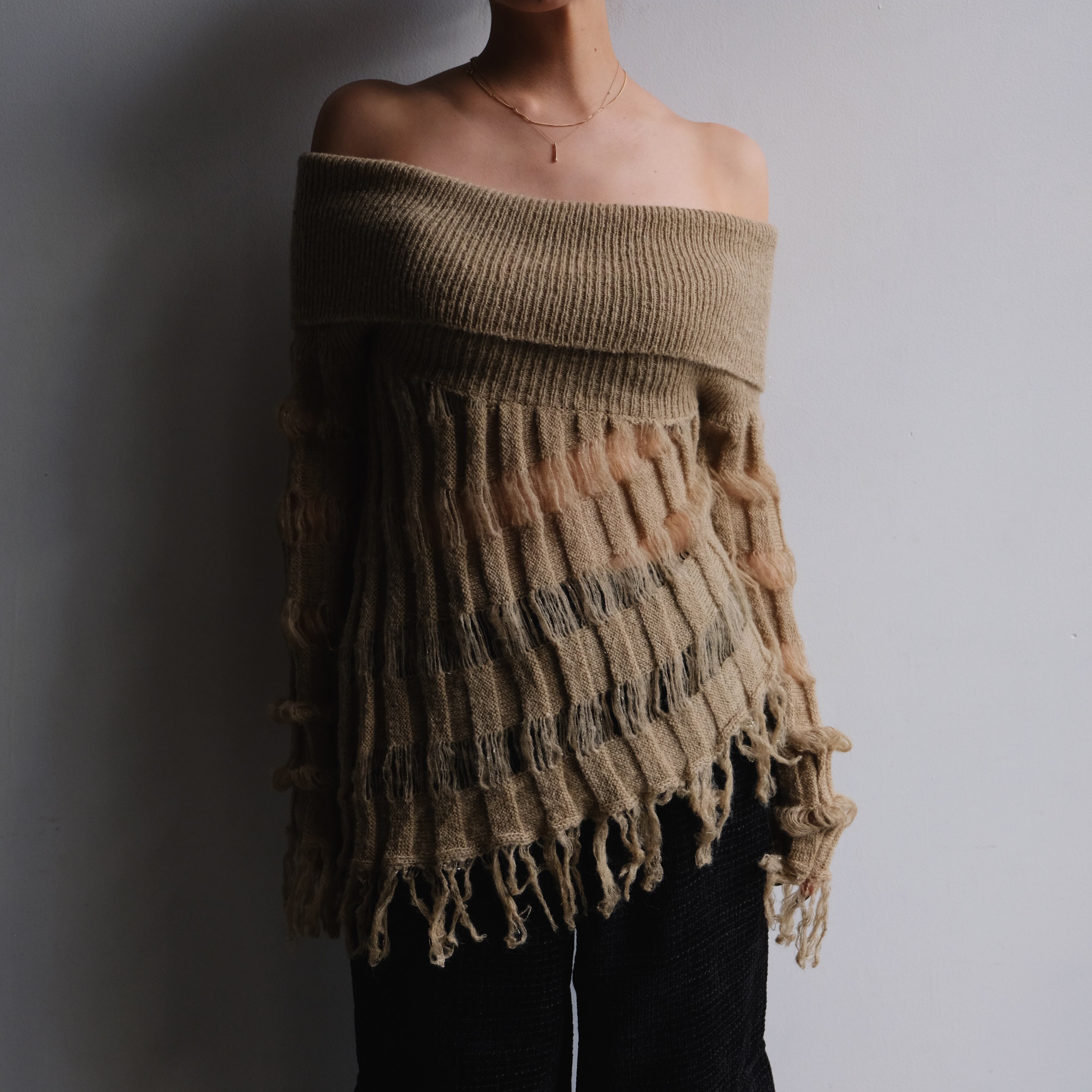ざっくりと大胆な着こなしが似合うオフショルダーニット。