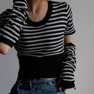 コーデの主役になること間違いなしのアームウォーマー付きニット。