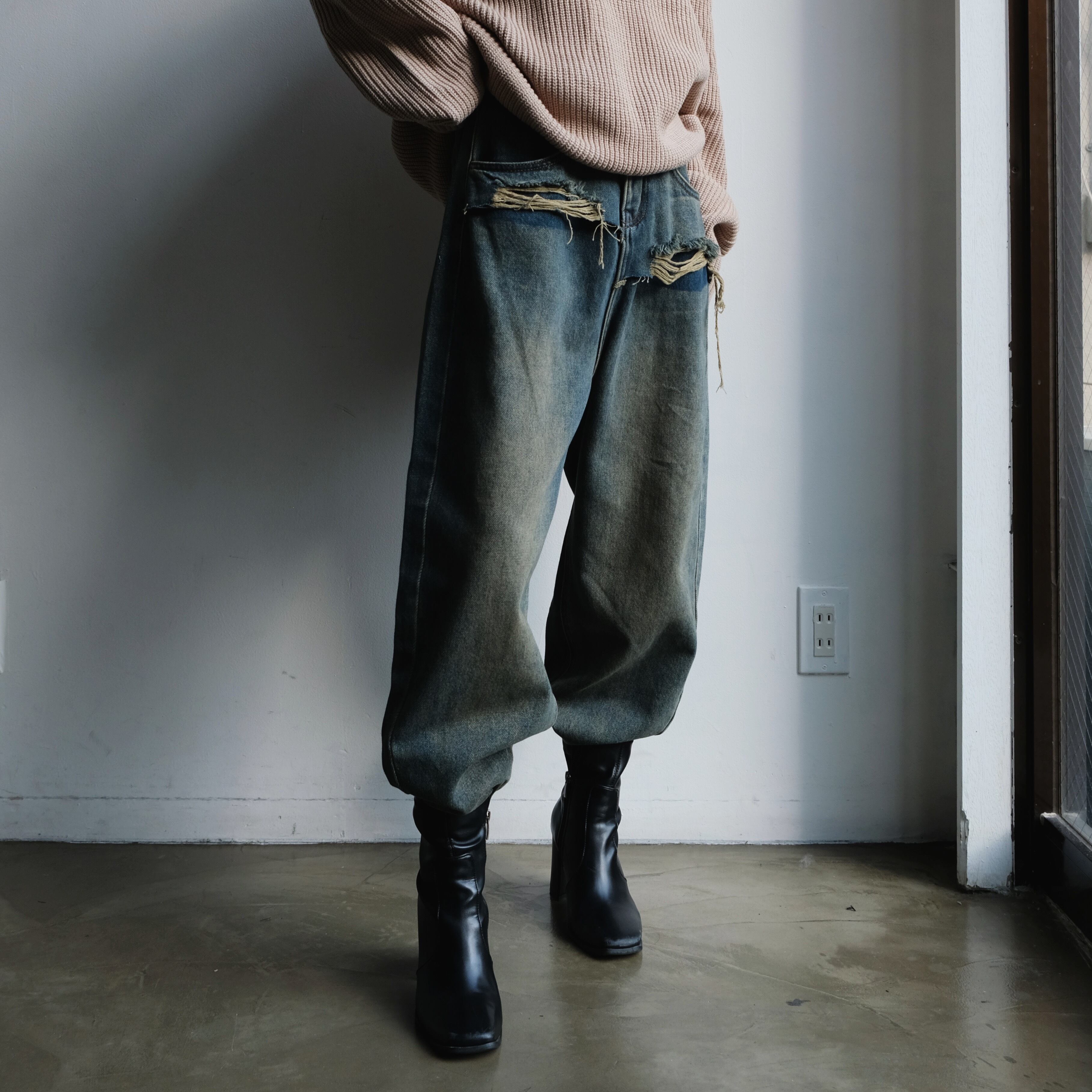本格的なダメージ加工でカジュアル感のあるデニムボトム。