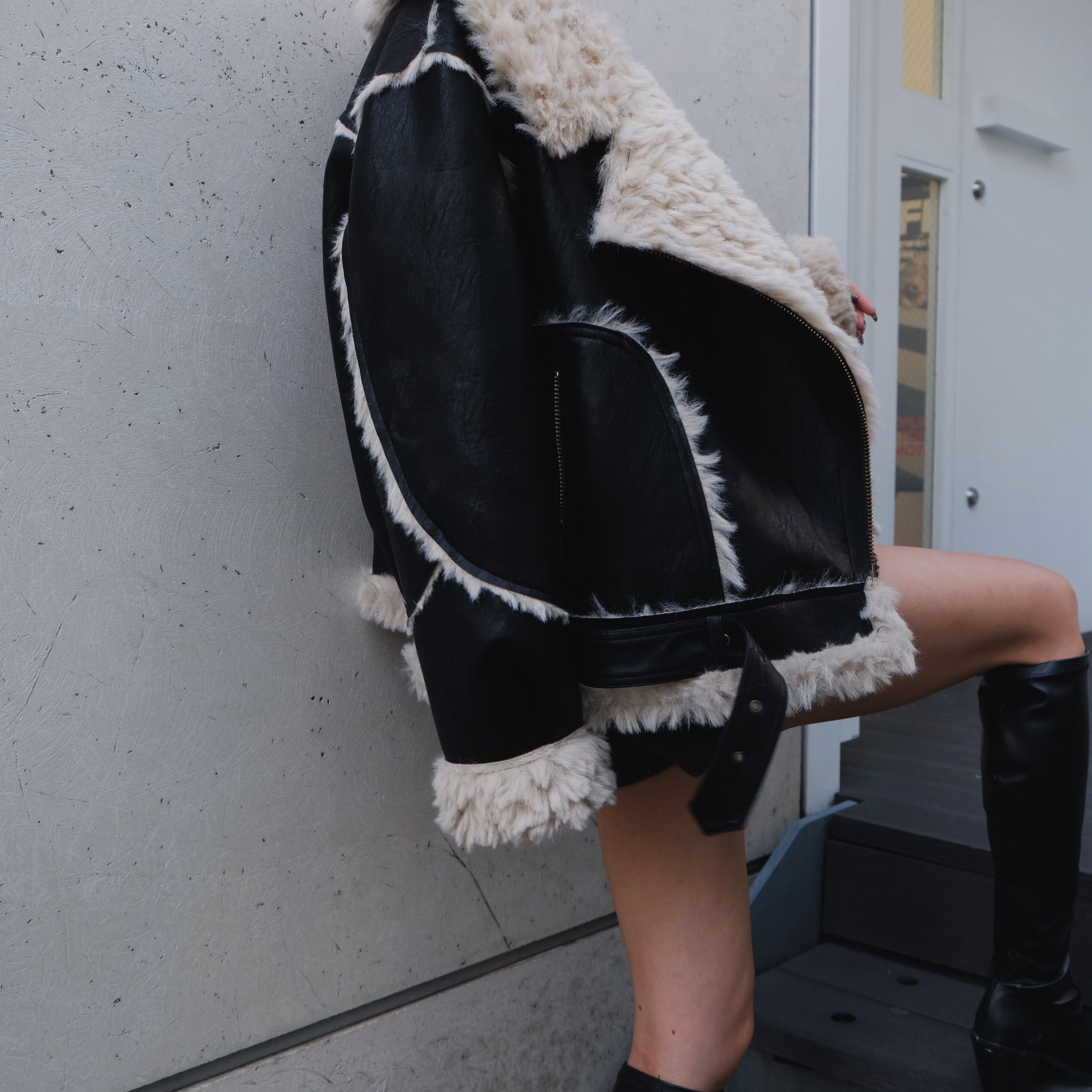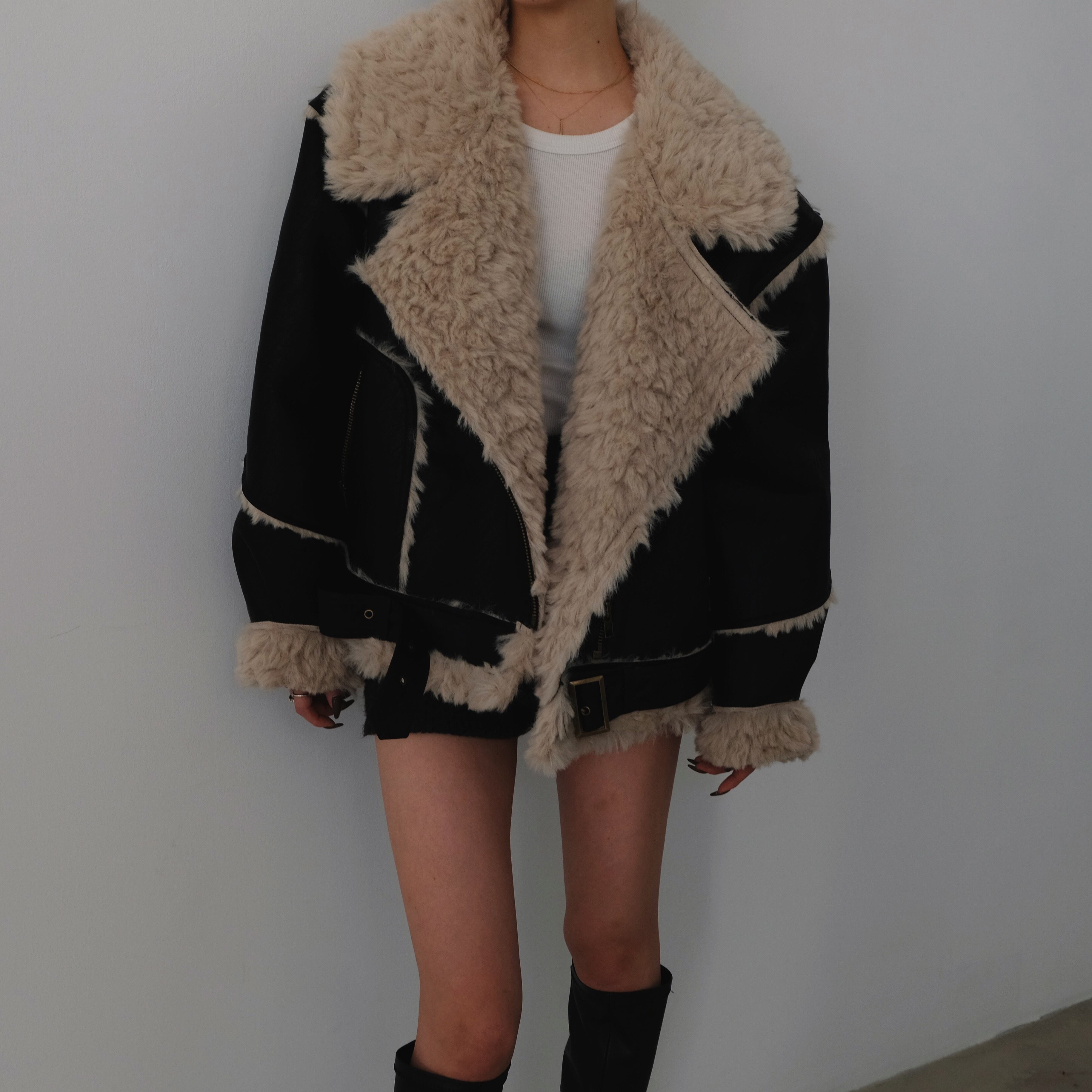 ルーズなサイズ感に大きな衿のビッグカラーが特徴的なムートンジャケット。