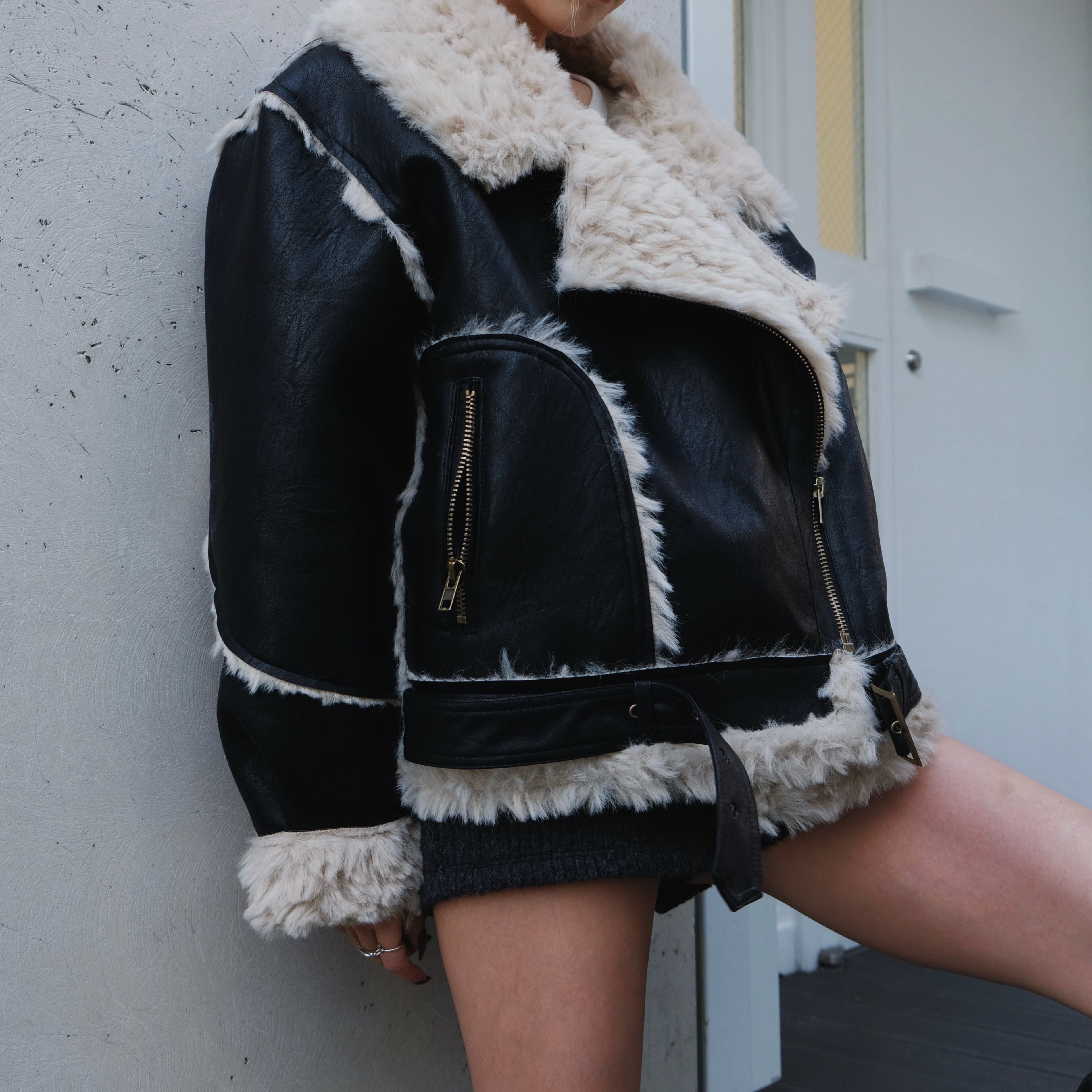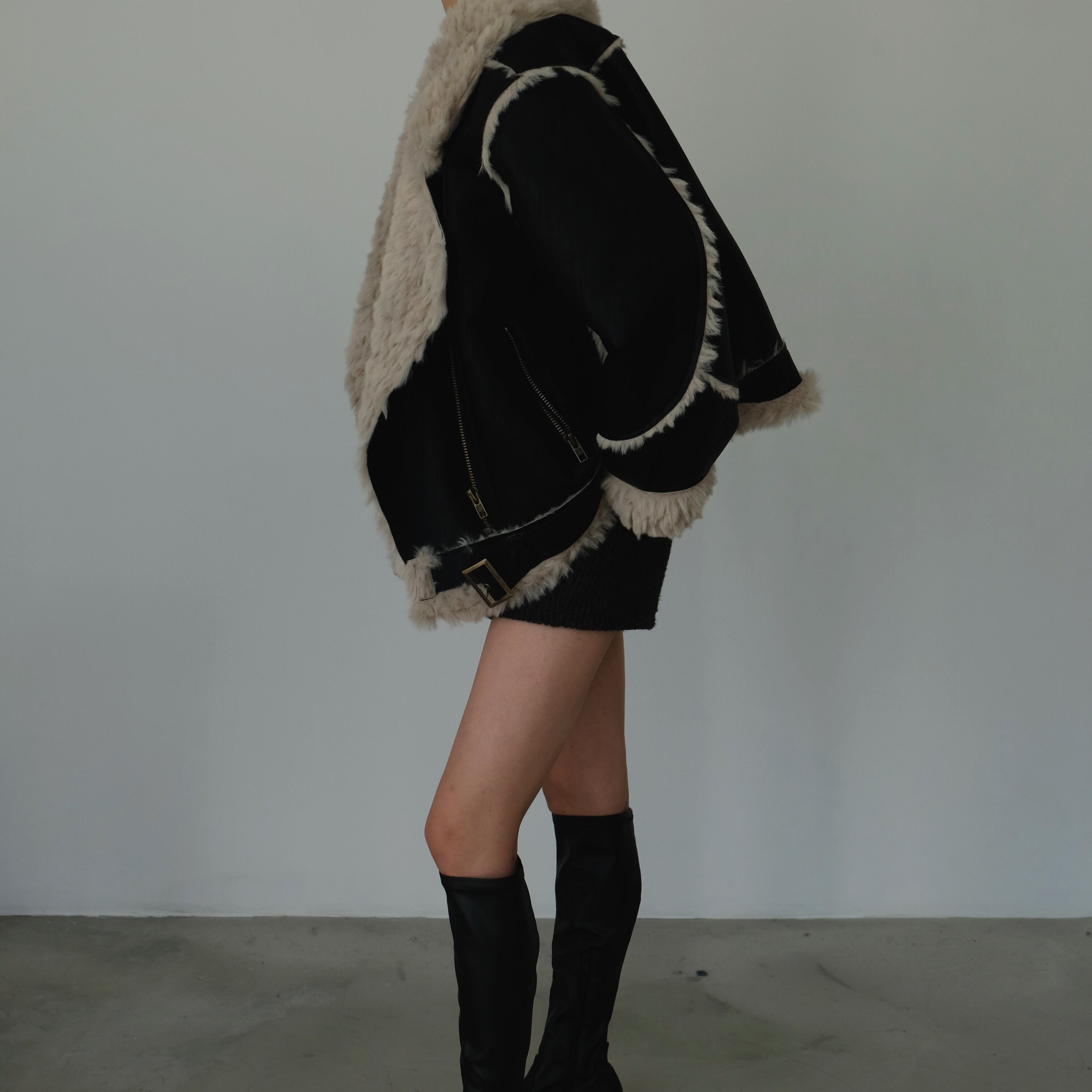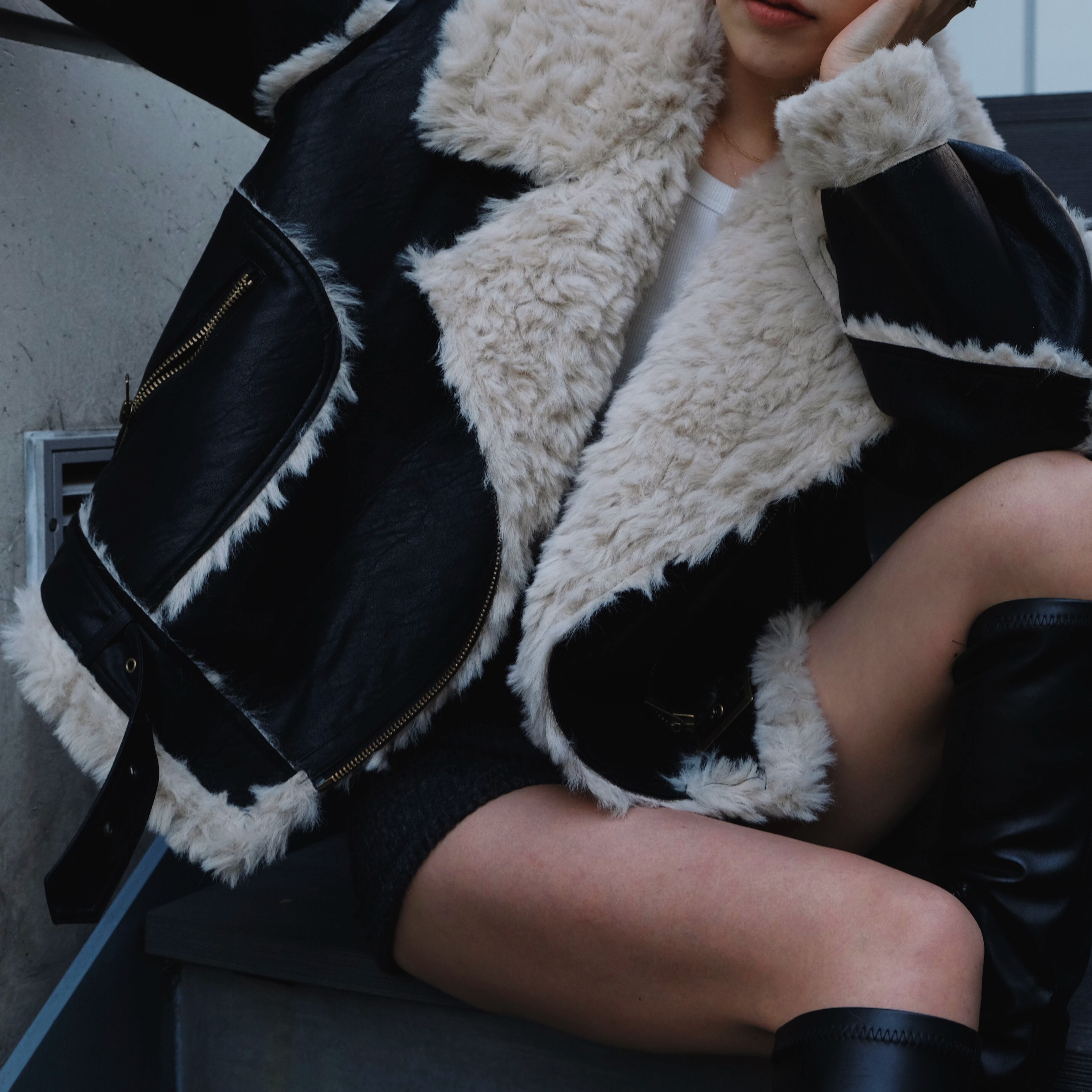 メンズライクになりがちなムートンジャケットですが、裏地だけでなく袖やラインまで全てファー素材を使用しておりますので、女性らしく着用いただけるのもポイント。