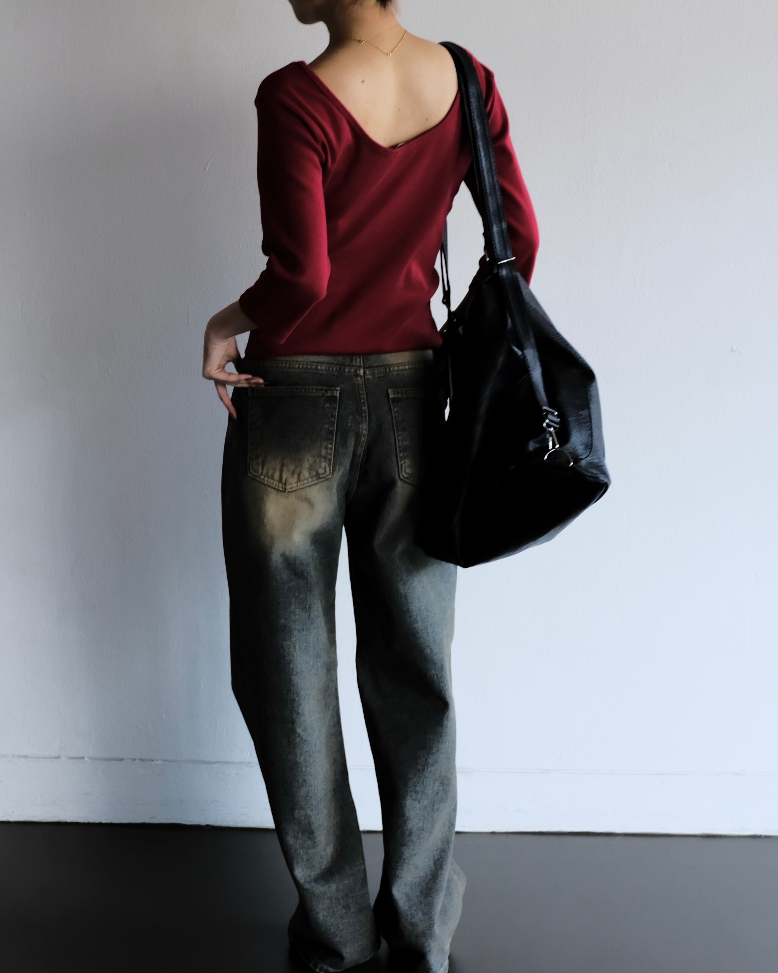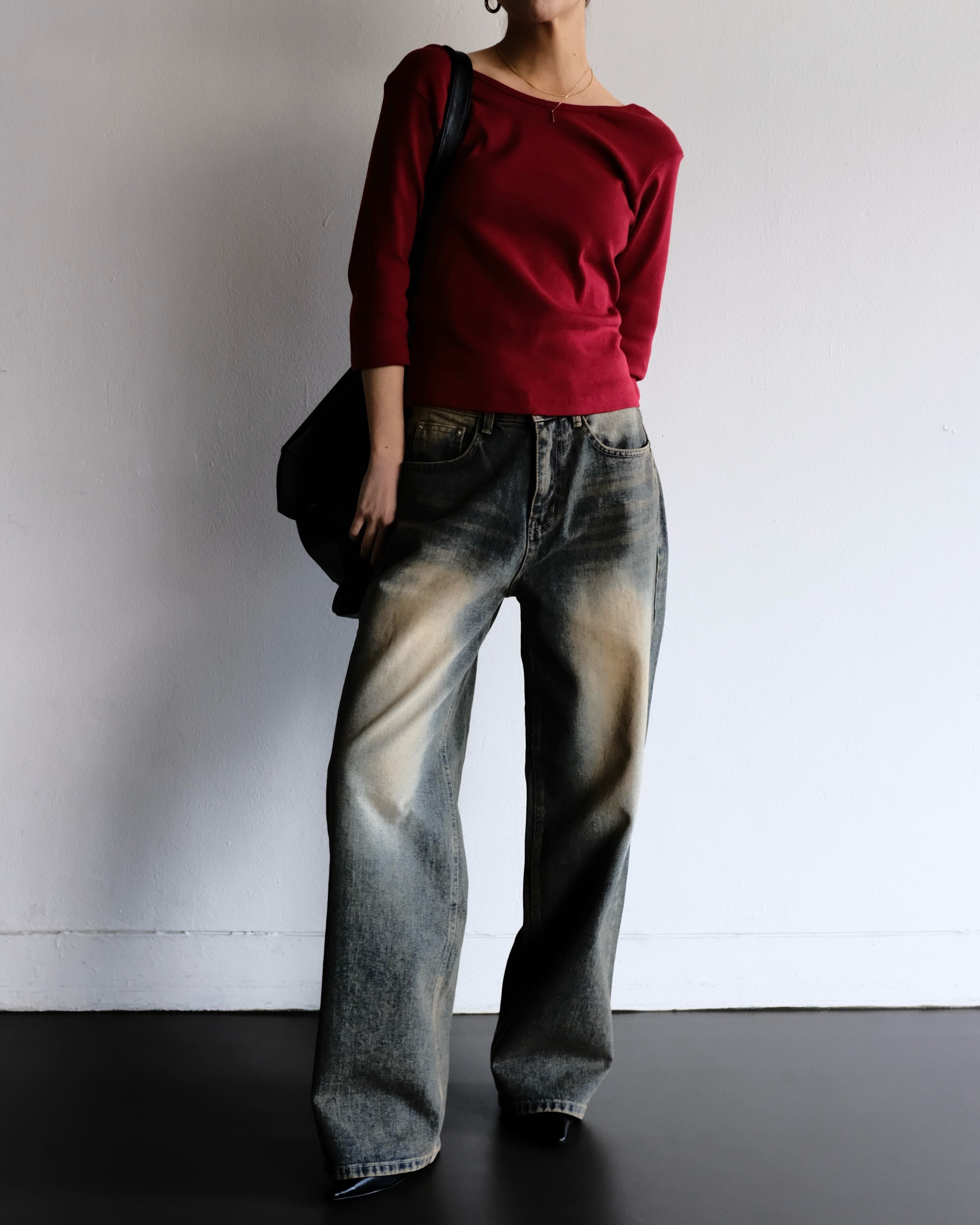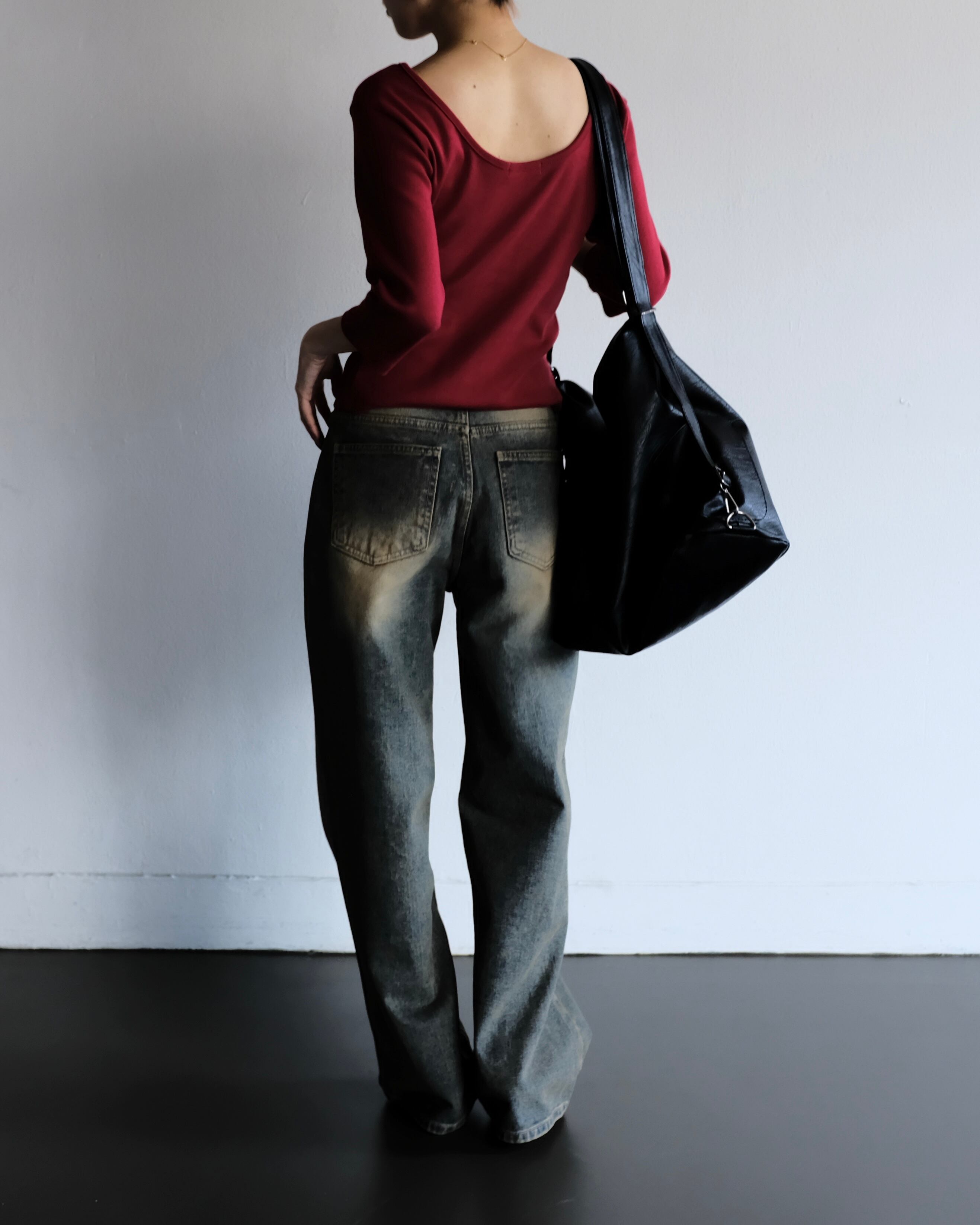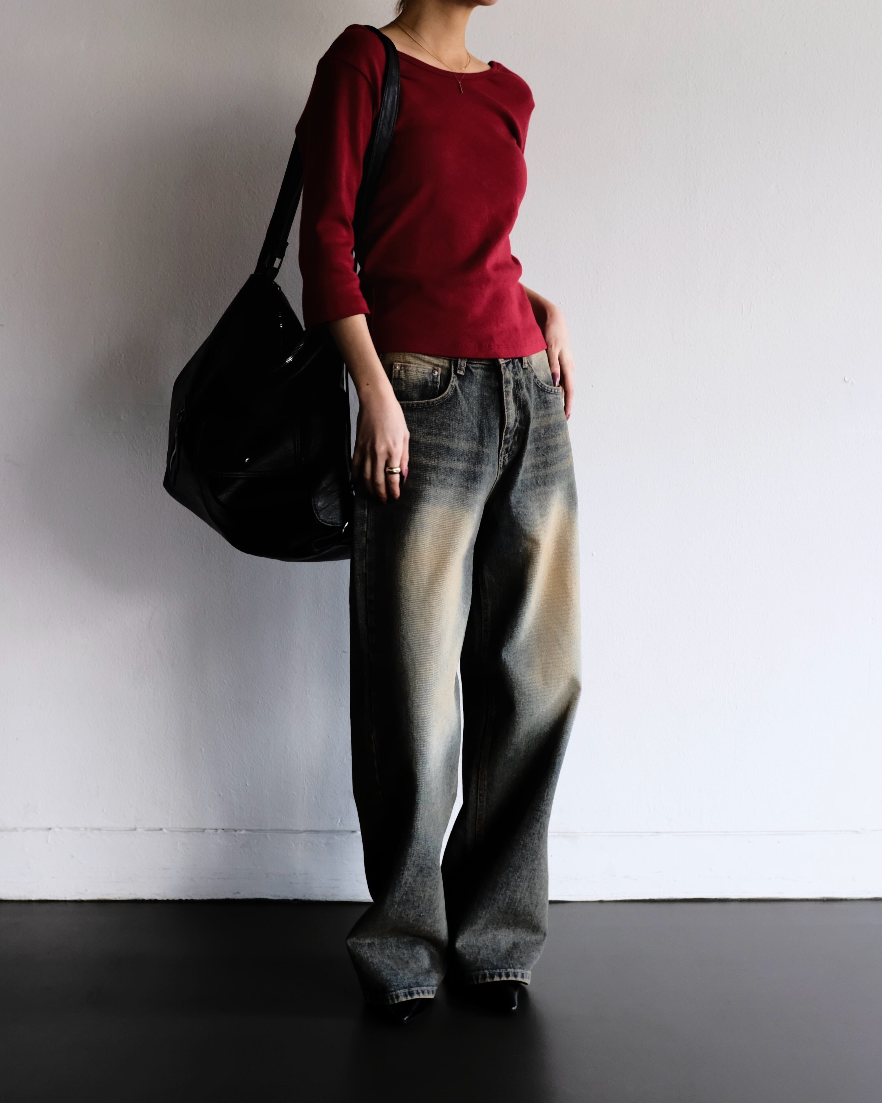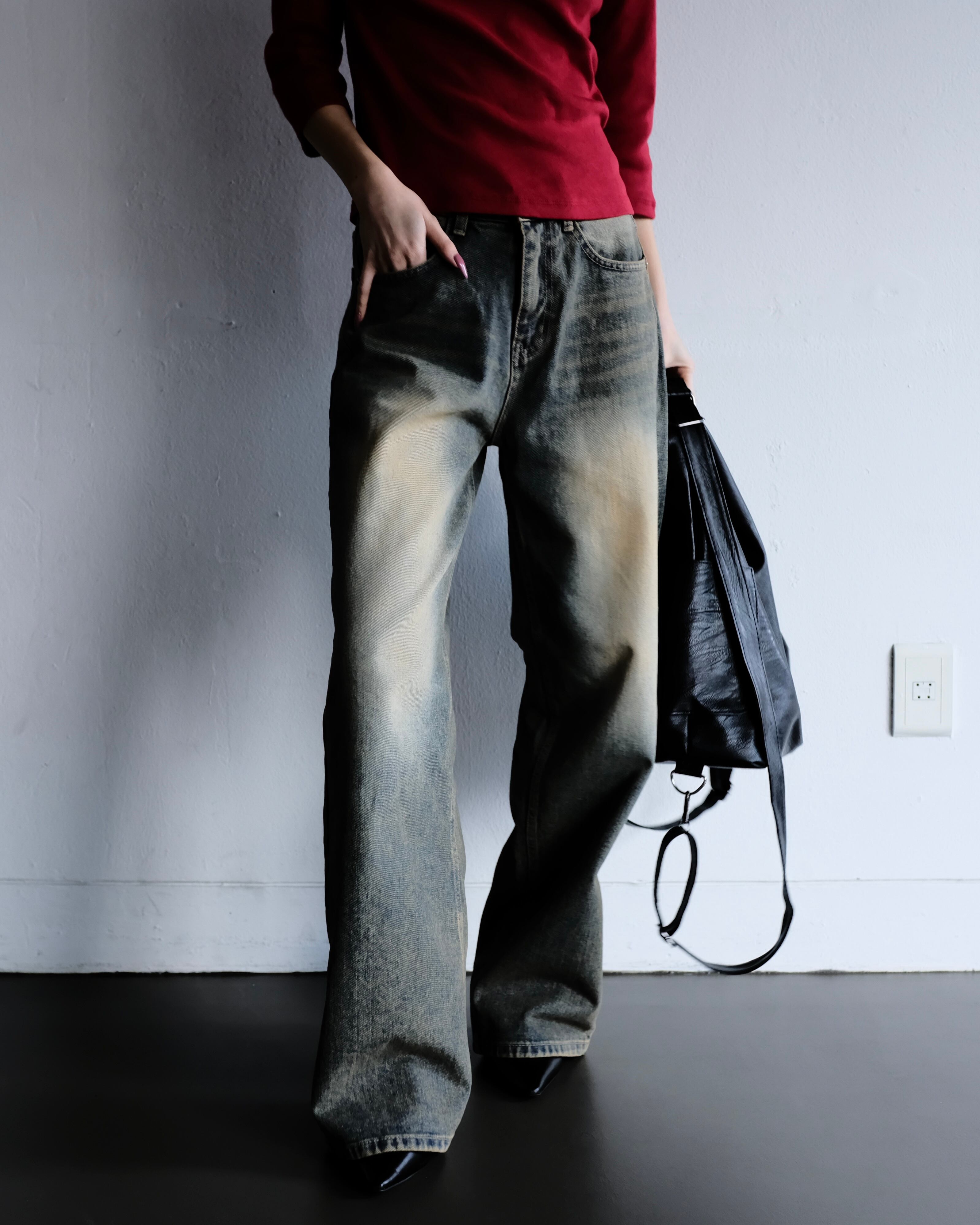 ゆるっとルーズなシルエットに、ヴィンテージライクな色落ちがこなれ感たっぷりのワイドデニム。