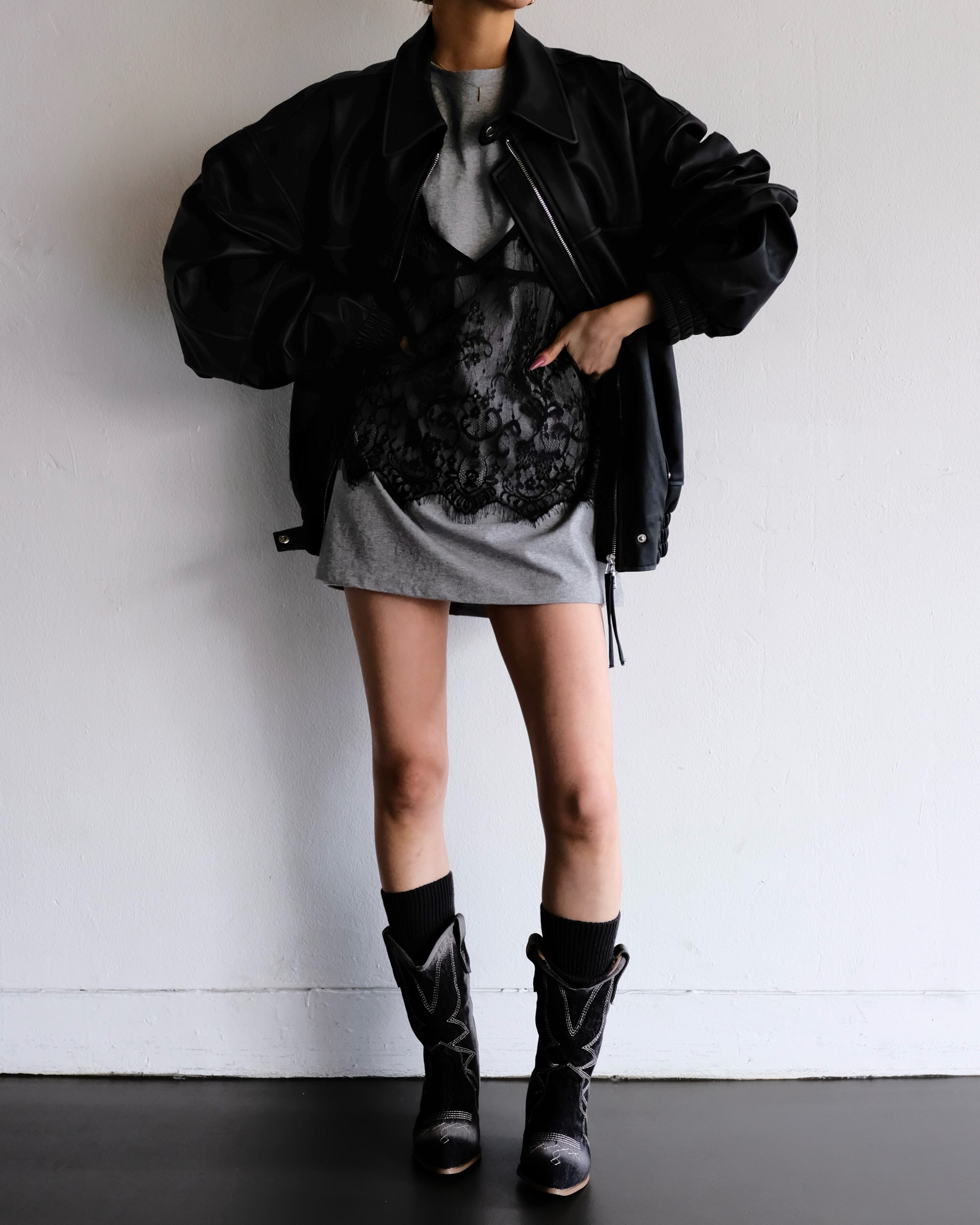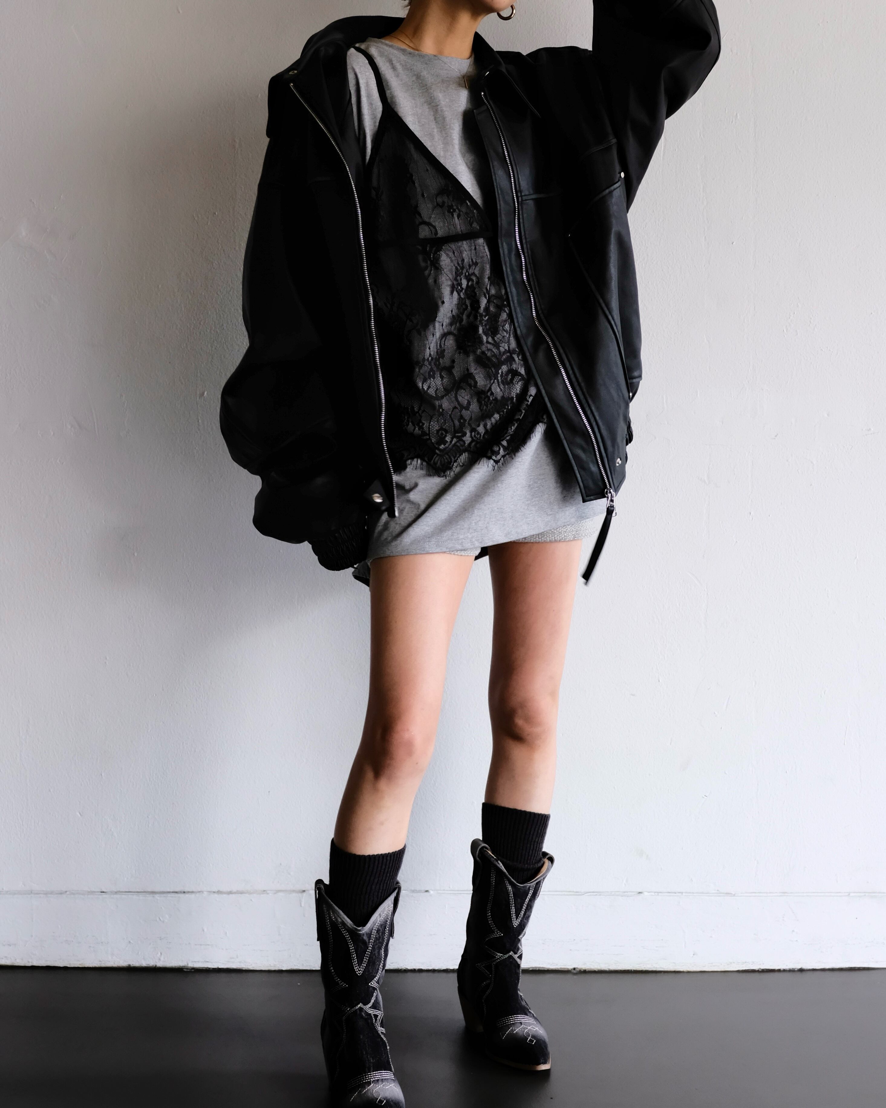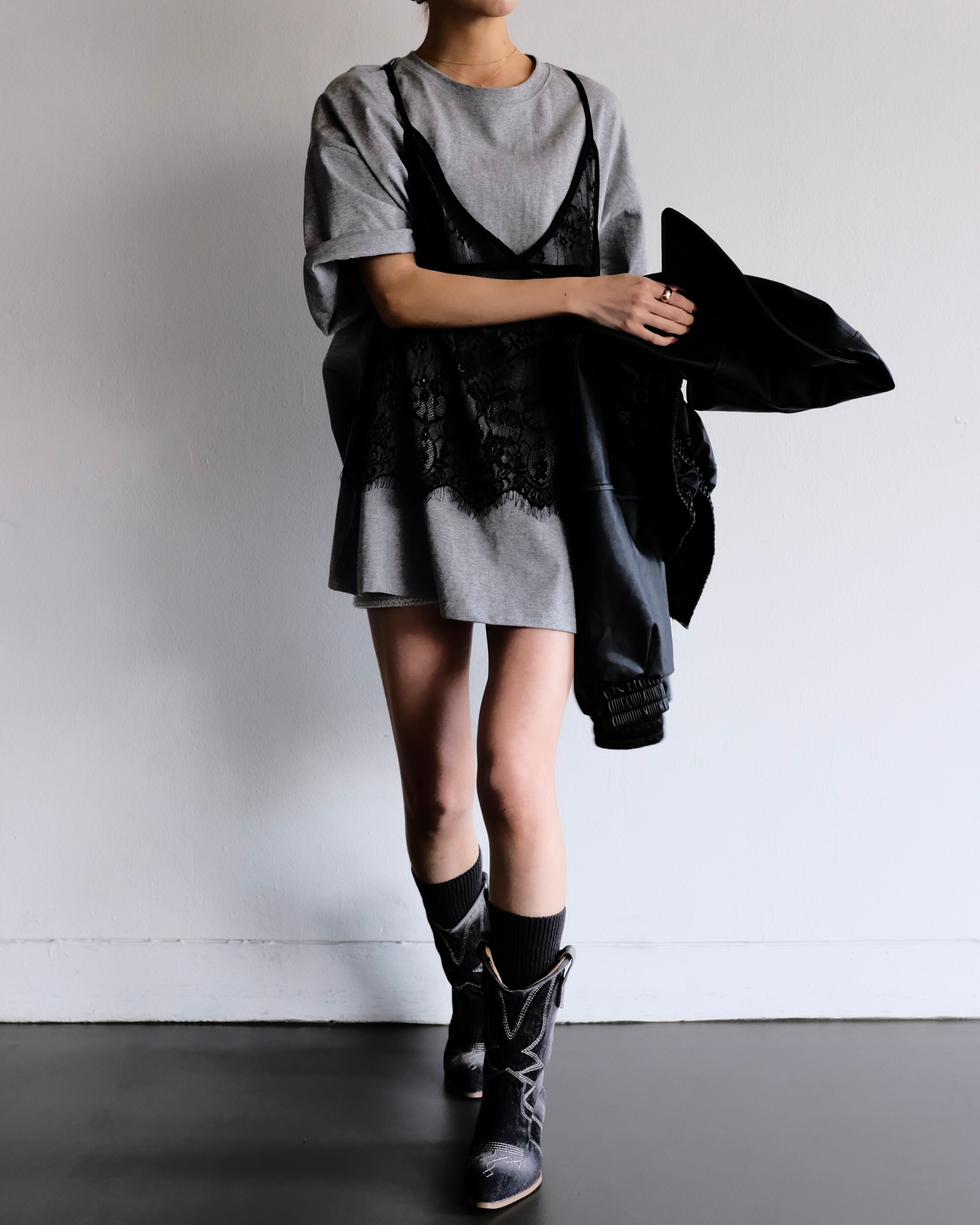 繊細なレース素材のキャミソールをレイヤード風に仕上げたオーバーTEE。