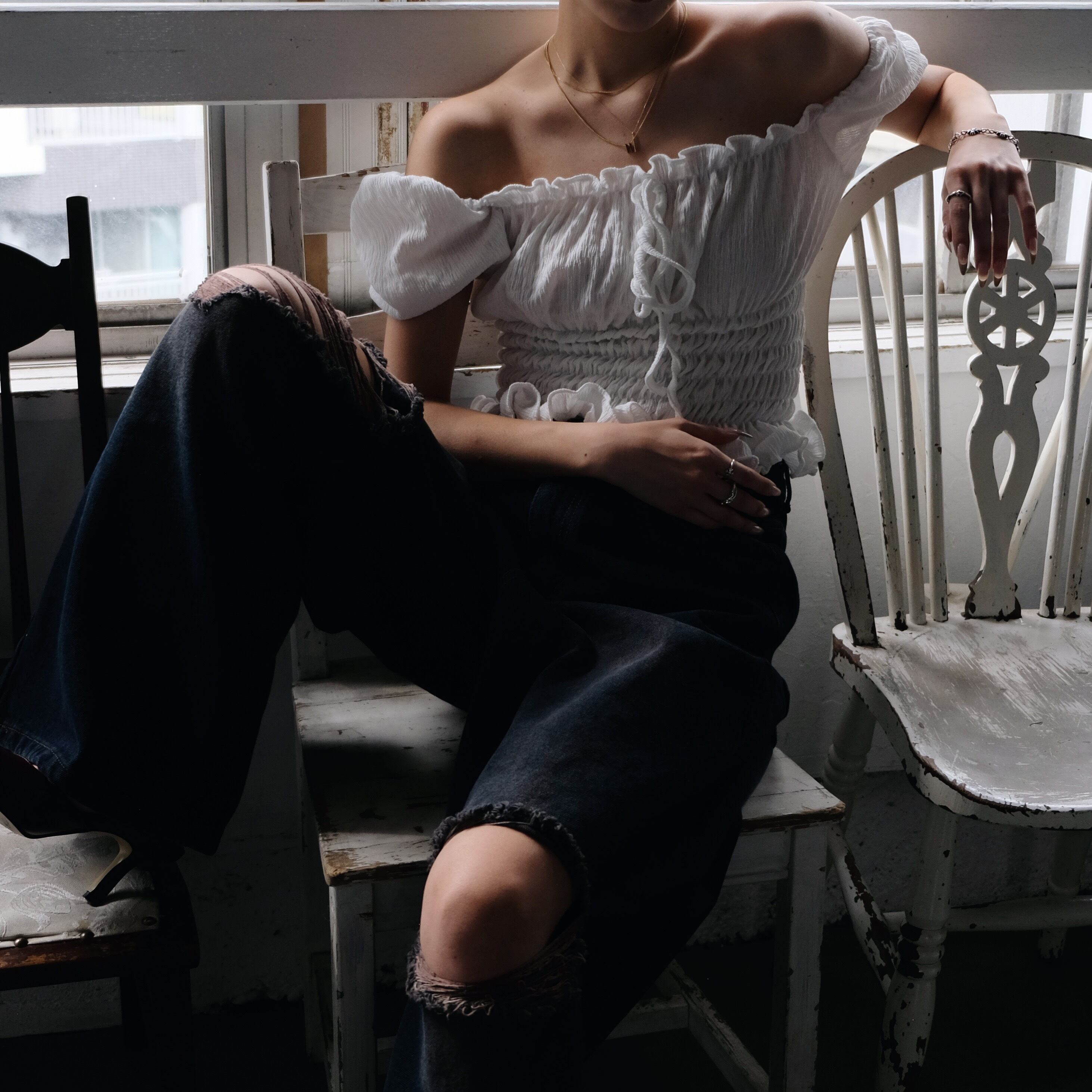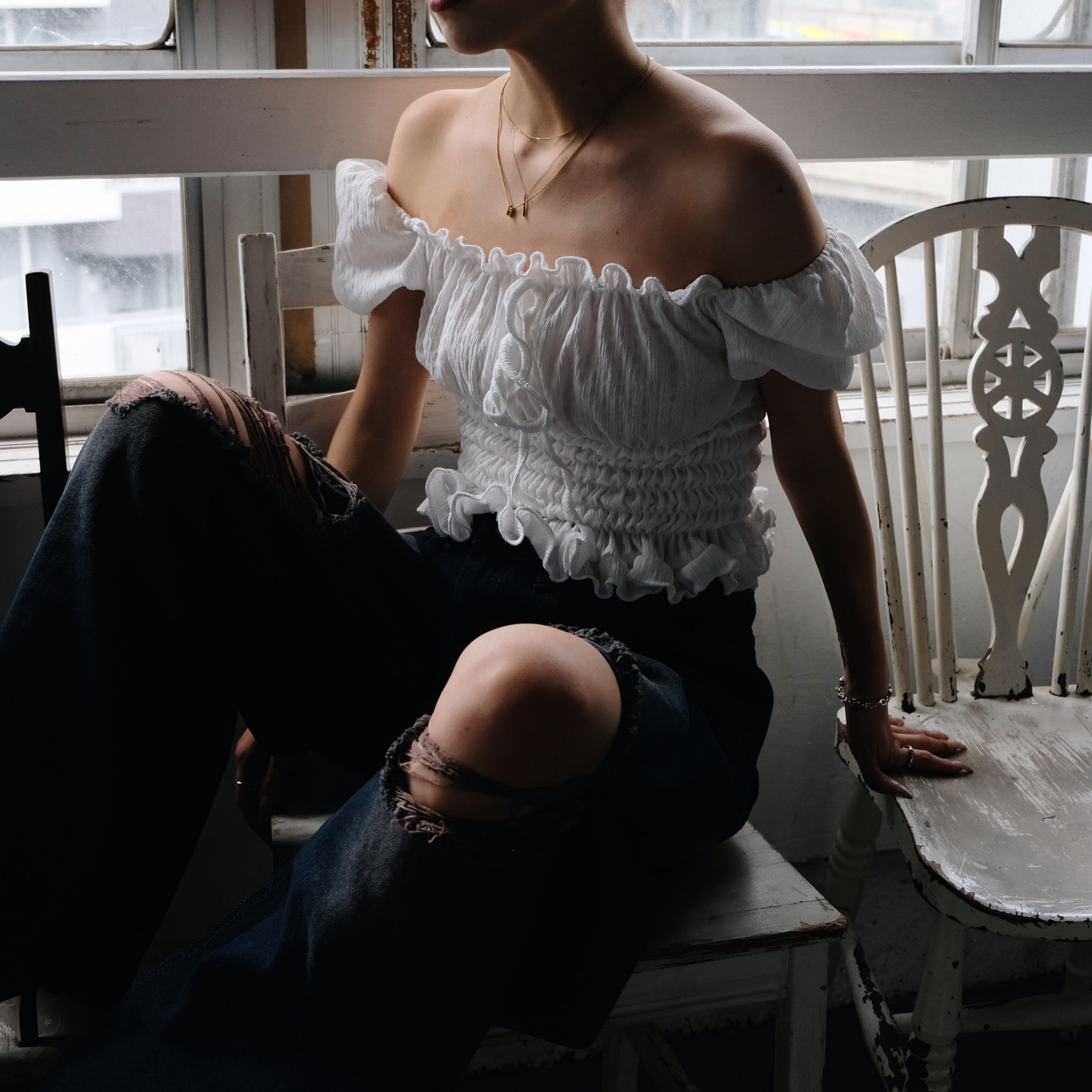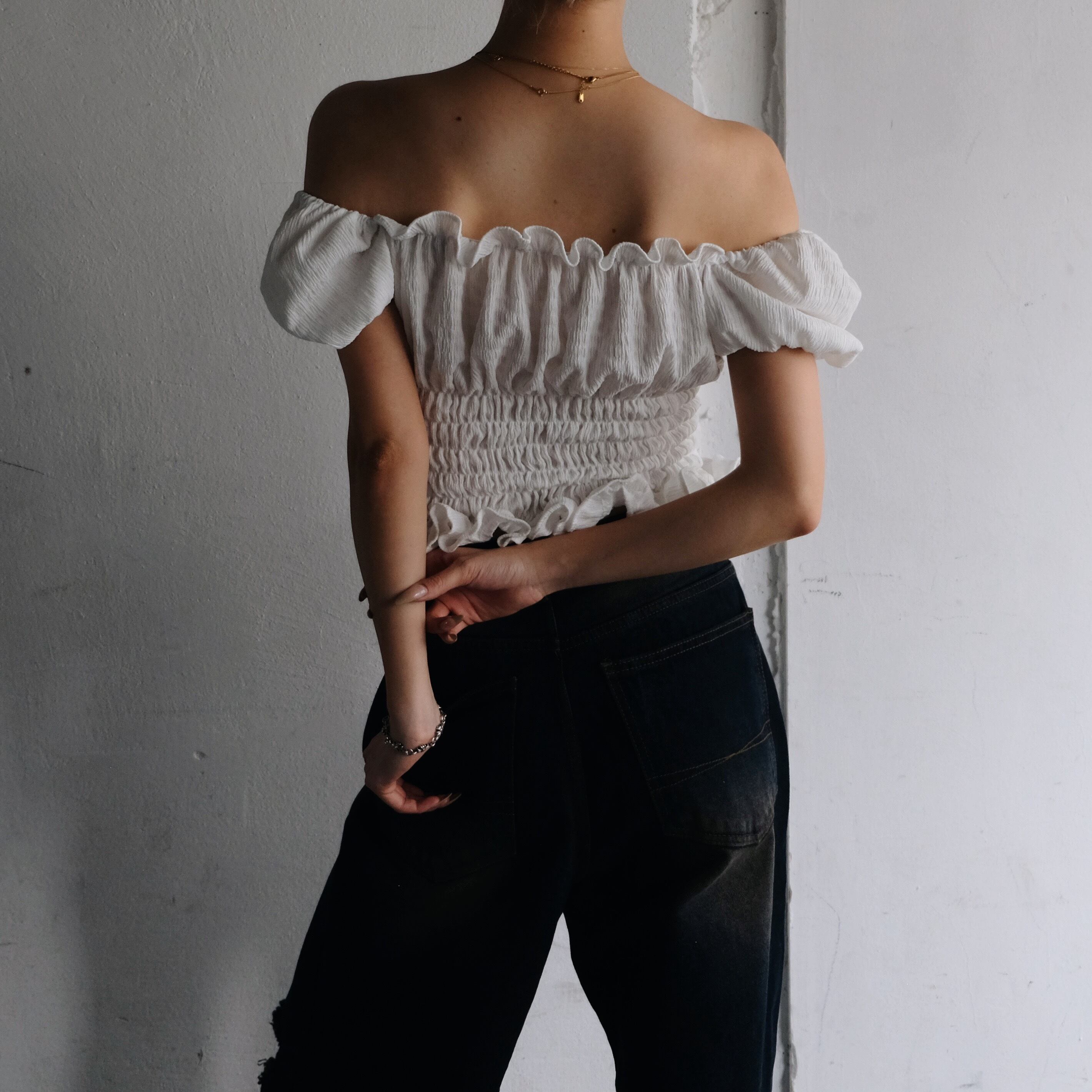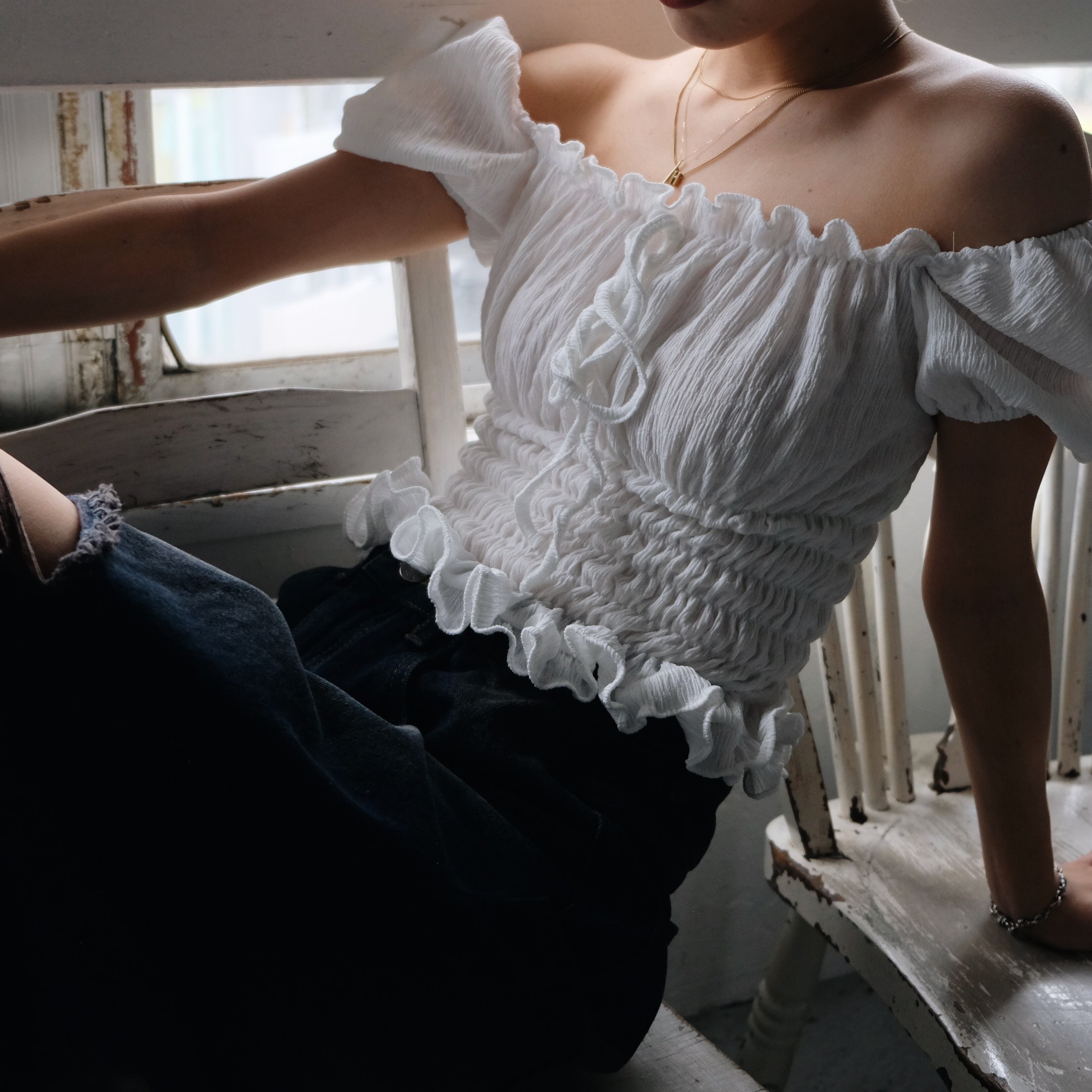 AIRY PW SHOULDER TOPS / WHT