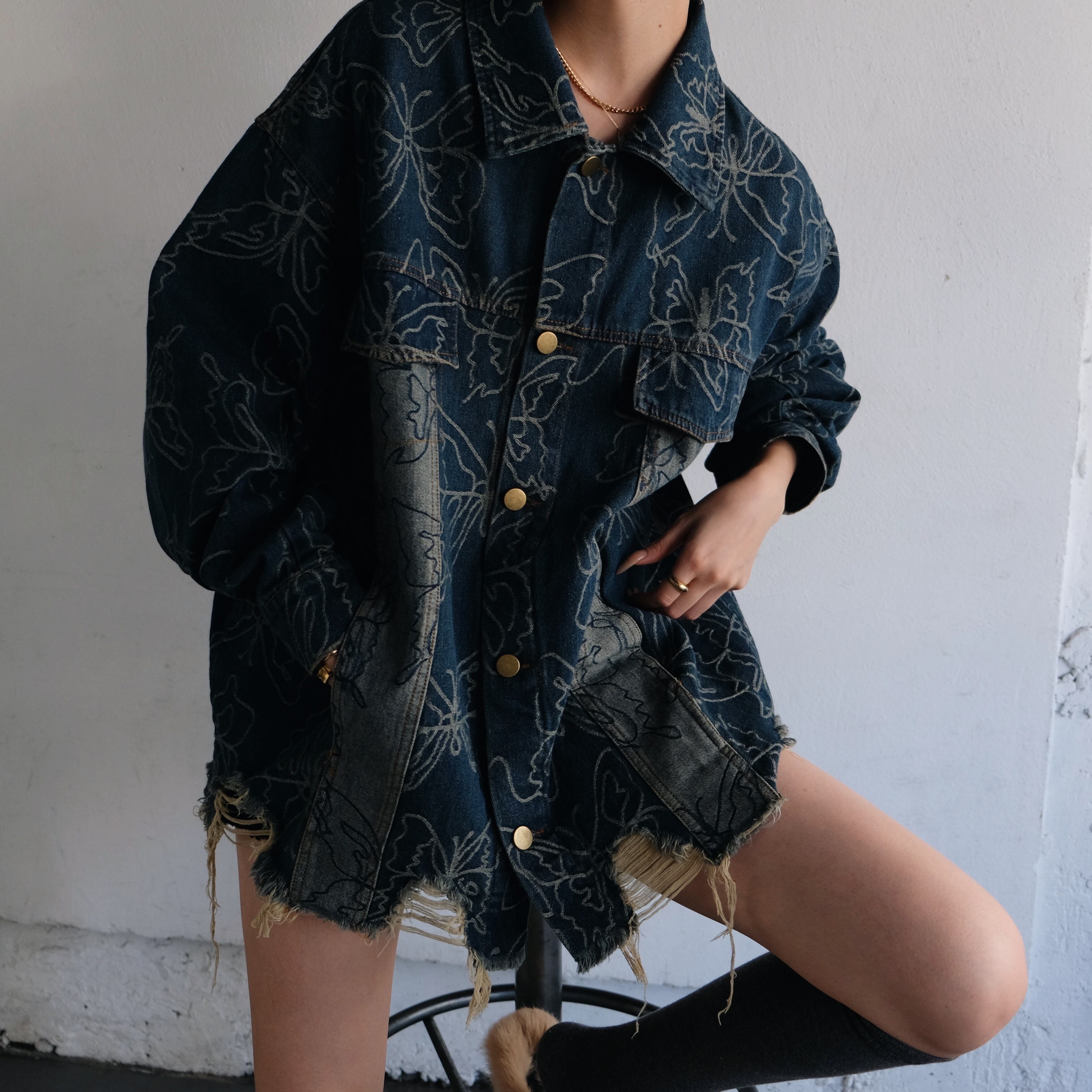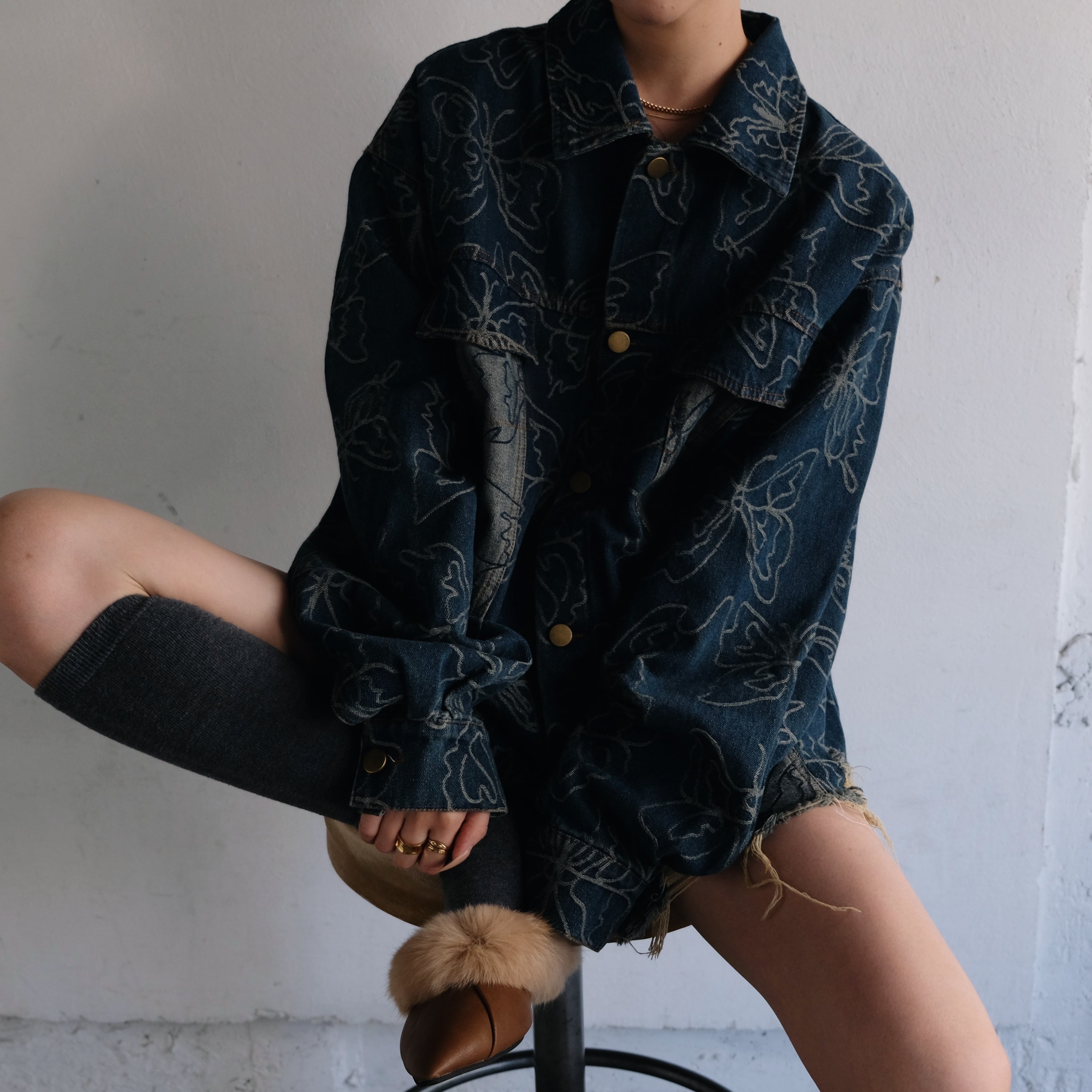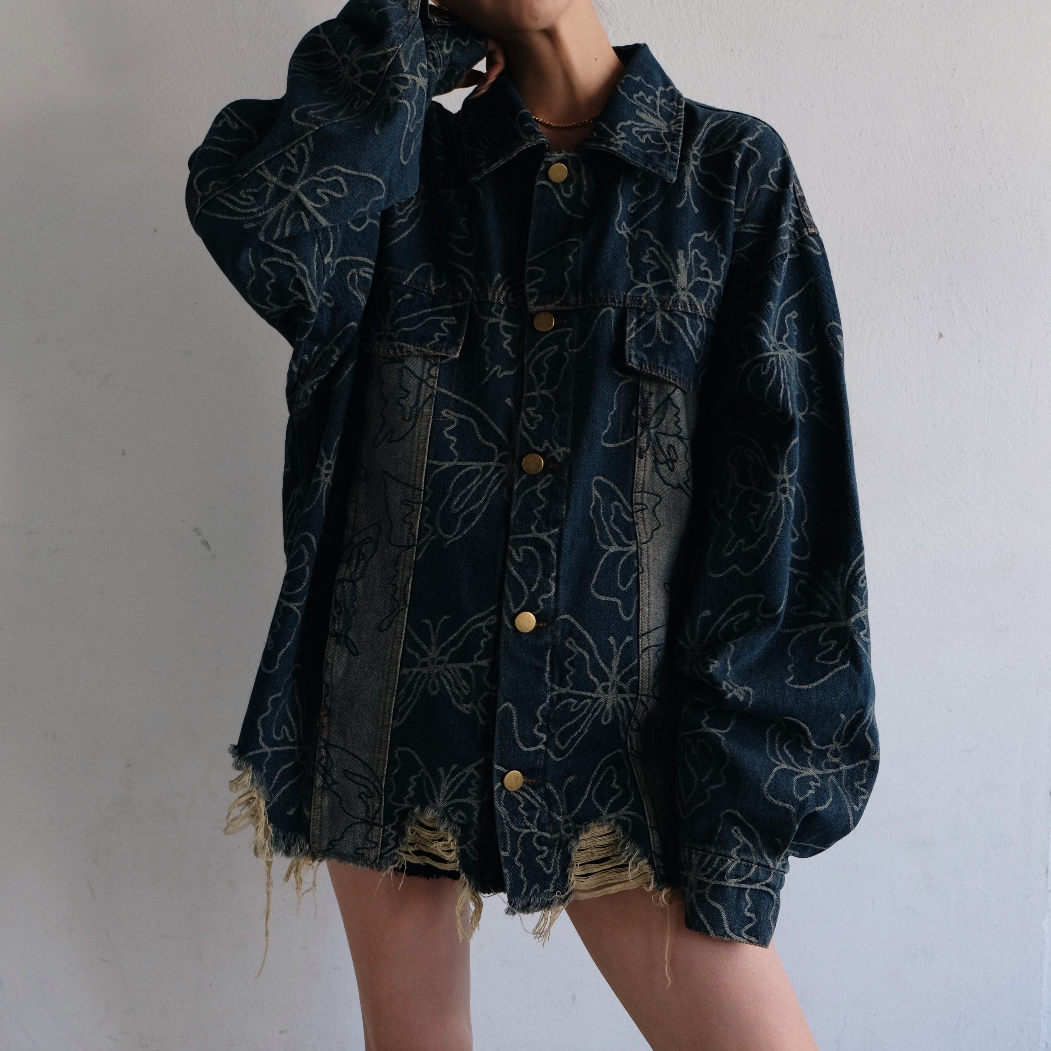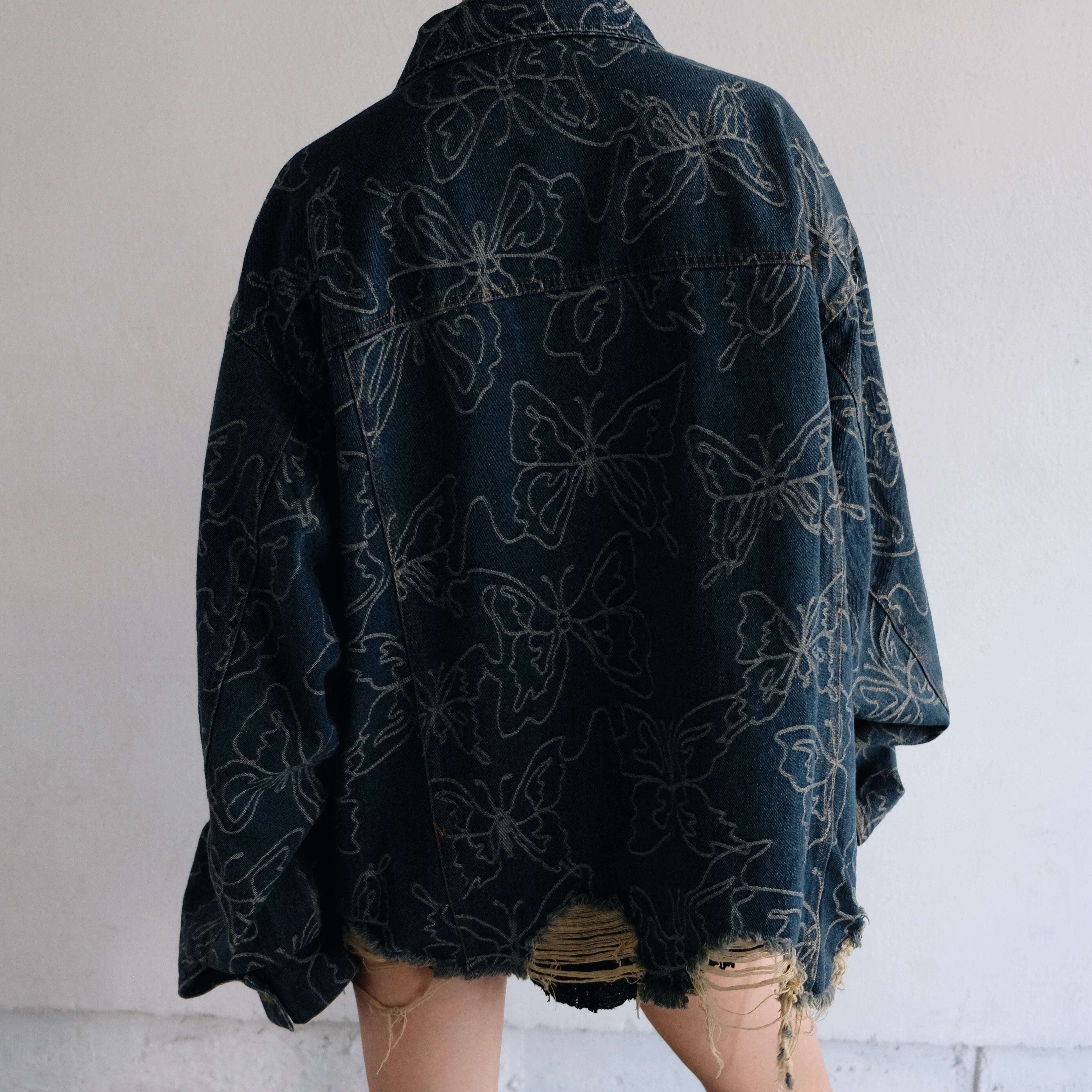 全体にバタフライを総柄プリントで施した他にはないヴィンテージらしいデニムジャケット。