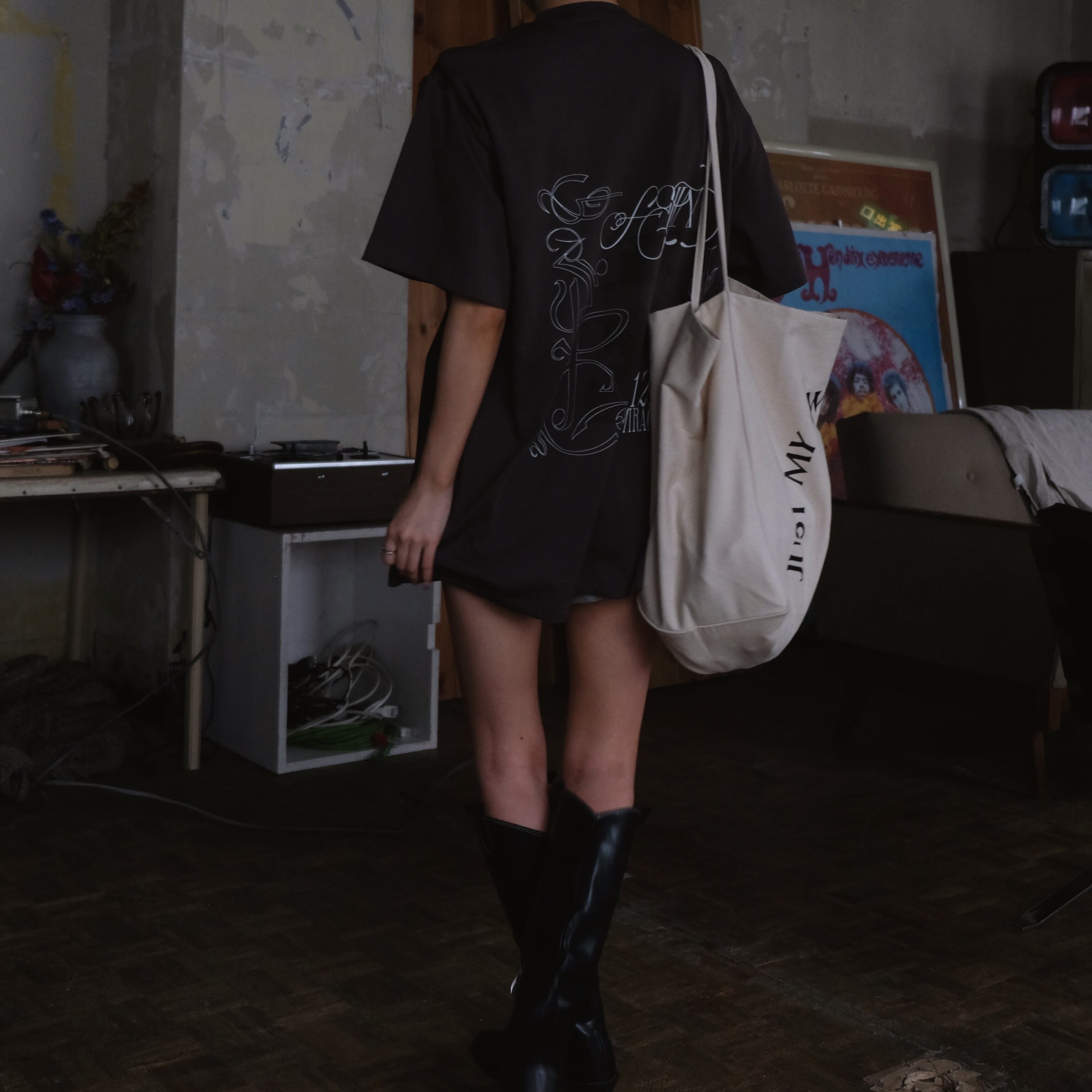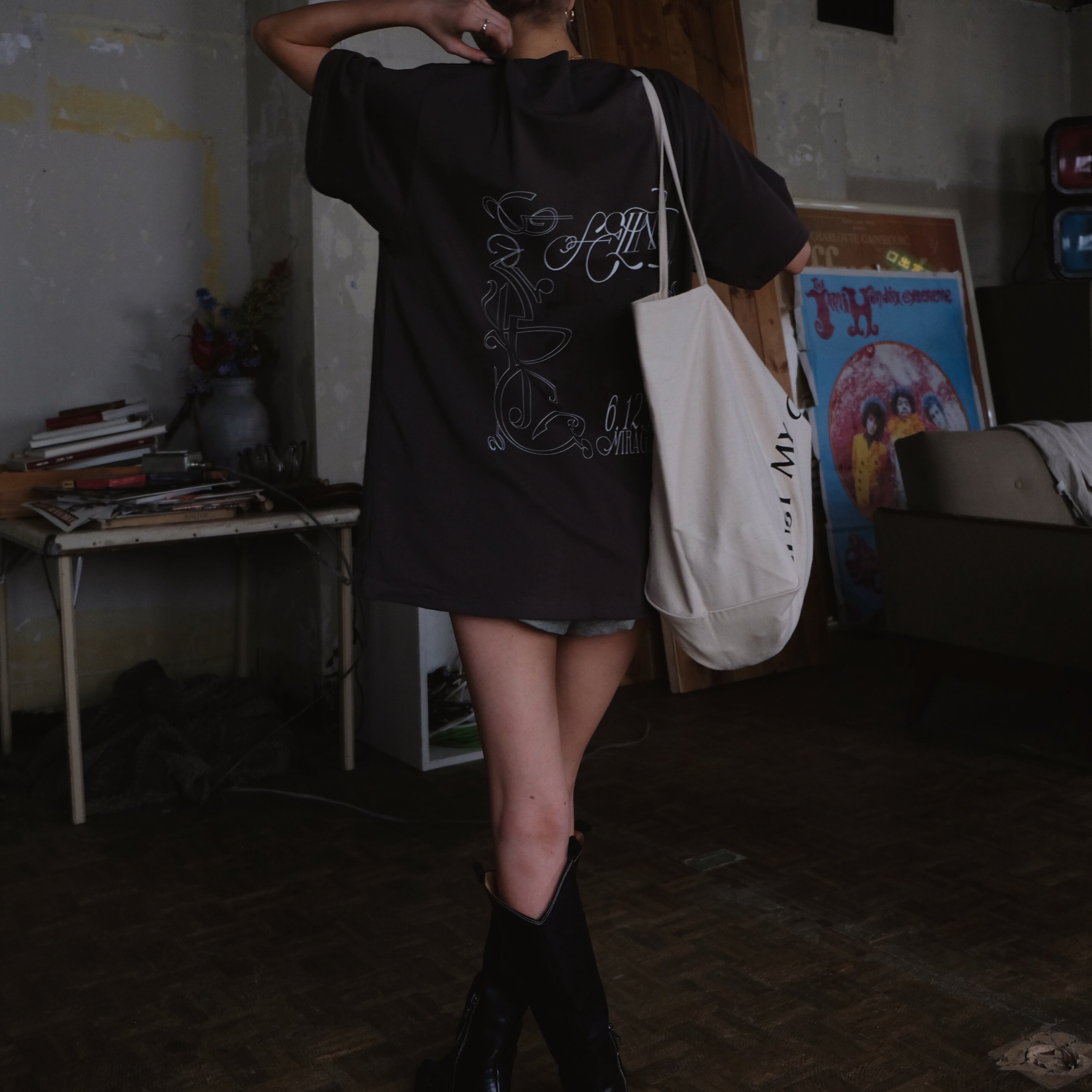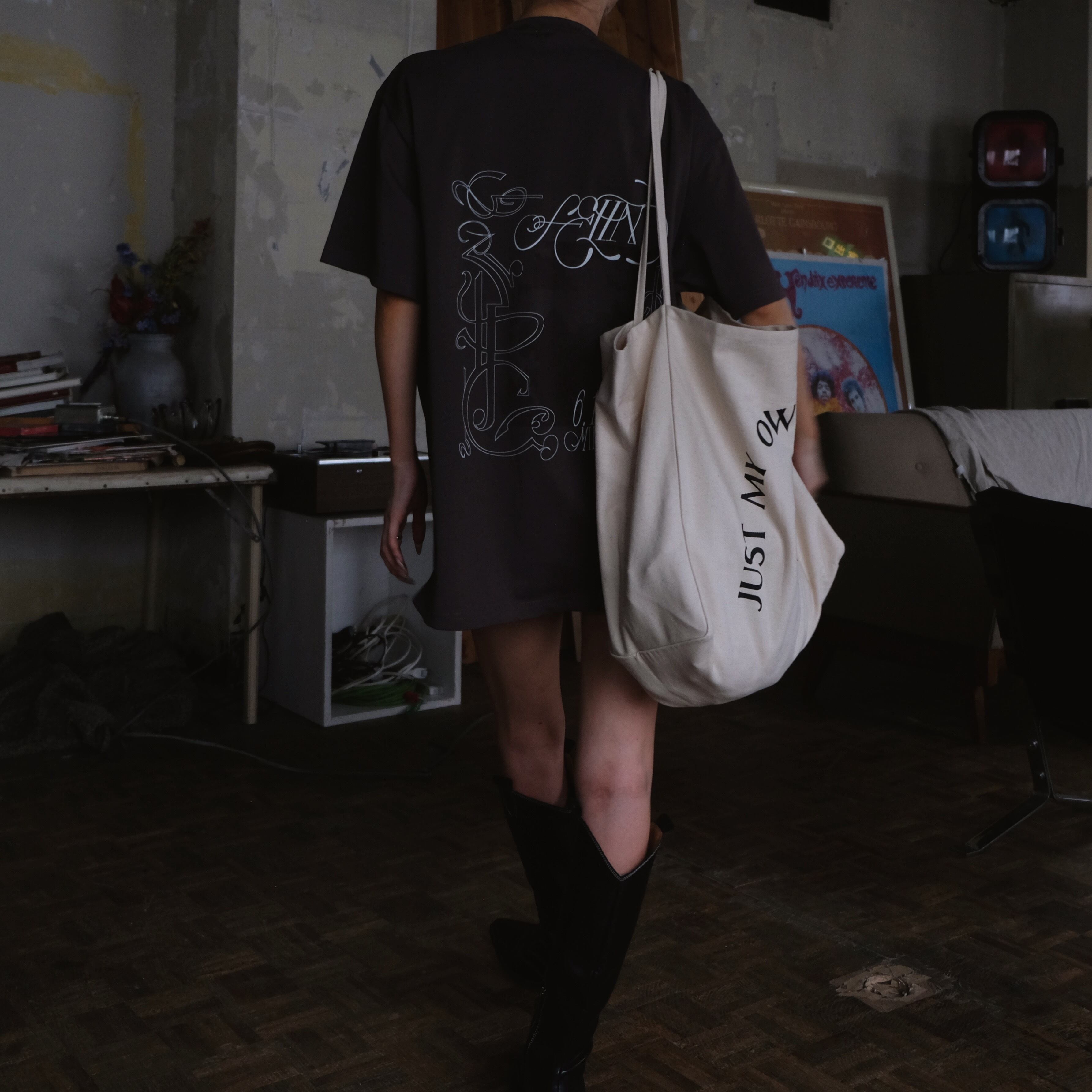 FELIMらしい落ち着きのある色合いながらも遊び心のあるロゴやアートを組み合わせた、ユニークなデザインに仕上げております。しっかりとした生地でくたっと落ち感があり、ワンピース風にも着用いただけます。
