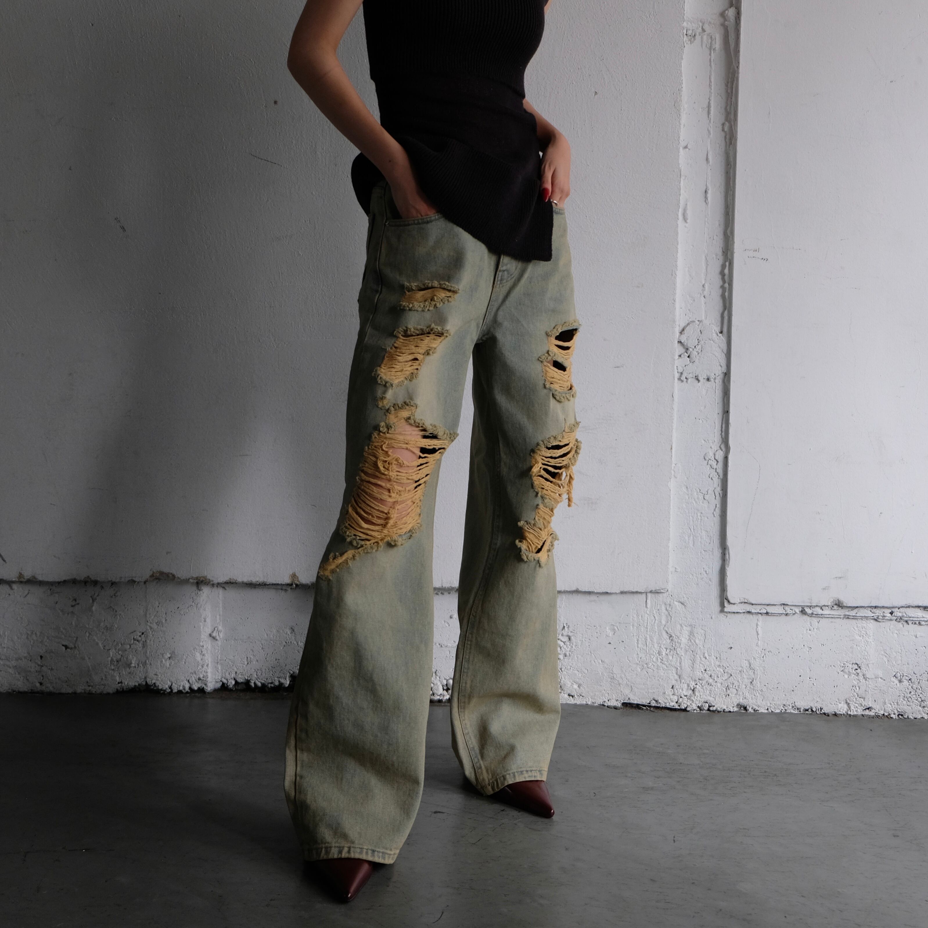 ヴィンテージ感漂う夏らしい色合いのハードダメージデニムが登場。