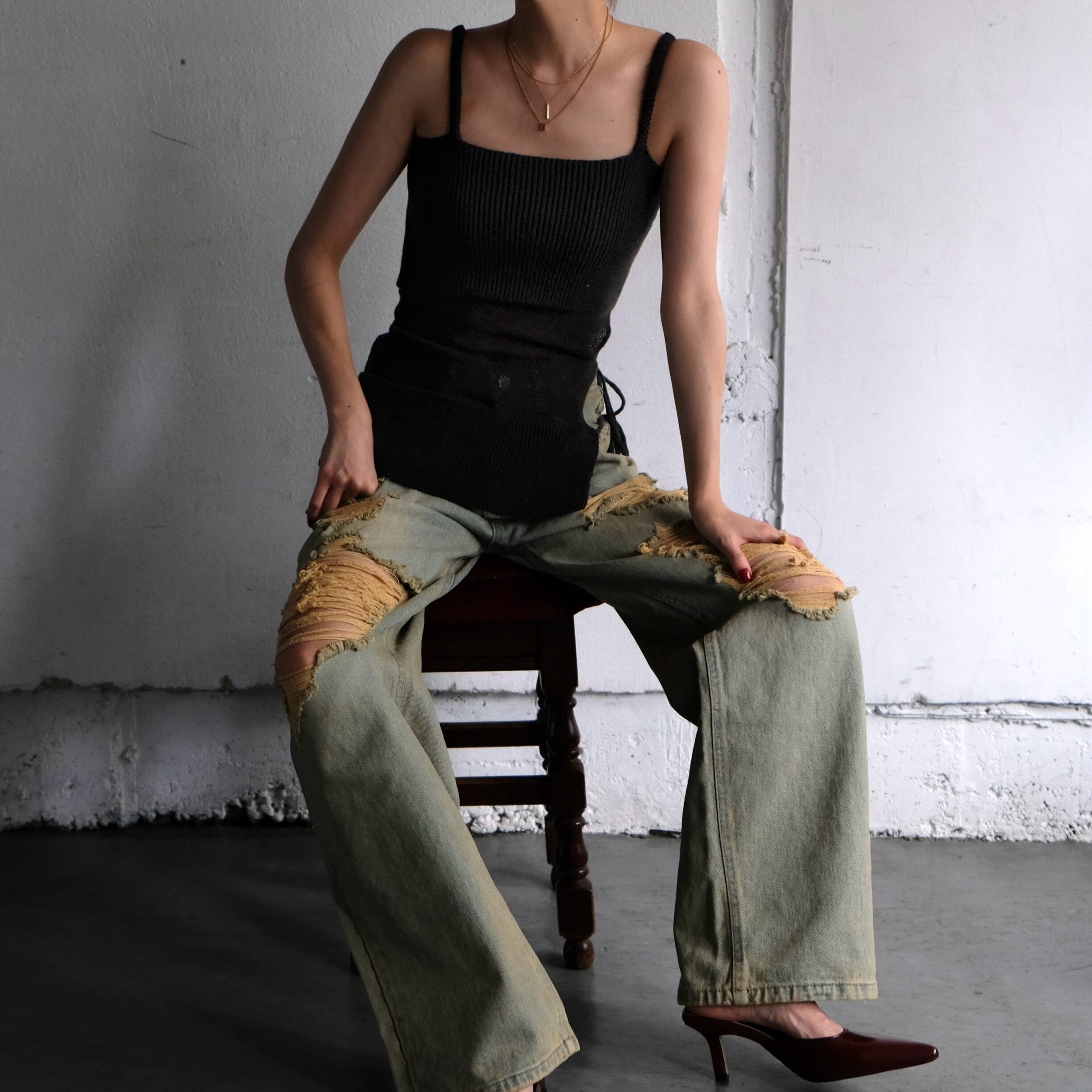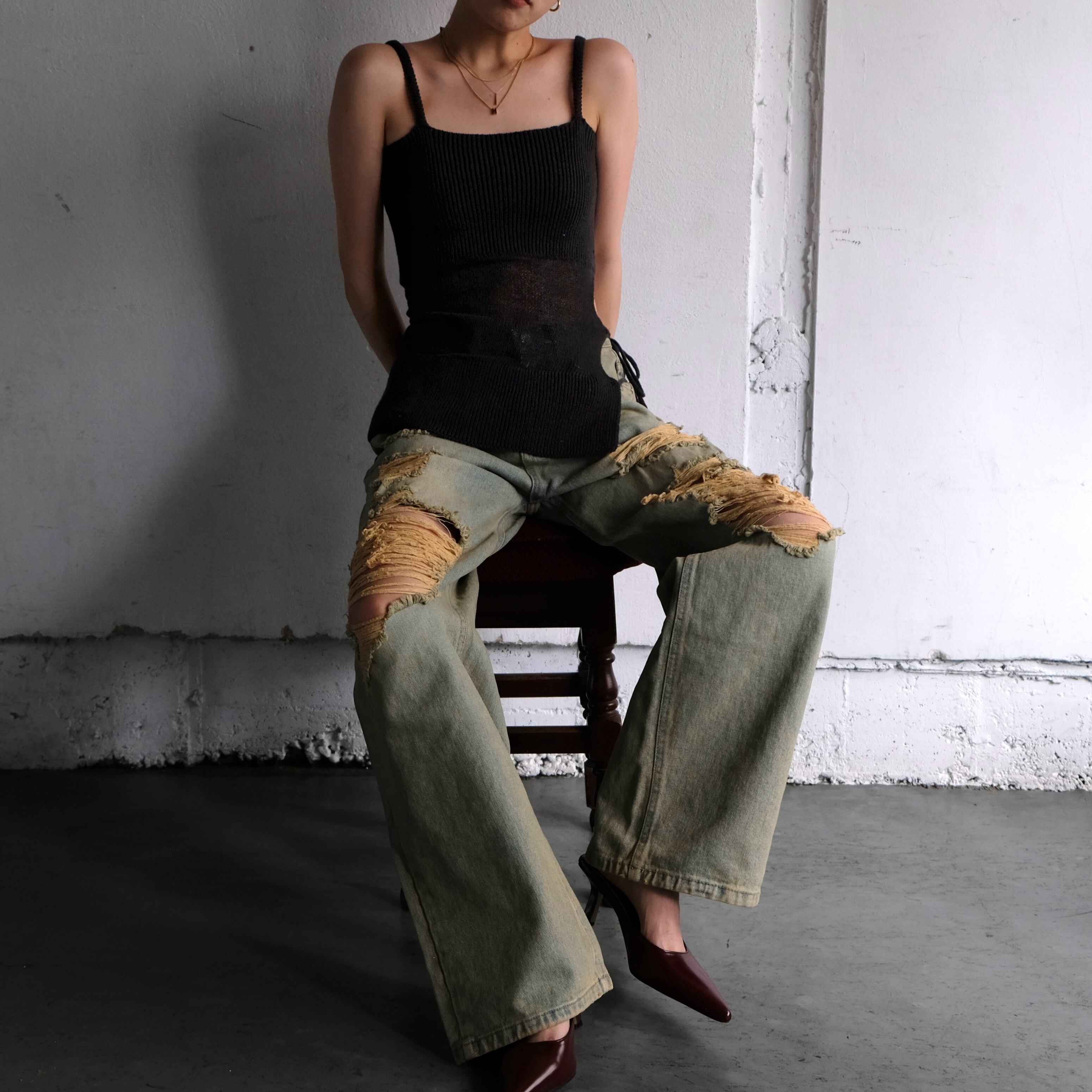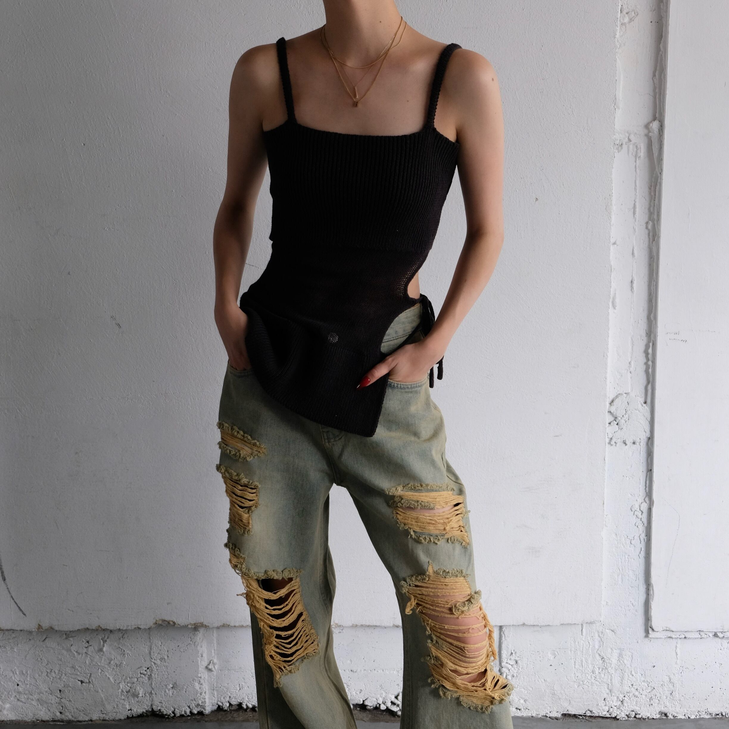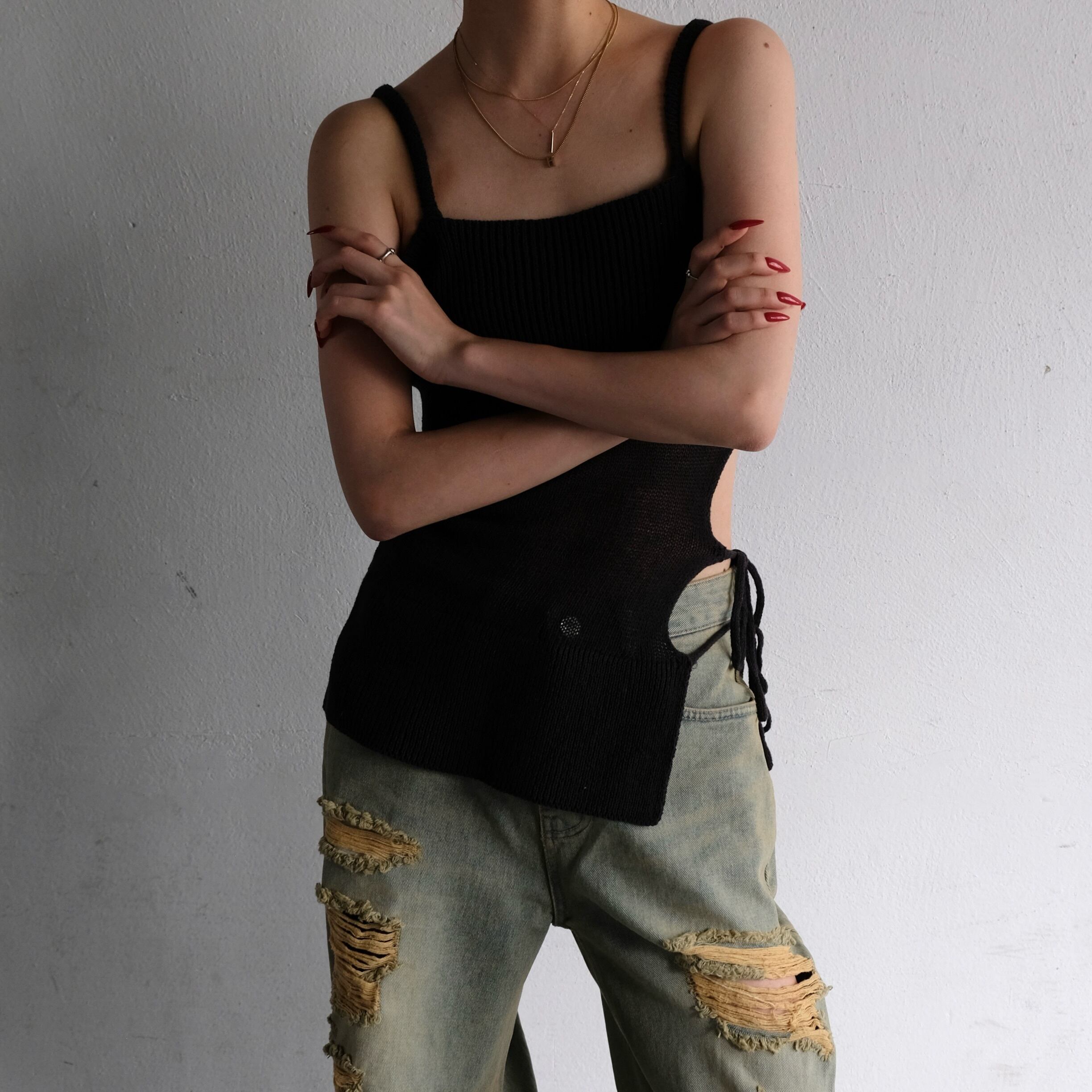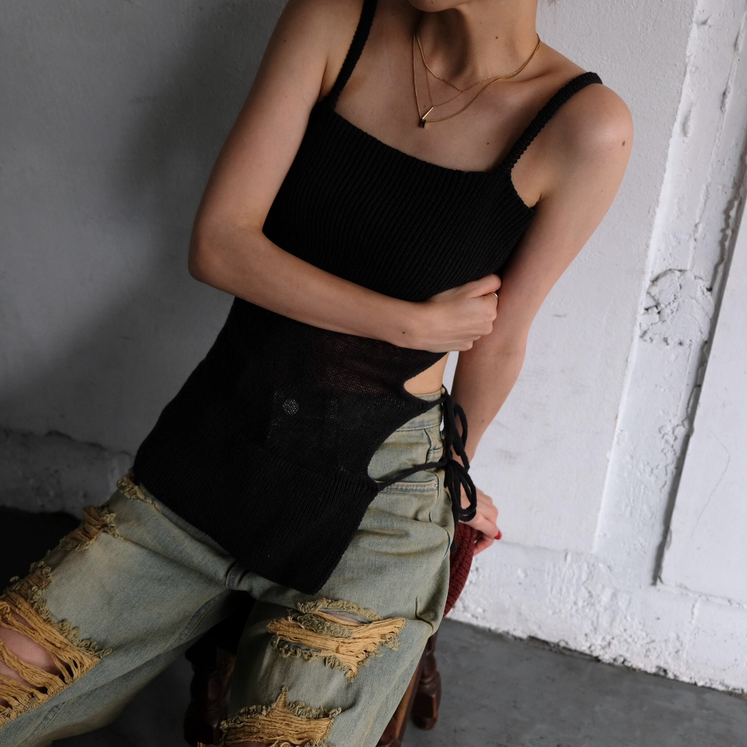 ウエスト部分に透け感をもたせた、大人な雰囲気のニットキャミソール。