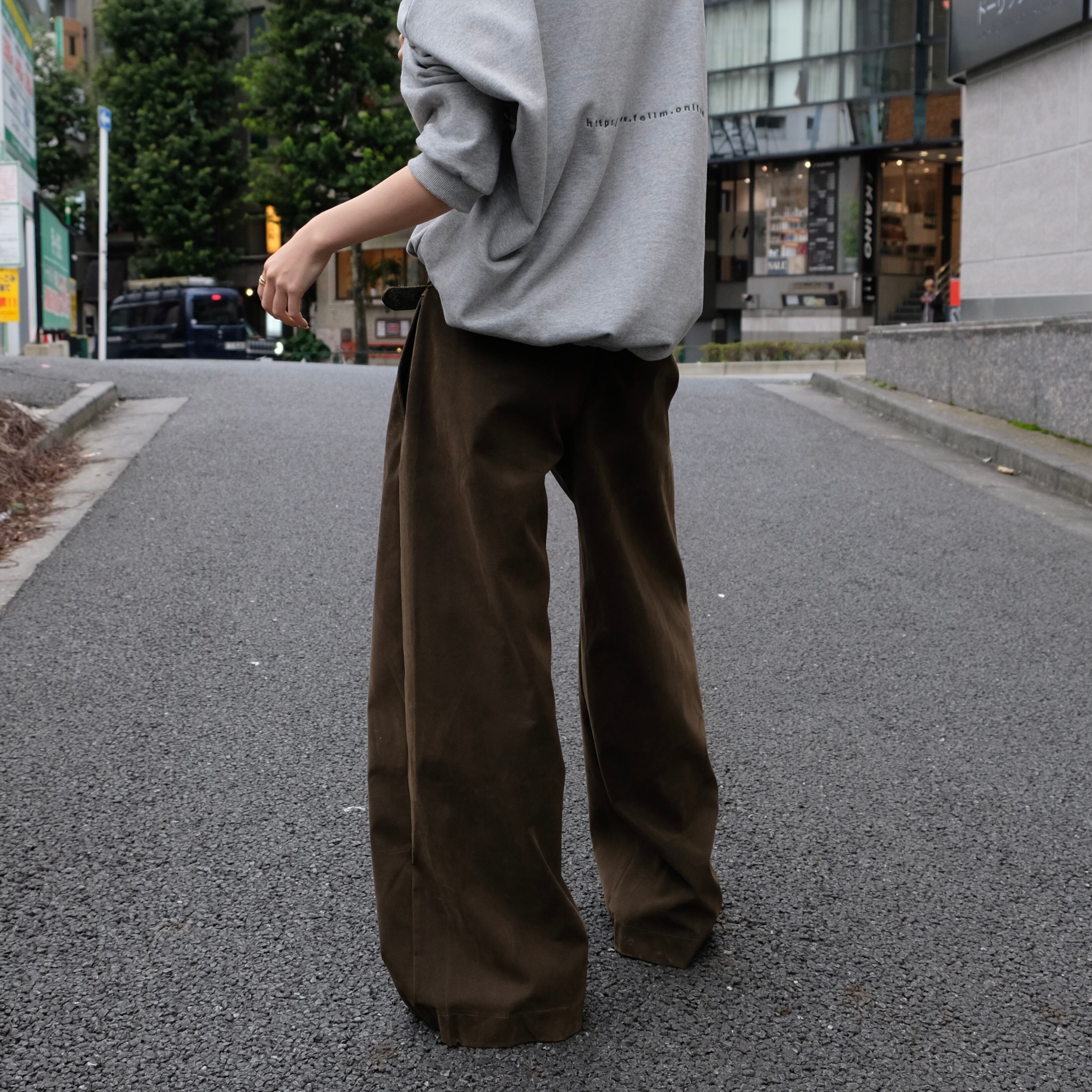 ワイドシルエットですがハリがあるのでストレートラインが綺麗に映え、ヒールで合わせると脚長効果も◎