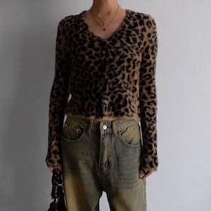 あたたかみのあるシャギー素材を採用したアニマル柄のカーディガン。